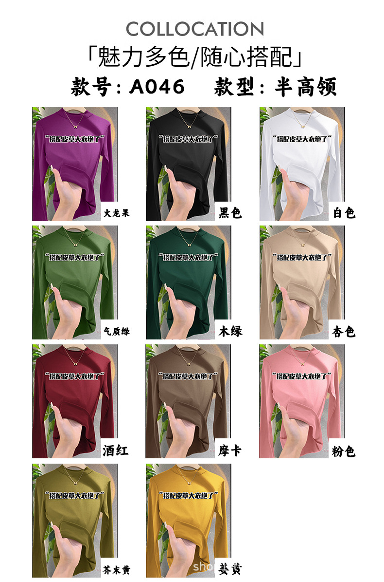 하프 하이 칼라 바닥 셔츠 여성의 가을과 겨울 새로운 외국 스타일의 벨벳 인테리어 디자인 틈새 슬리밍 올 매치 탑 인