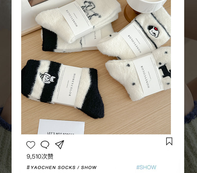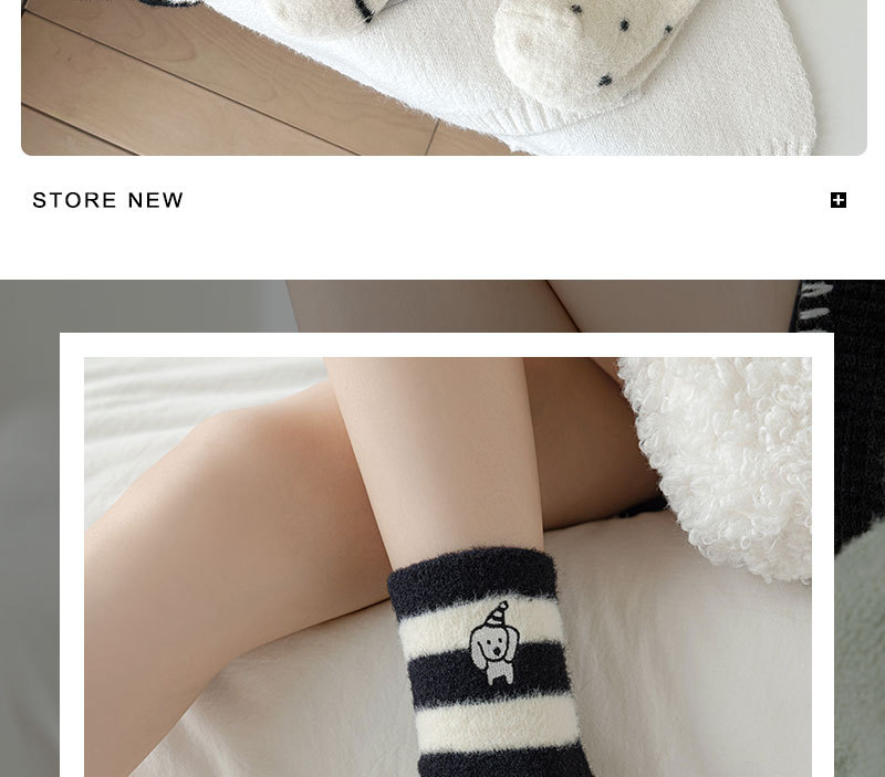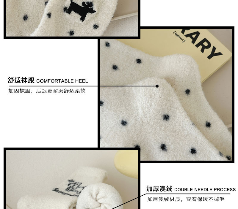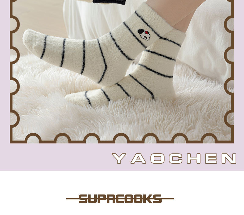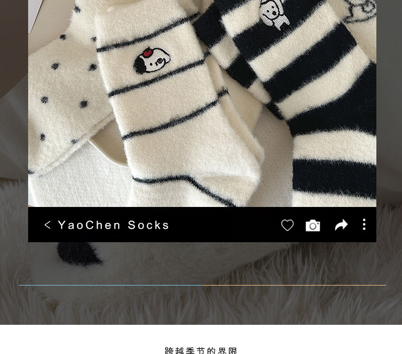 귀여운 양말 어린이 흰색 벨벳 스타킹 가을과 겨울 기모 두꺼운 바닥 양말 만화 강아지 자수 스타킹스토어 가기
