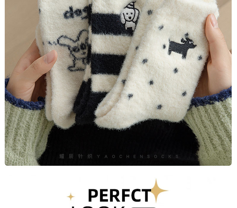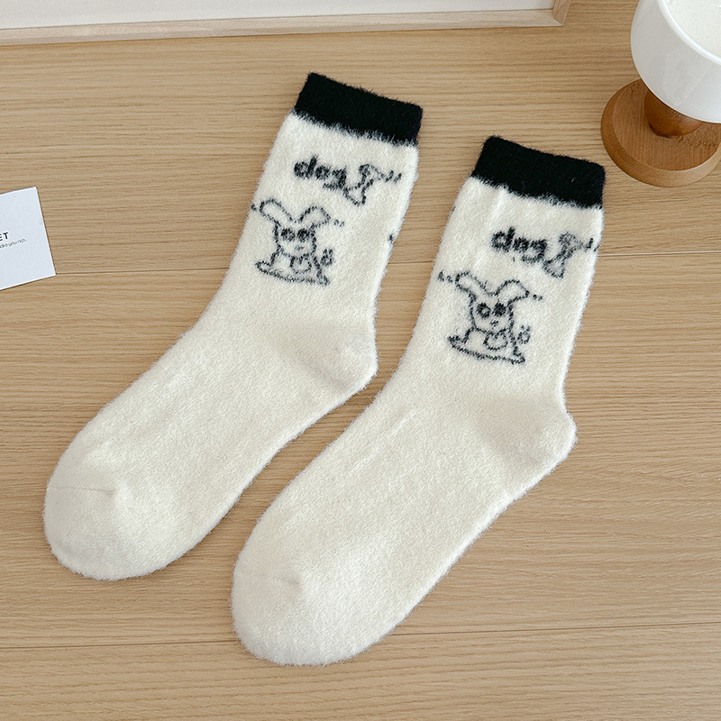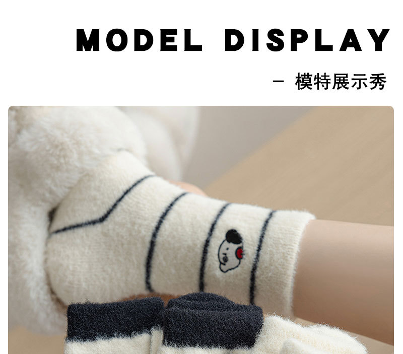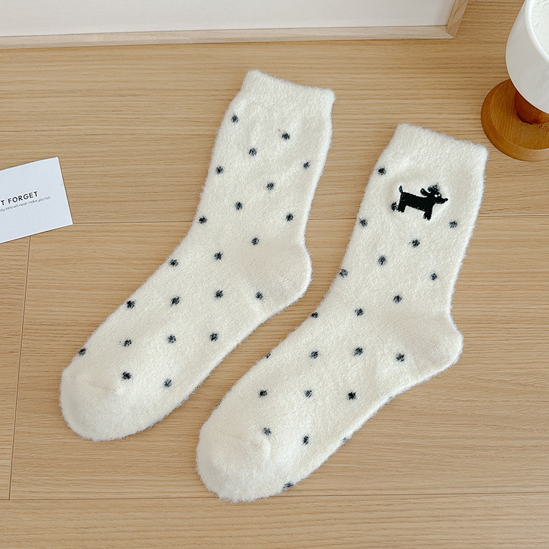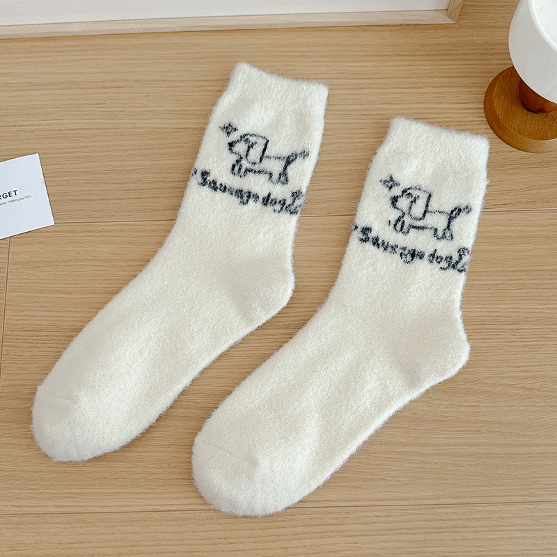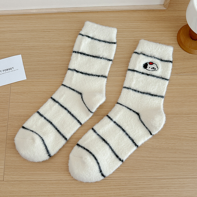 귀여운 양말 어린이 흰색 벨벳 스타킹 가을과 겨울 기모 두꺼운 바닥 양말 만화 강아지 자수 스타킹