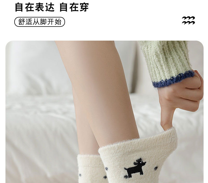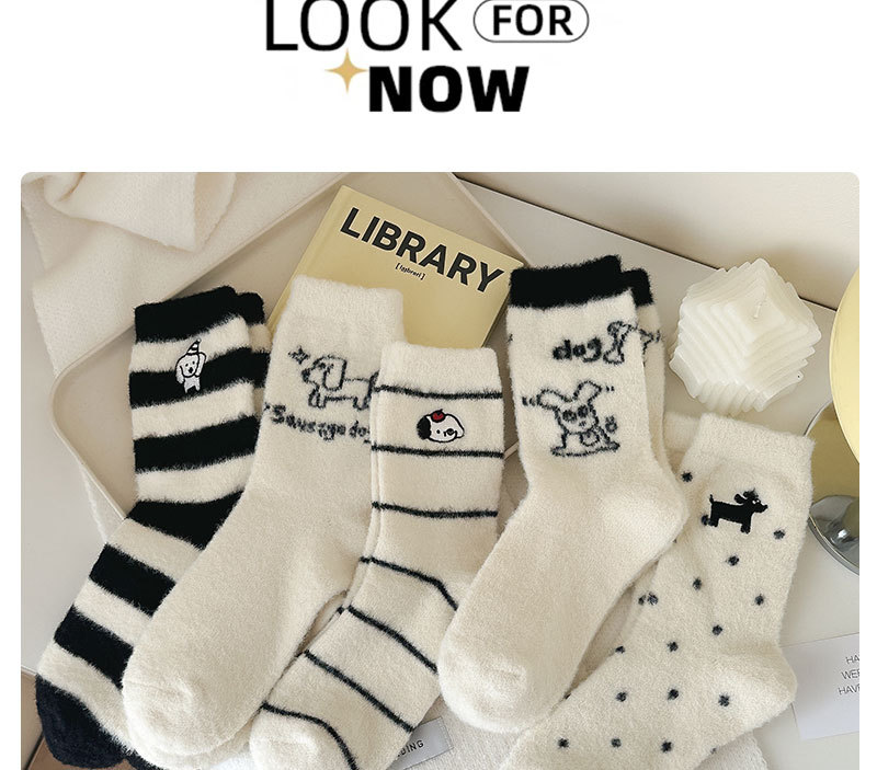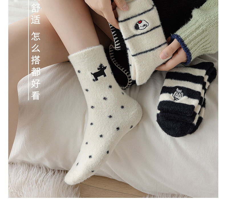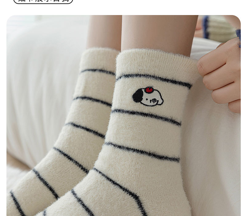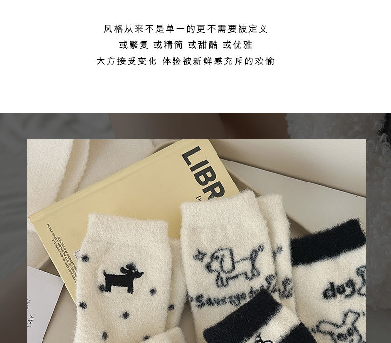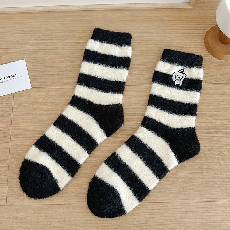 귀여운 양말 어린이 흰색 벨벳 스타킹 가을과 겨울 기모 두꺼운 바닥 양말 만화 강아지 자수 스타킹