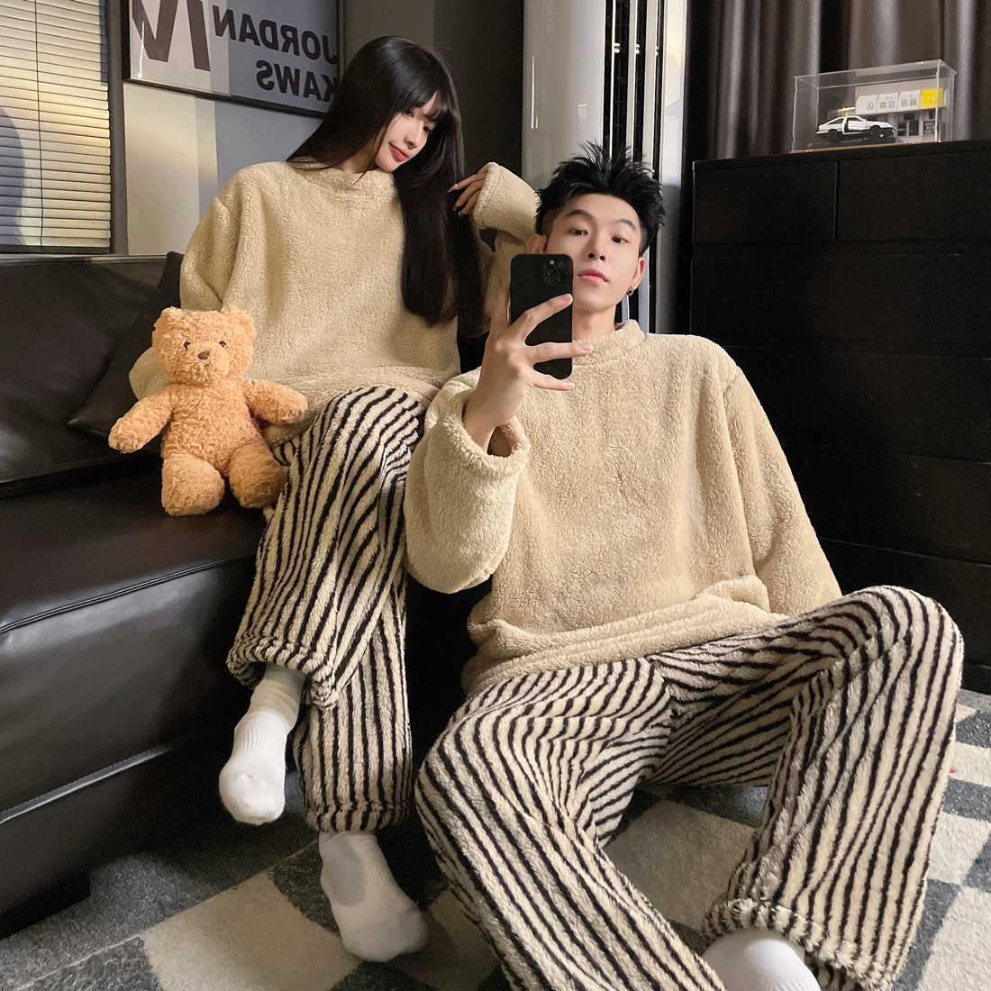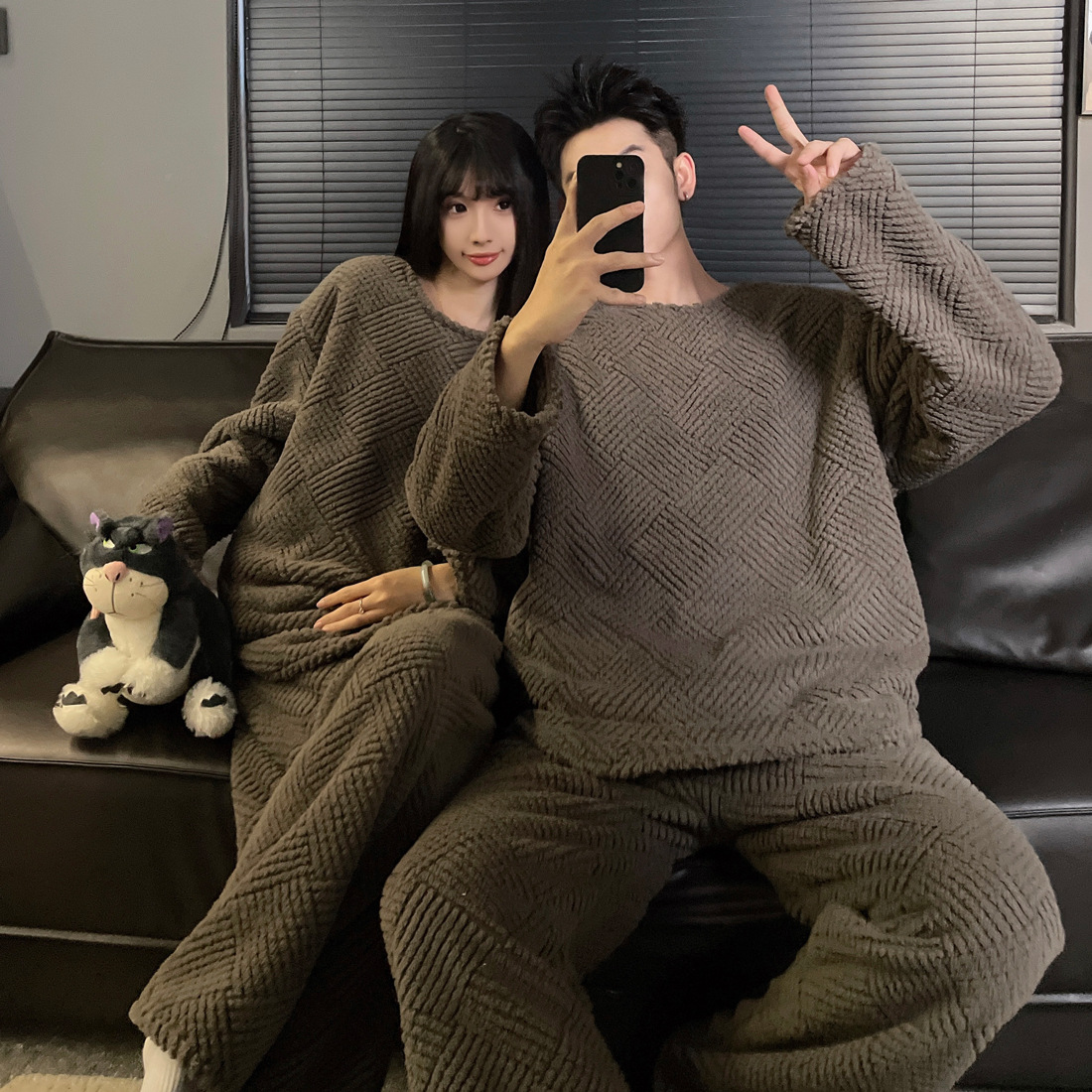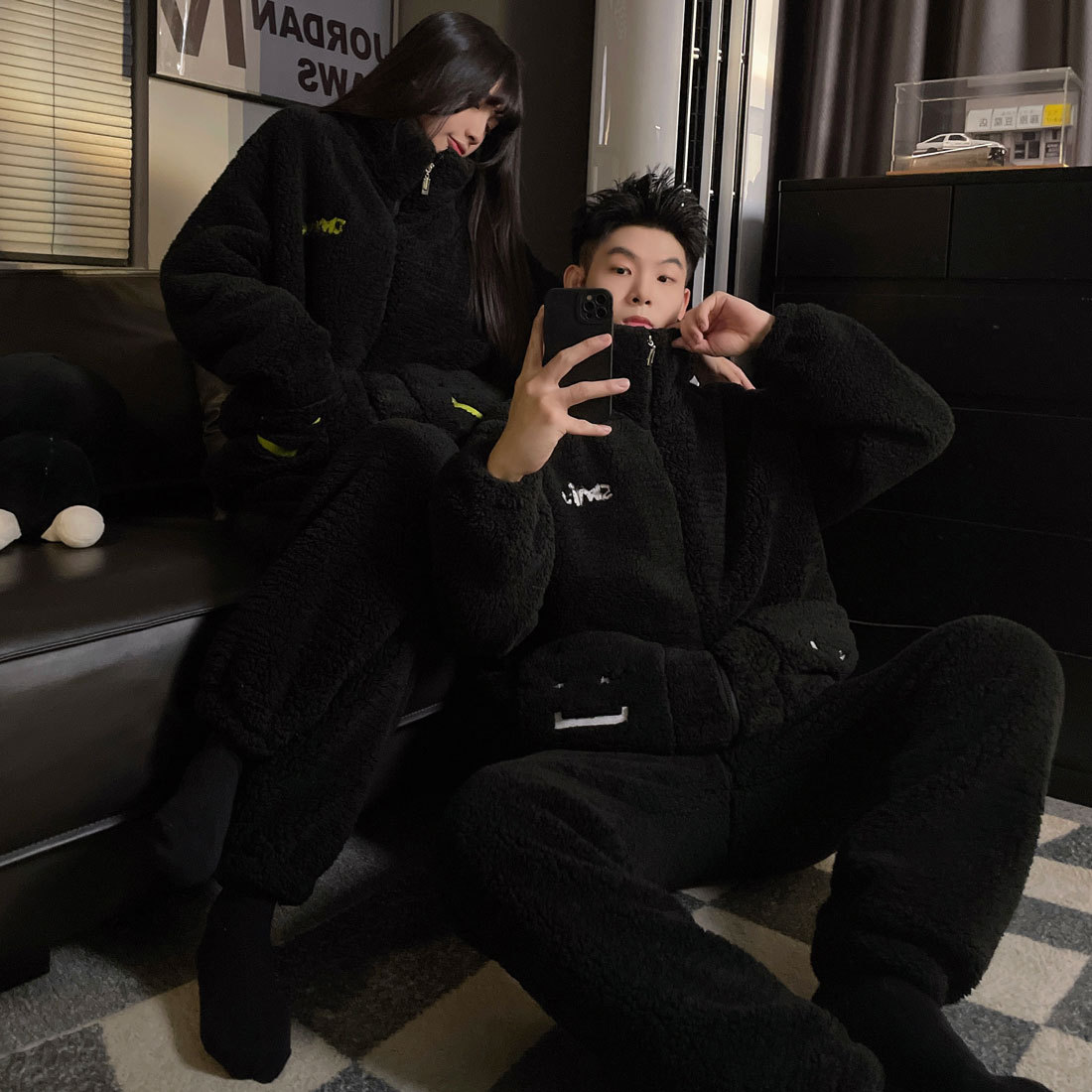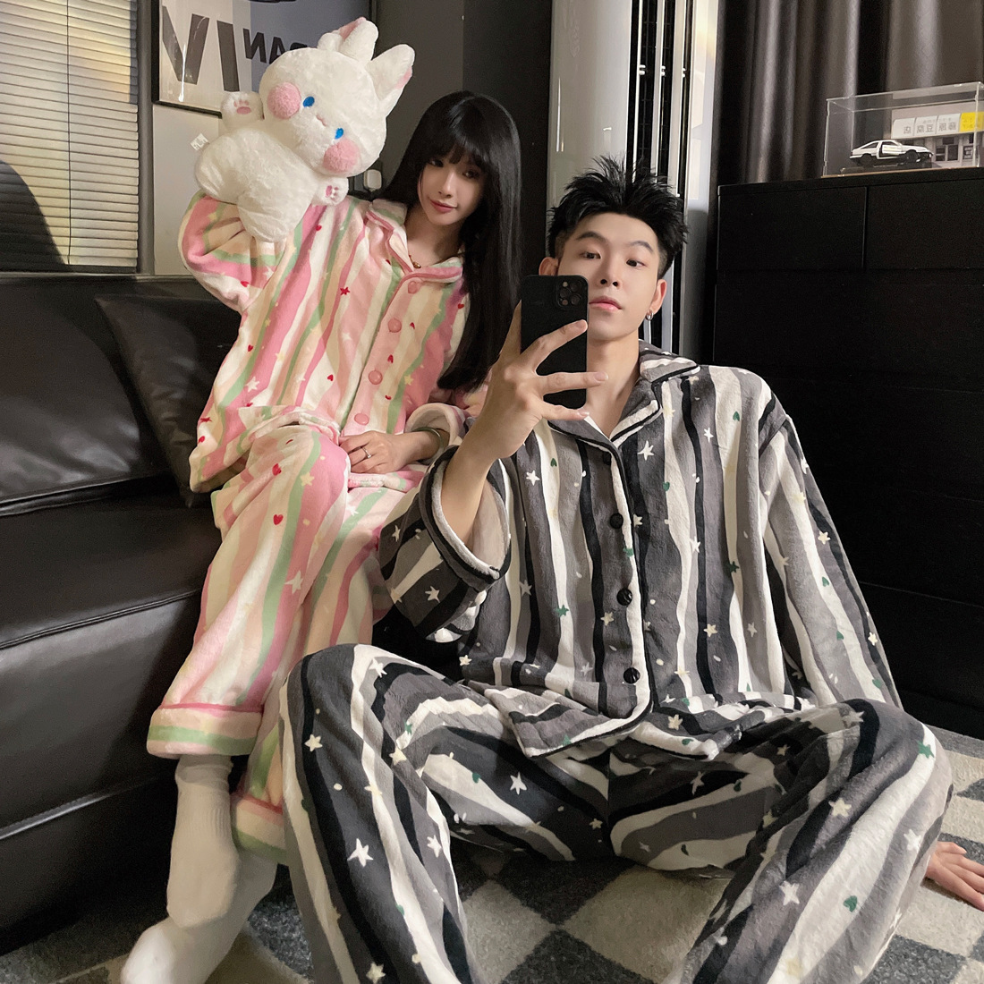 커플 잠옷 여성의 가을과 겨울 산호 양털 기모 두꺼운 카디건 청소년 겨울 따뜻한 남자 홈 옷 세트스토어 가기