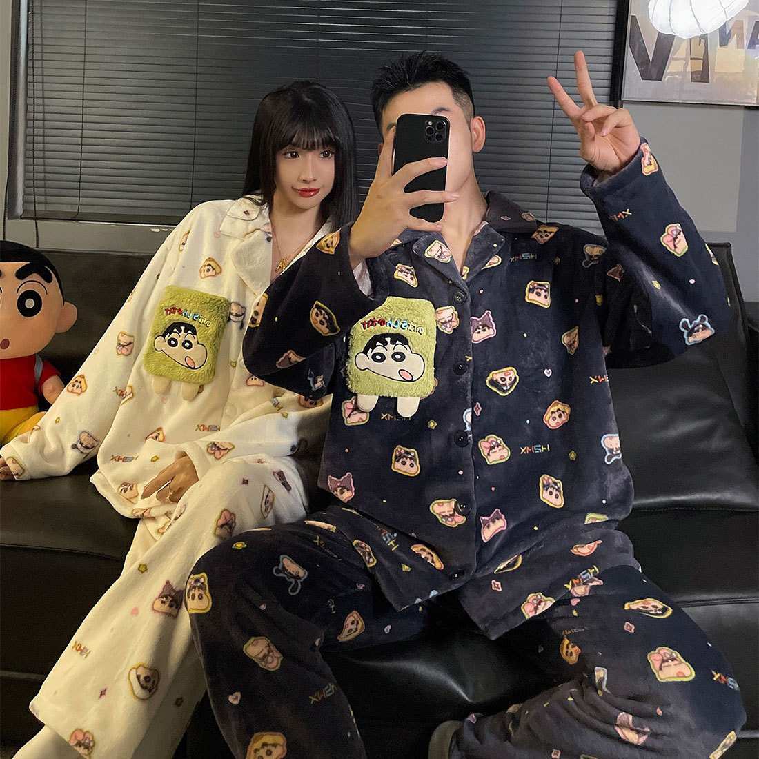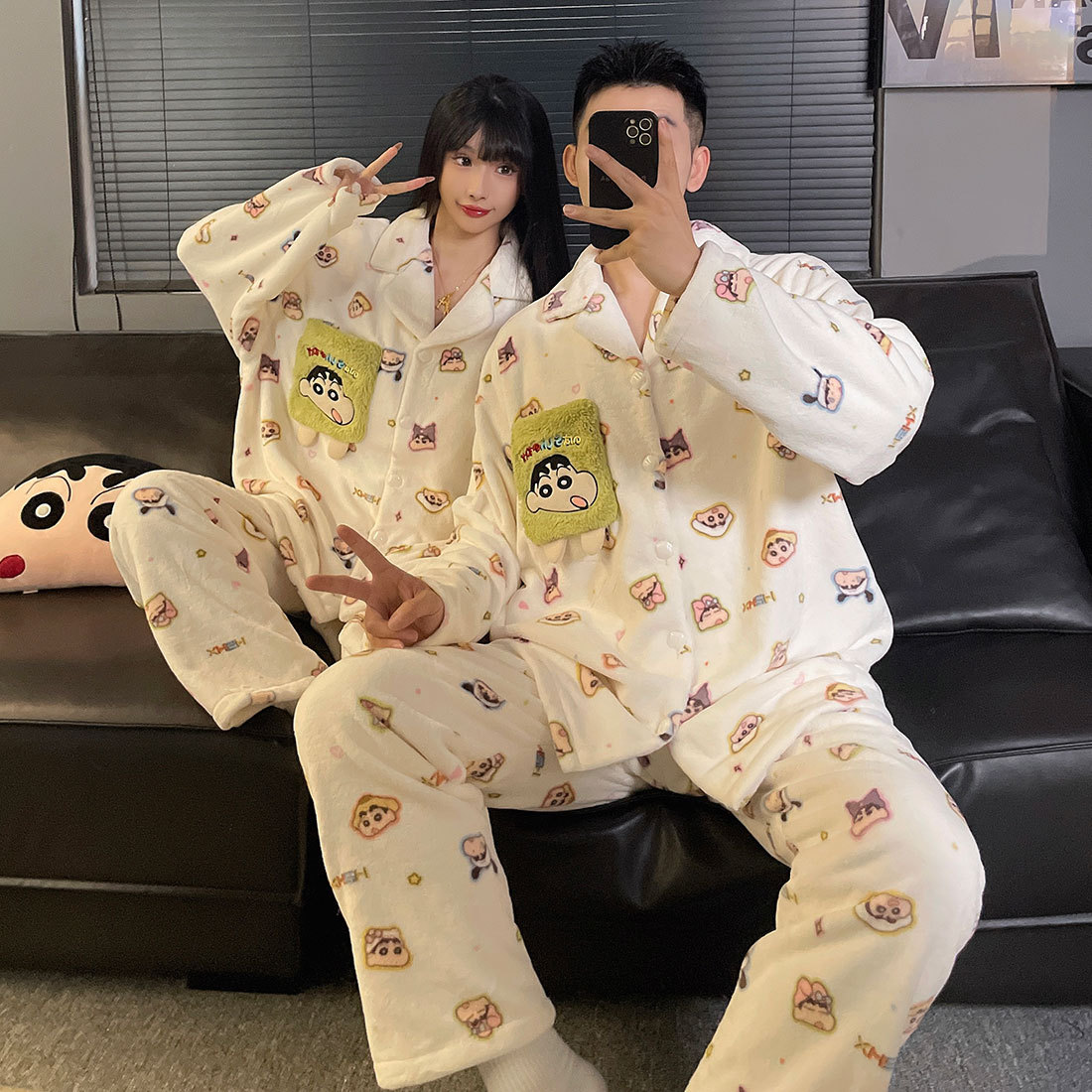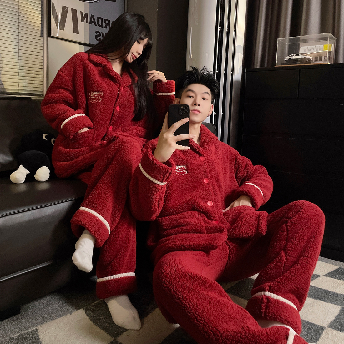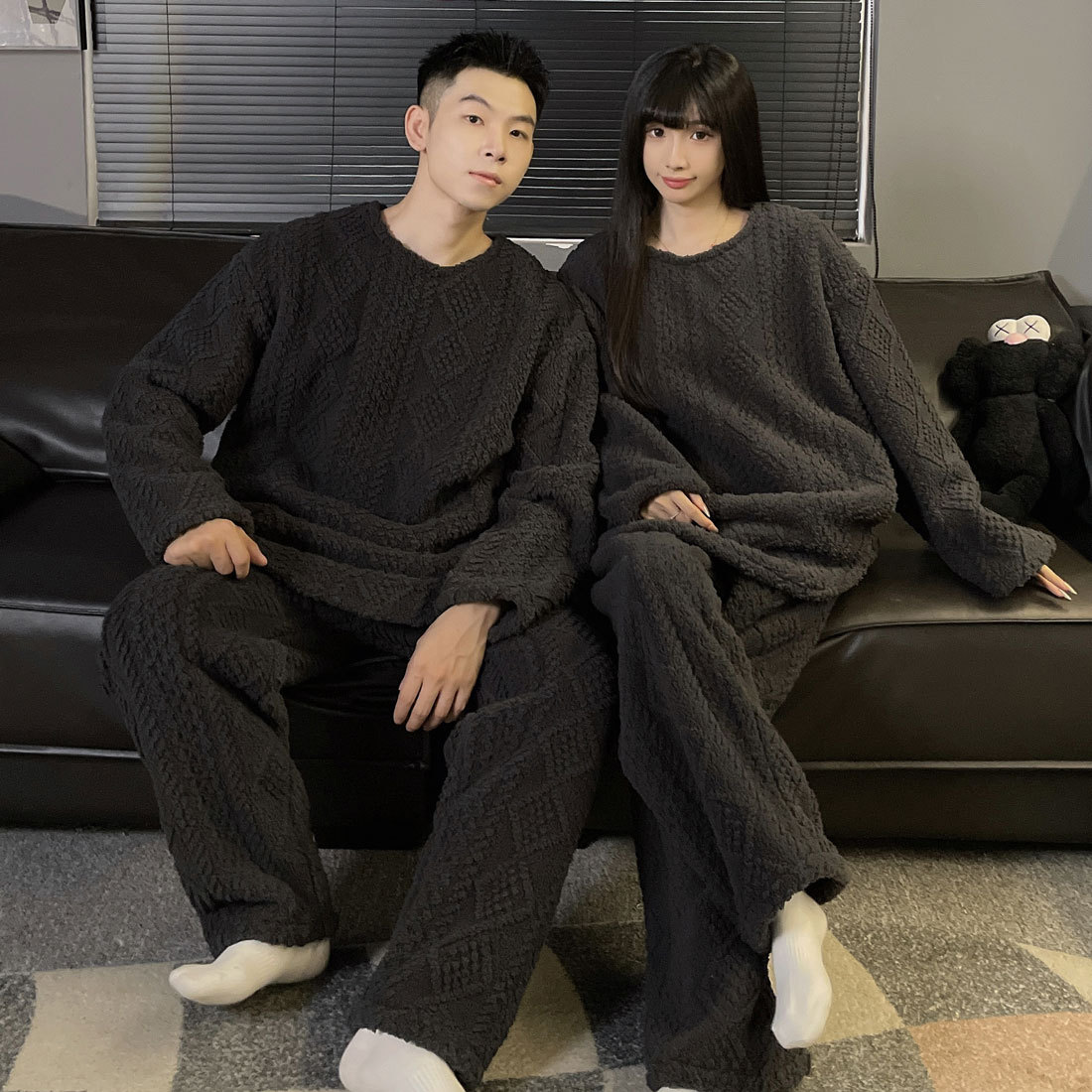 커플 잠옷 여성의 가을과 겨울 산호 양털 기모 두꺼운 카디건 청소년 겨울 따뜻한 남자 홈 옷 세트스토어 가기