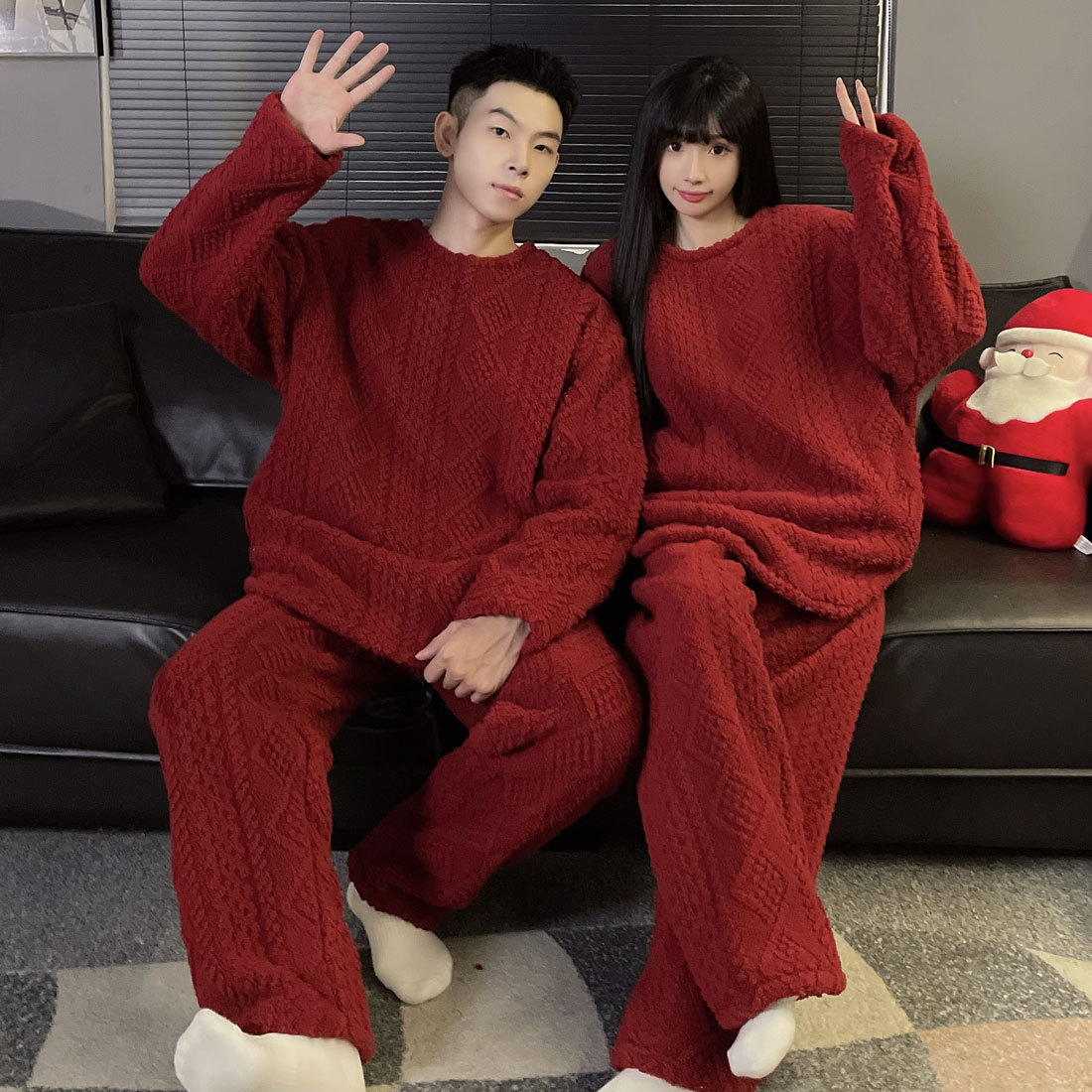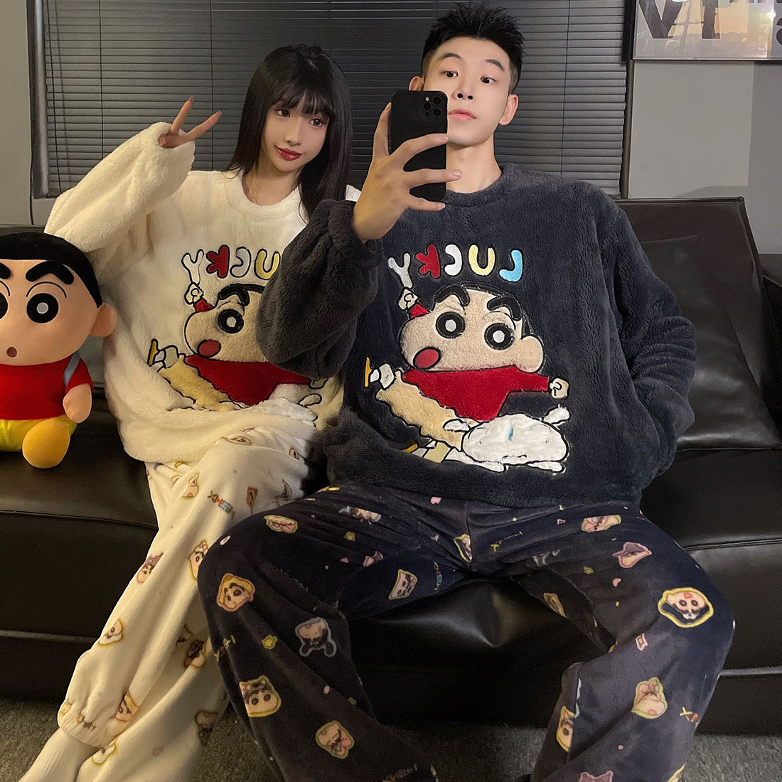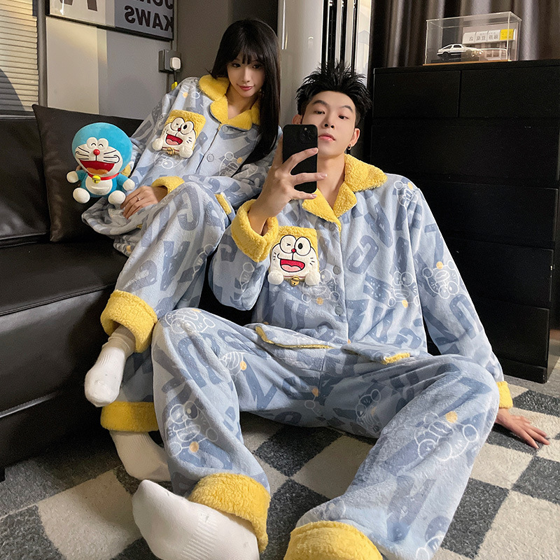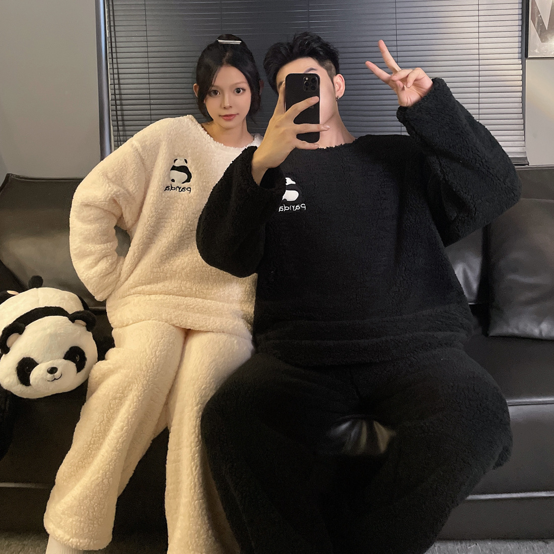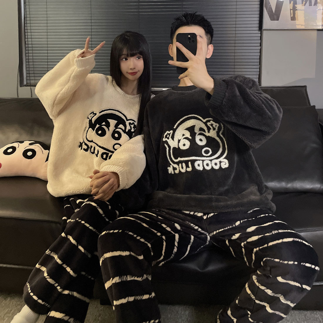 커플 잠옷 여성의 가을과 겨울 산호 양털 기모 두꺼운 카디건 청소년 겨울 따뜻한 남자 홈 옷 세트스토어 가기