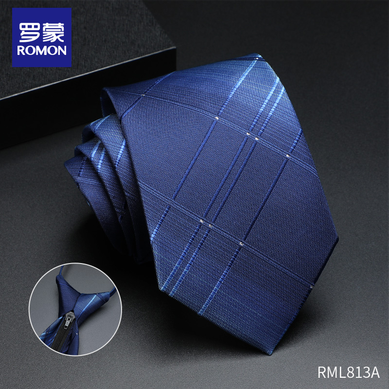 로몬 타이 남자 원피스 지퍼 웨딩 신랑 남자 비즈니스 블루 게으른 히트 프리 세트 셔츠 8cm
