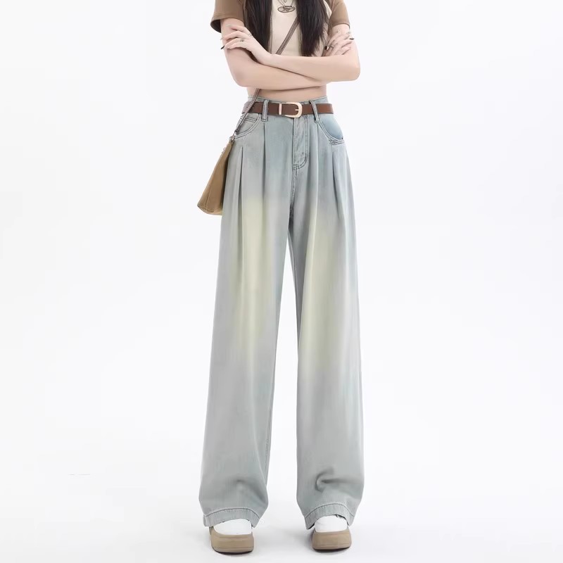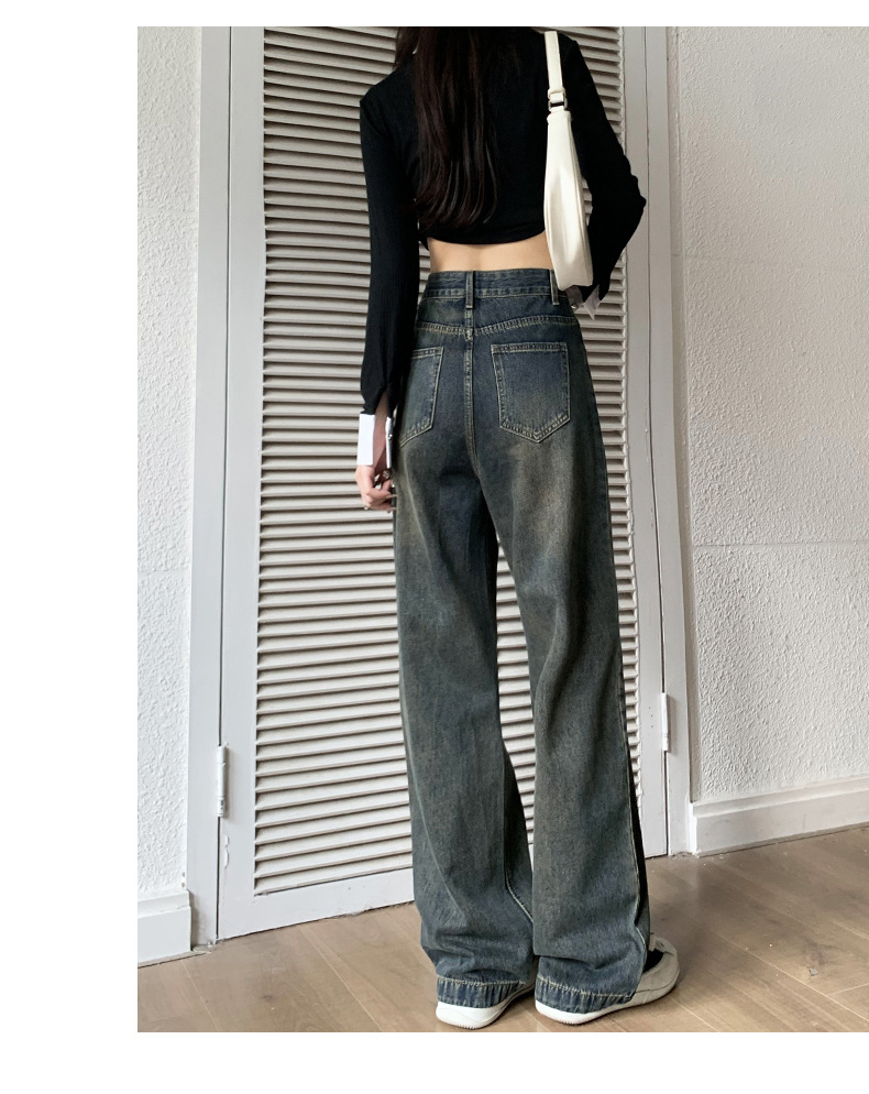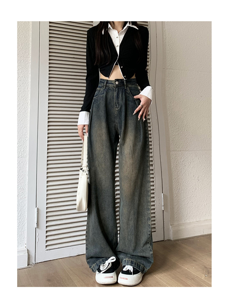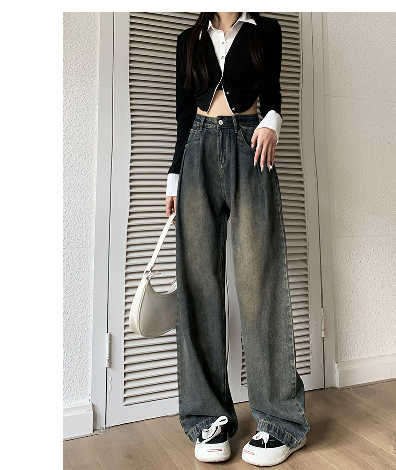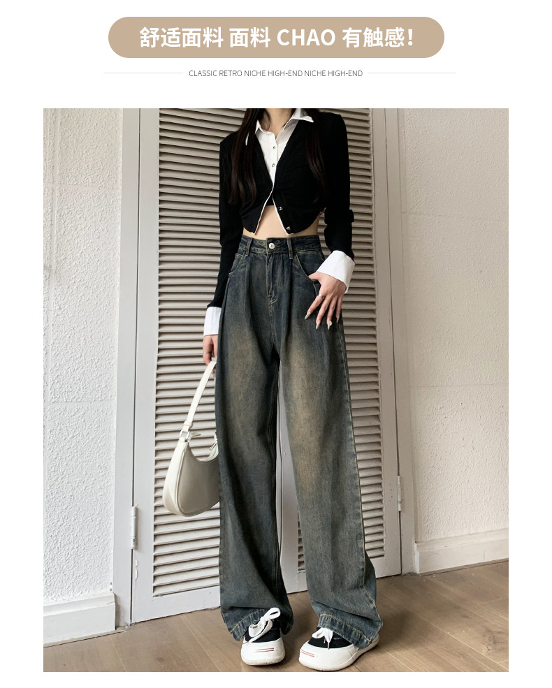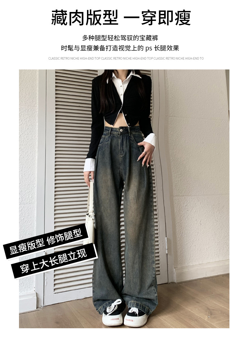 넓은 다리 청바지 여성의 가을과 겨울 2024 새로운 스타일 작은 게으른 높은 허리 레트로 느슨한 기모 스트레이트 바지스토어 가기