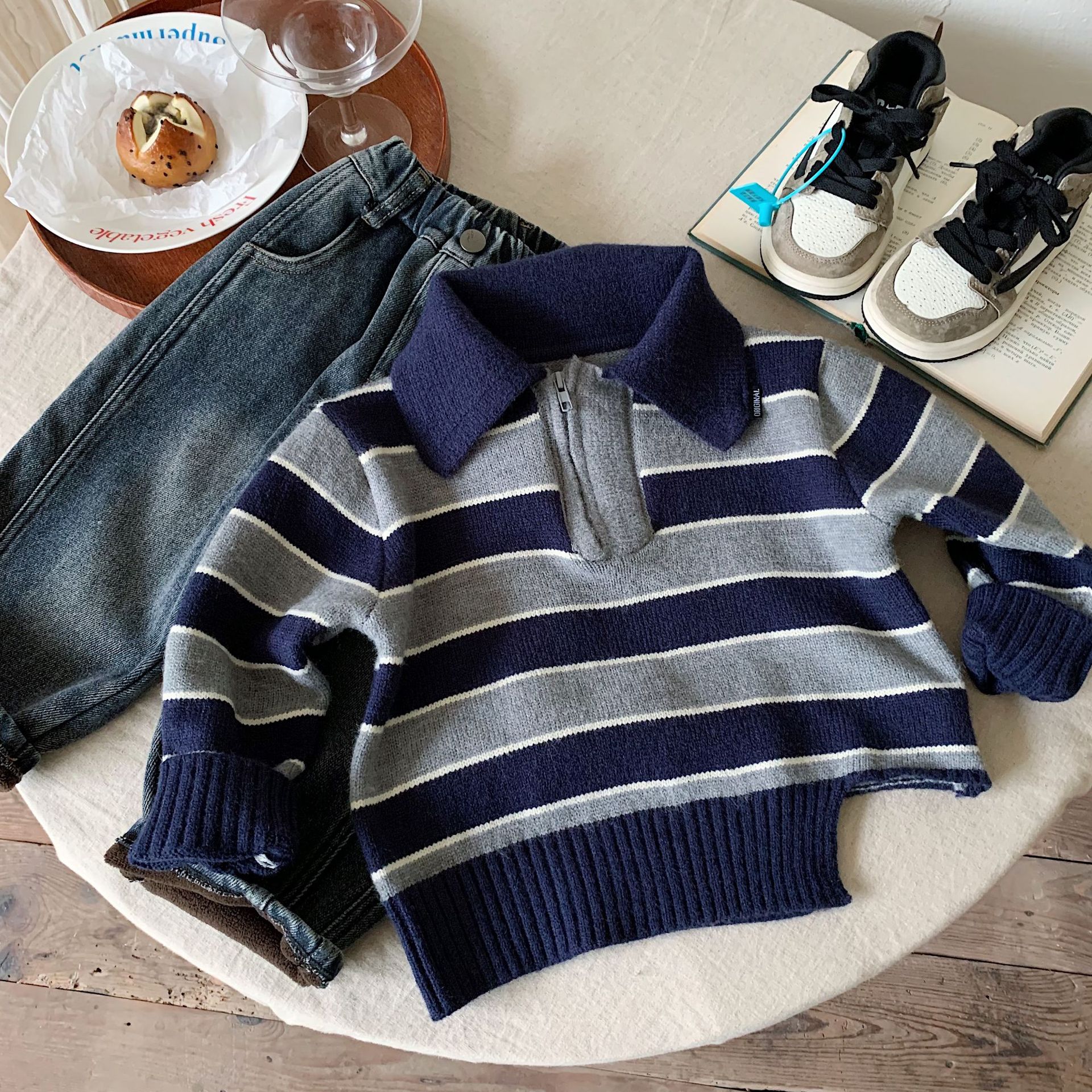 어린이 스웨터 Bangcheng 2025 겨울 신상 스트라이프 폴로 칼라 심플하고 다재다능한 어린이 니트웨어 MY0075스토어 가기