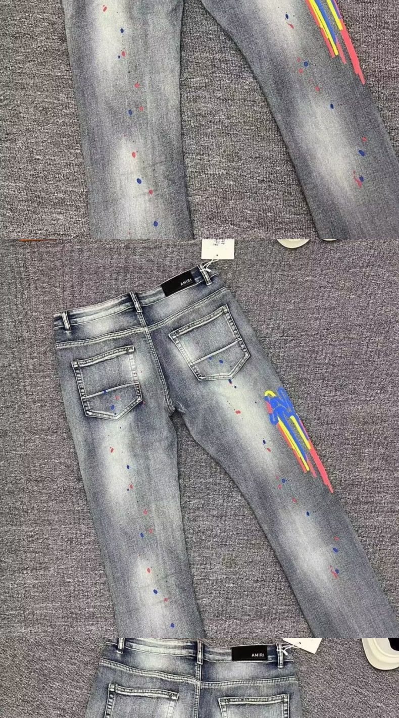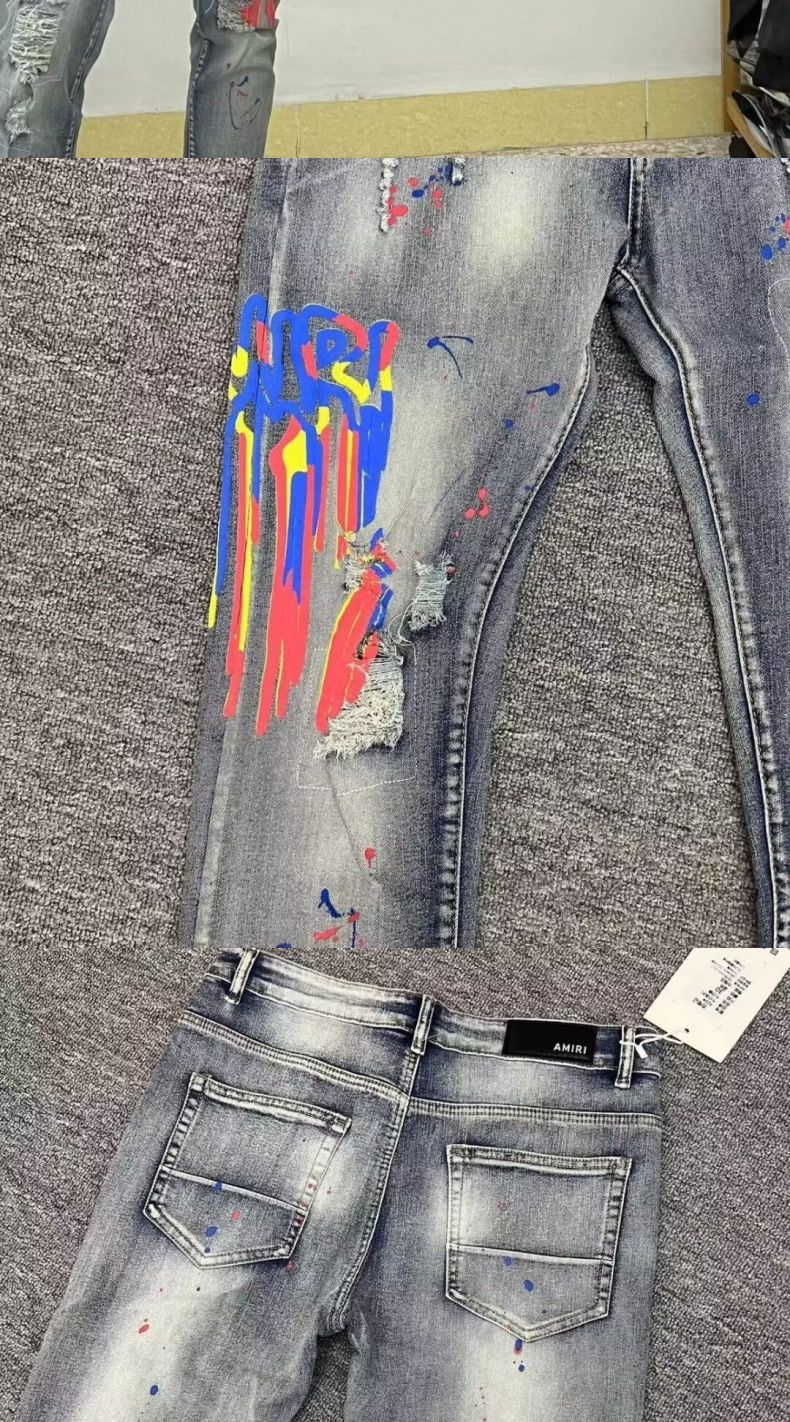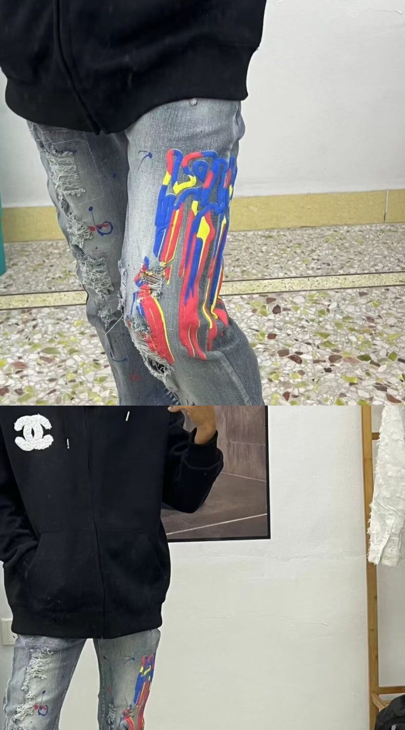 국경 청바지 남성 패션 브랜드 슬림 발 미국 하이 스트리트 잘 생긴 낙서 프린트 찢어진 바지 남성 패션 도매스토어 가기