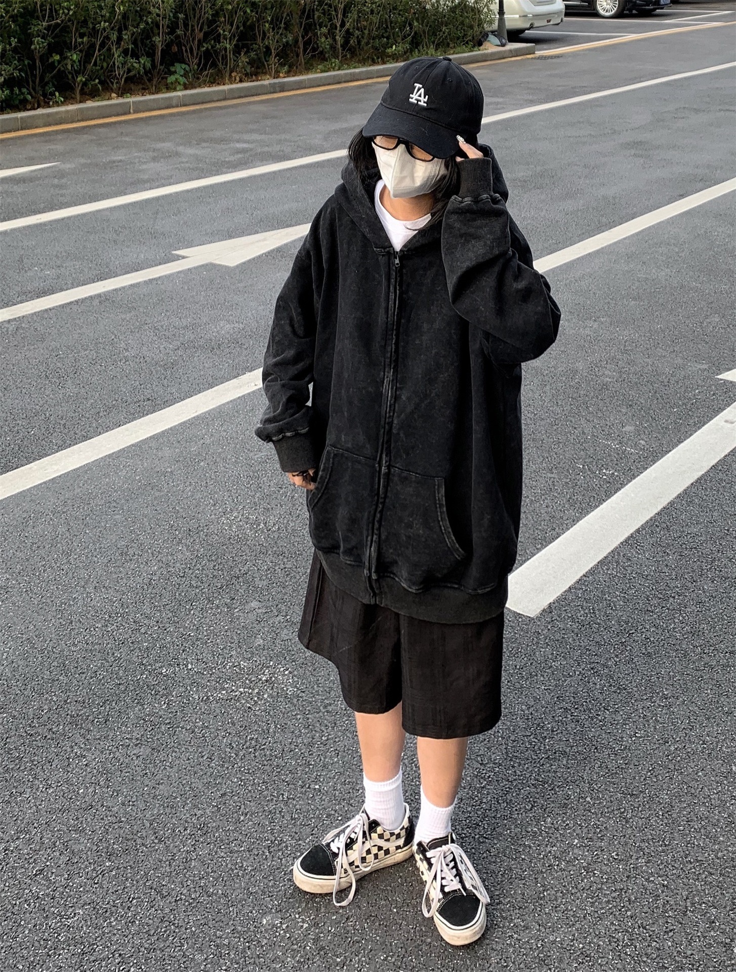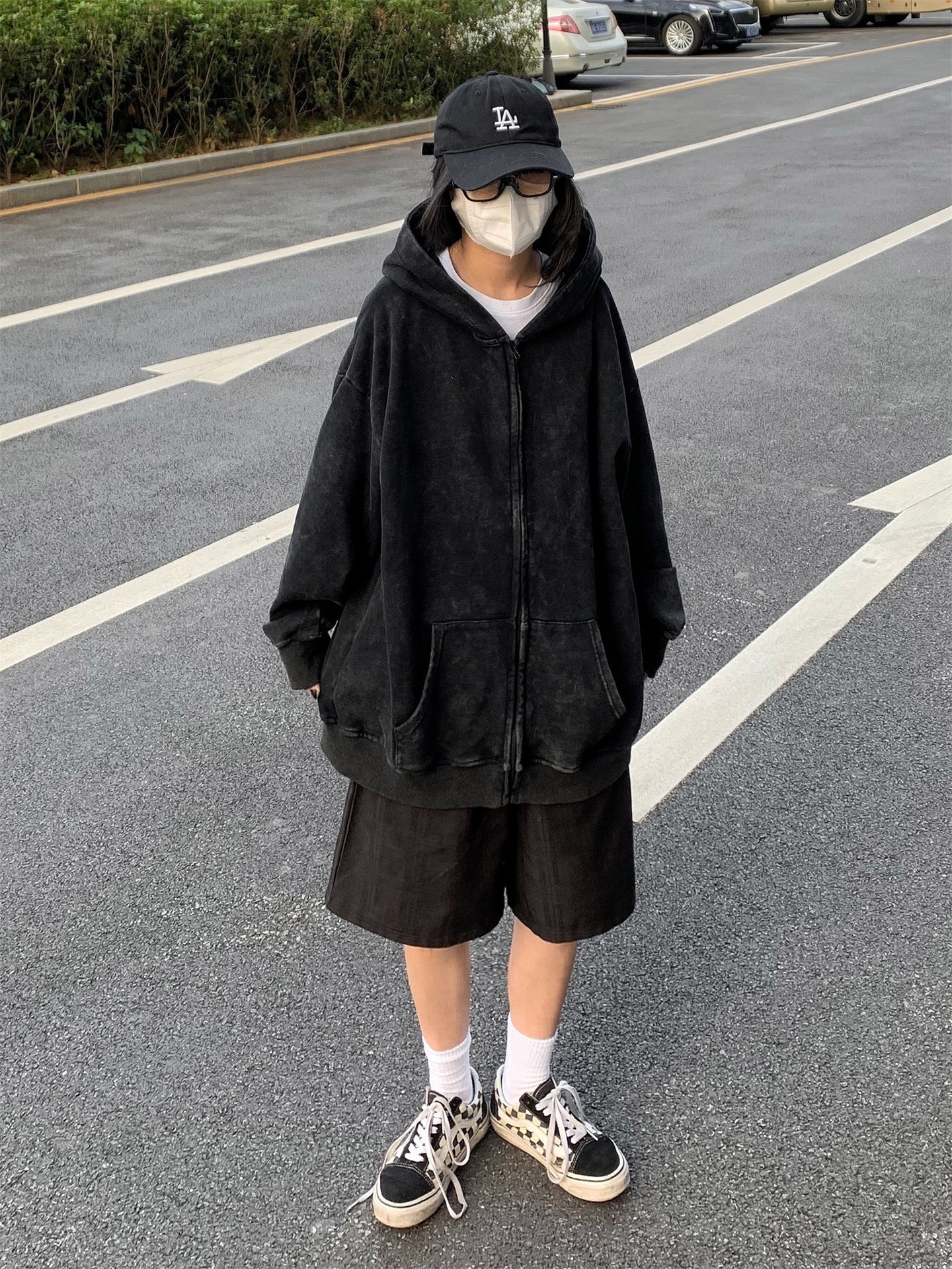 국경 간 공장 직접 공급 가을과 겨울 카디건 스웨터 조수 브랜드, 복고풍 커플 세척 오래된 후드 도매