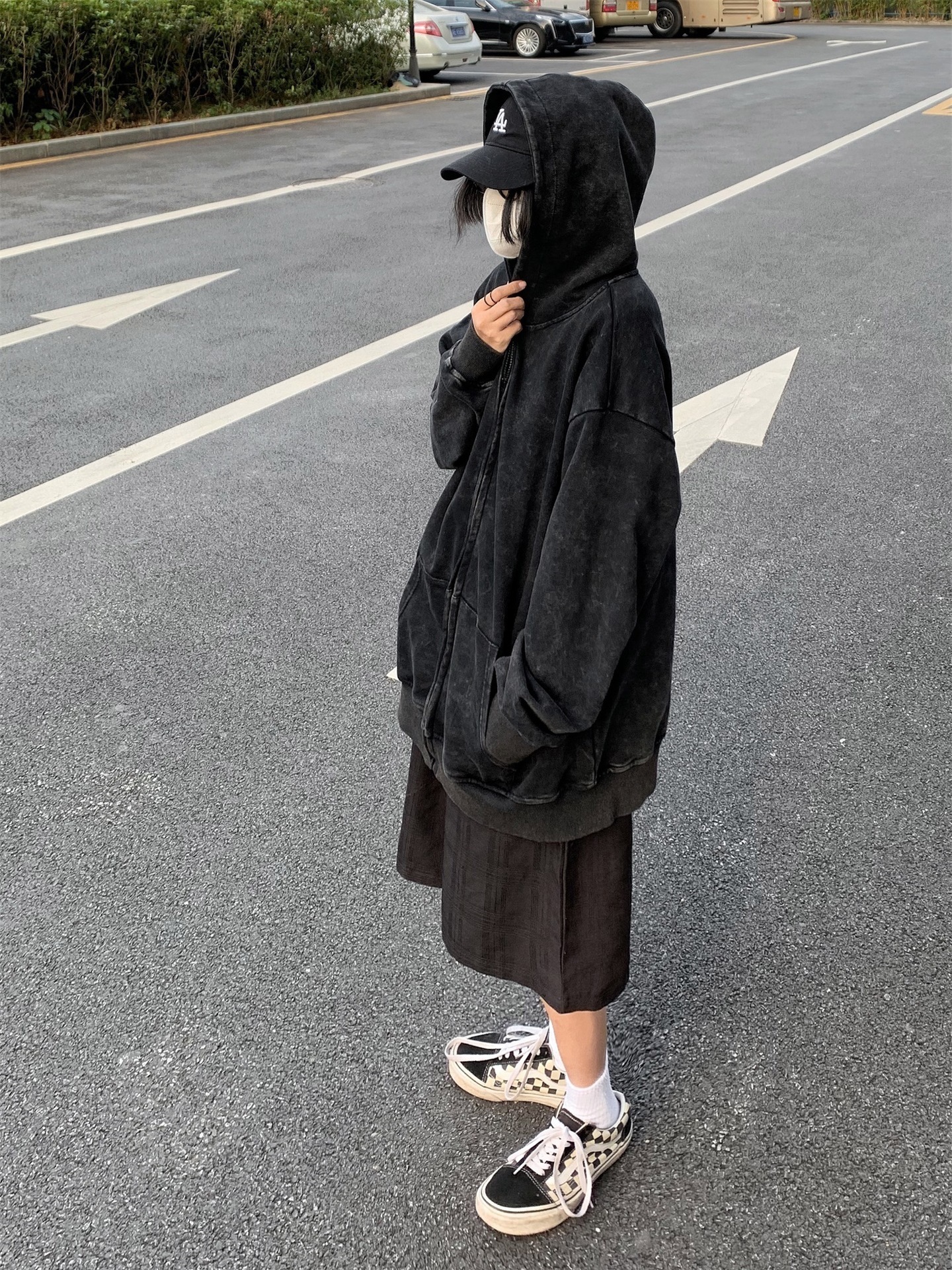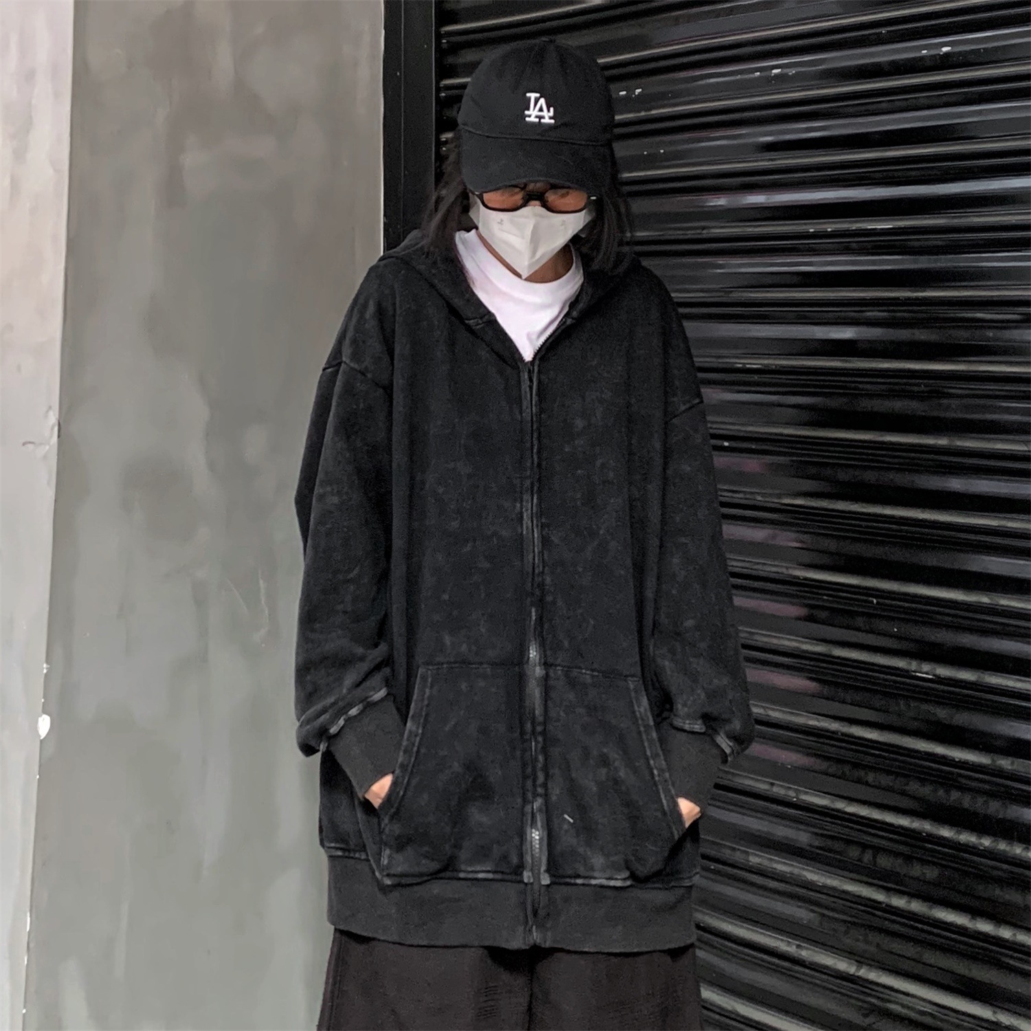 국경 간 공장 직접 공급 가을과 겨울 카디건 스웨터 조수 브랜드, 복고풍 커플 세척 오래된 후드 도매스토어 가기