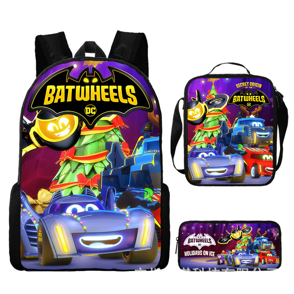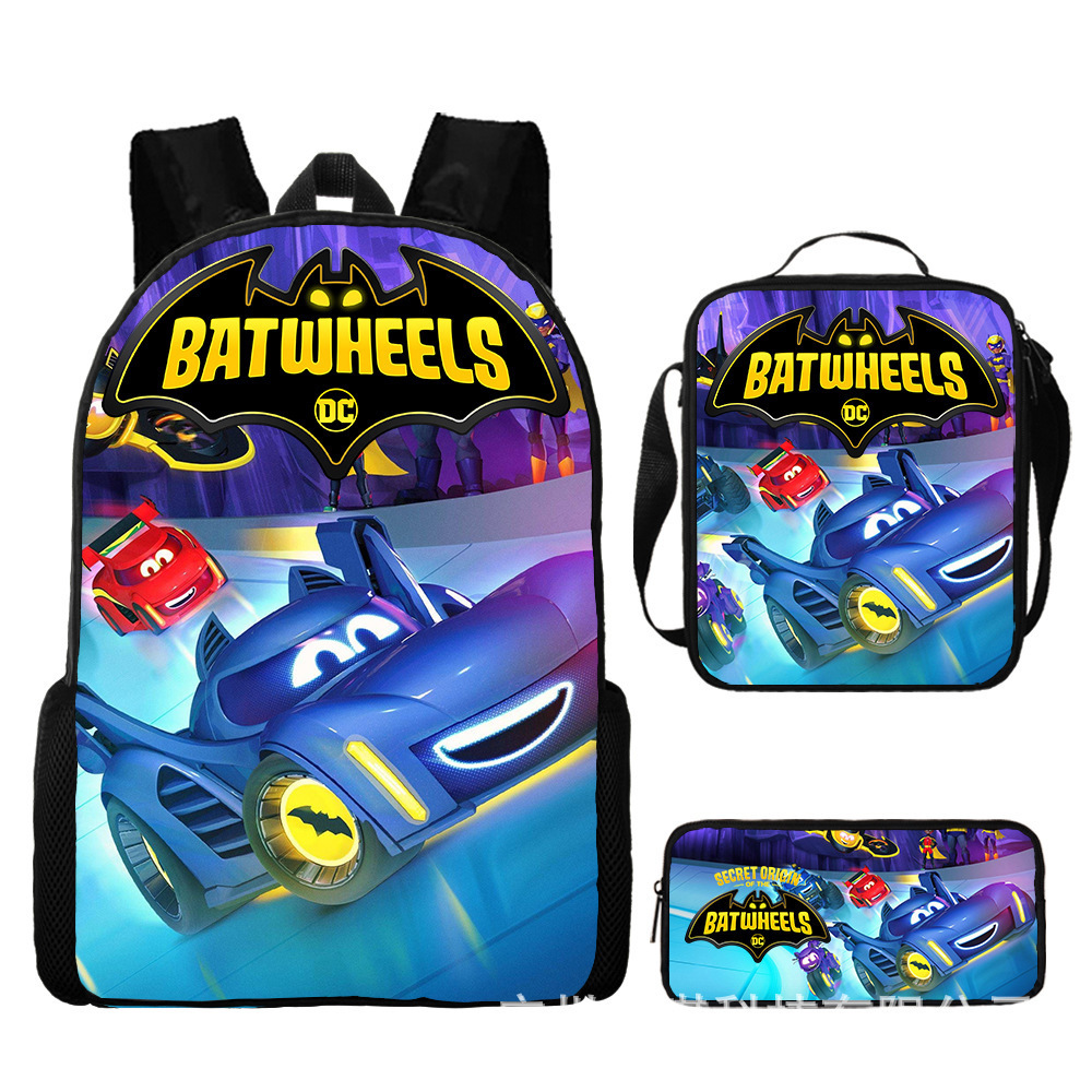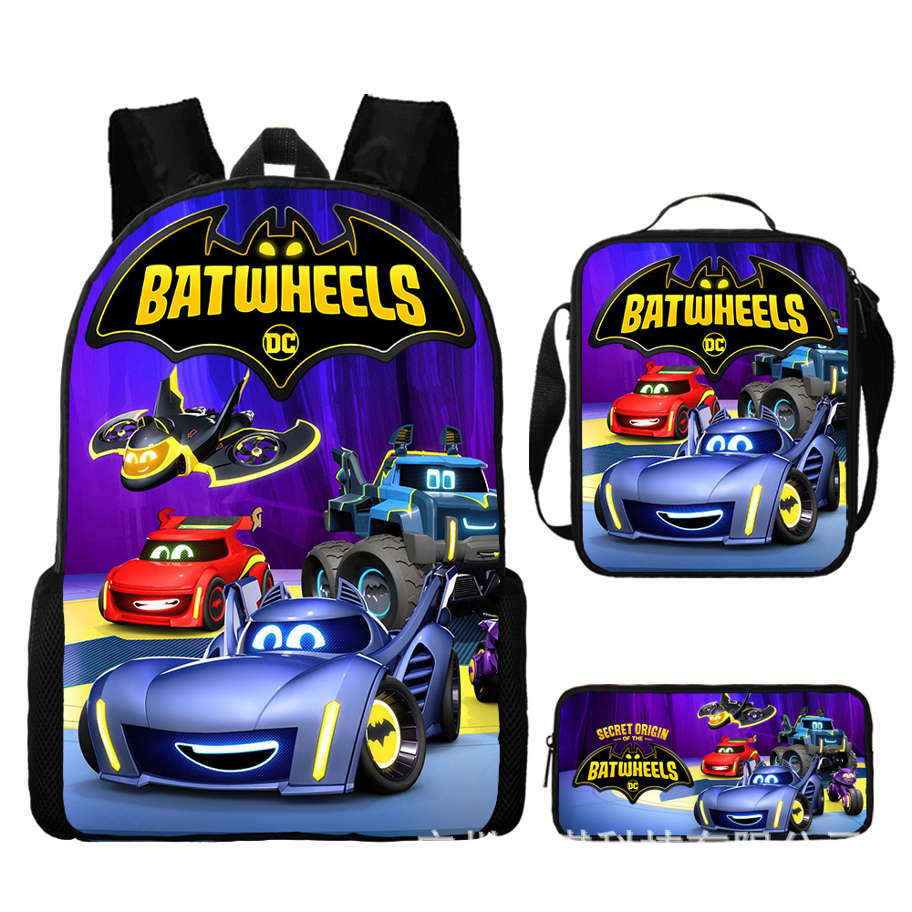 배트 모빌 배트 휠 어린이 스쿨백 초등학교 학생 스쿨백 만화 애니메이션 배낭 숄더백 연필 가방