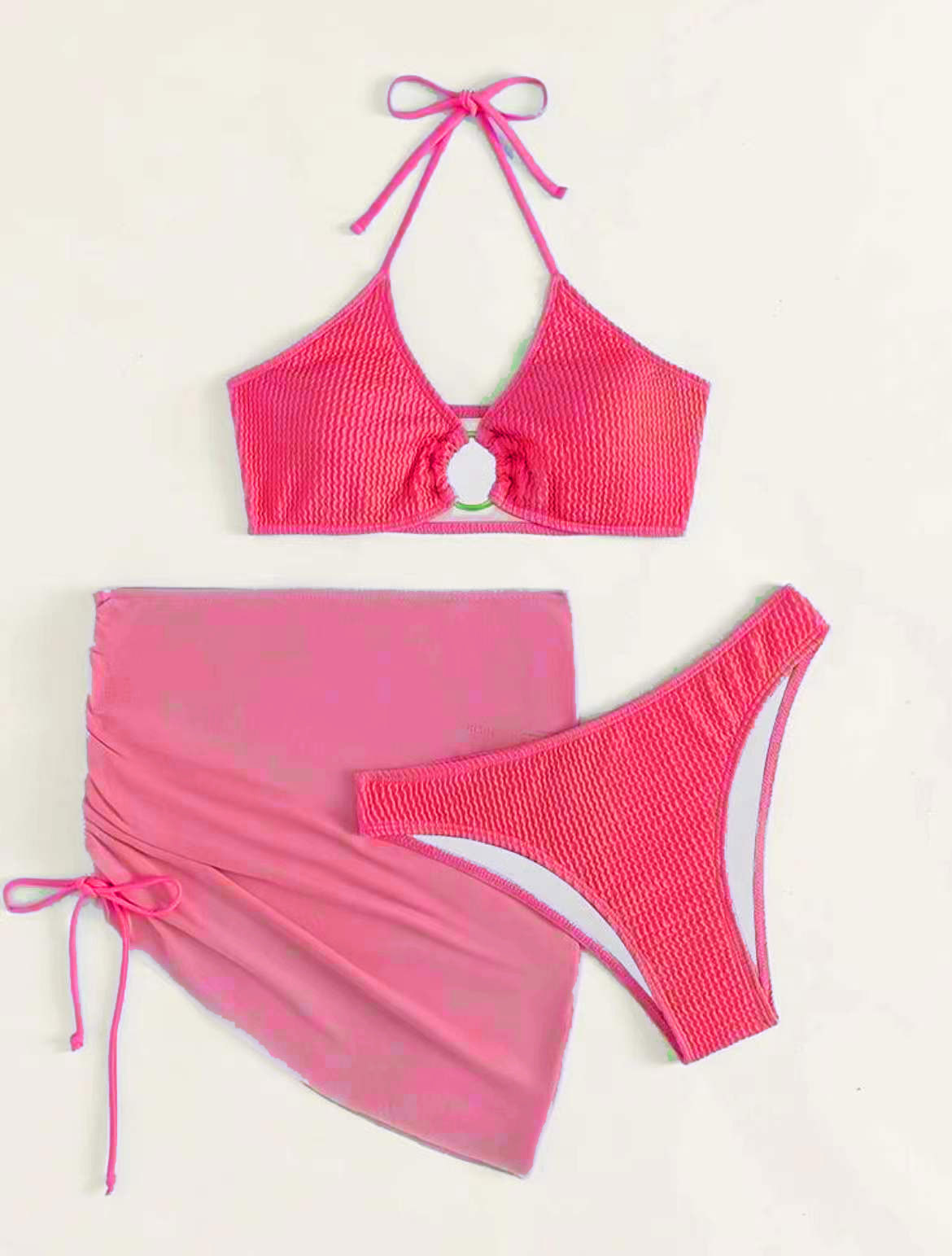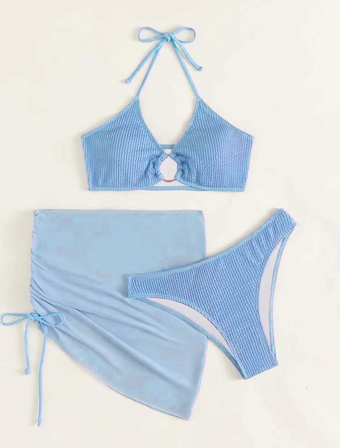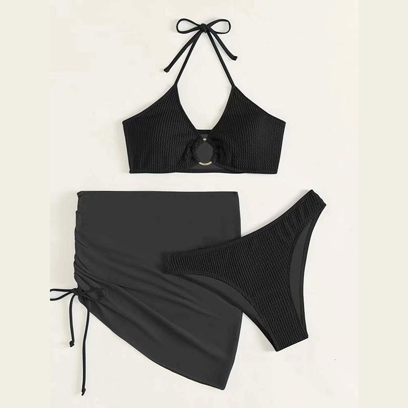 2024 년 대외 무역 새로운 국경 유럽과 미국 스타일 봄과 여름 여성 수영복 슬림 핏 솔리드 컬러 섹시 패션 넥 3 피스 세트