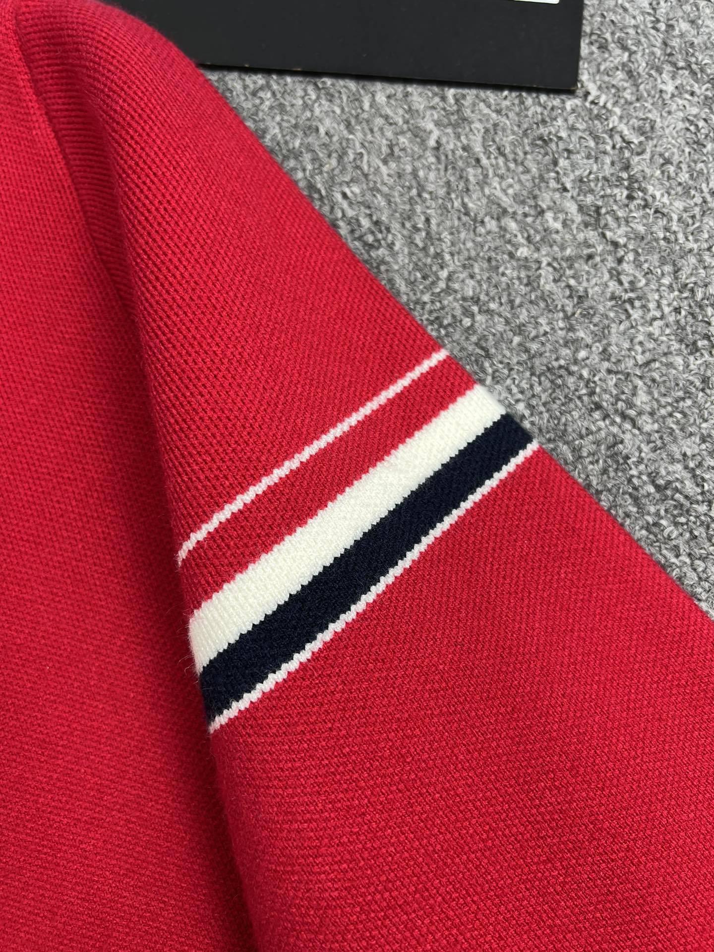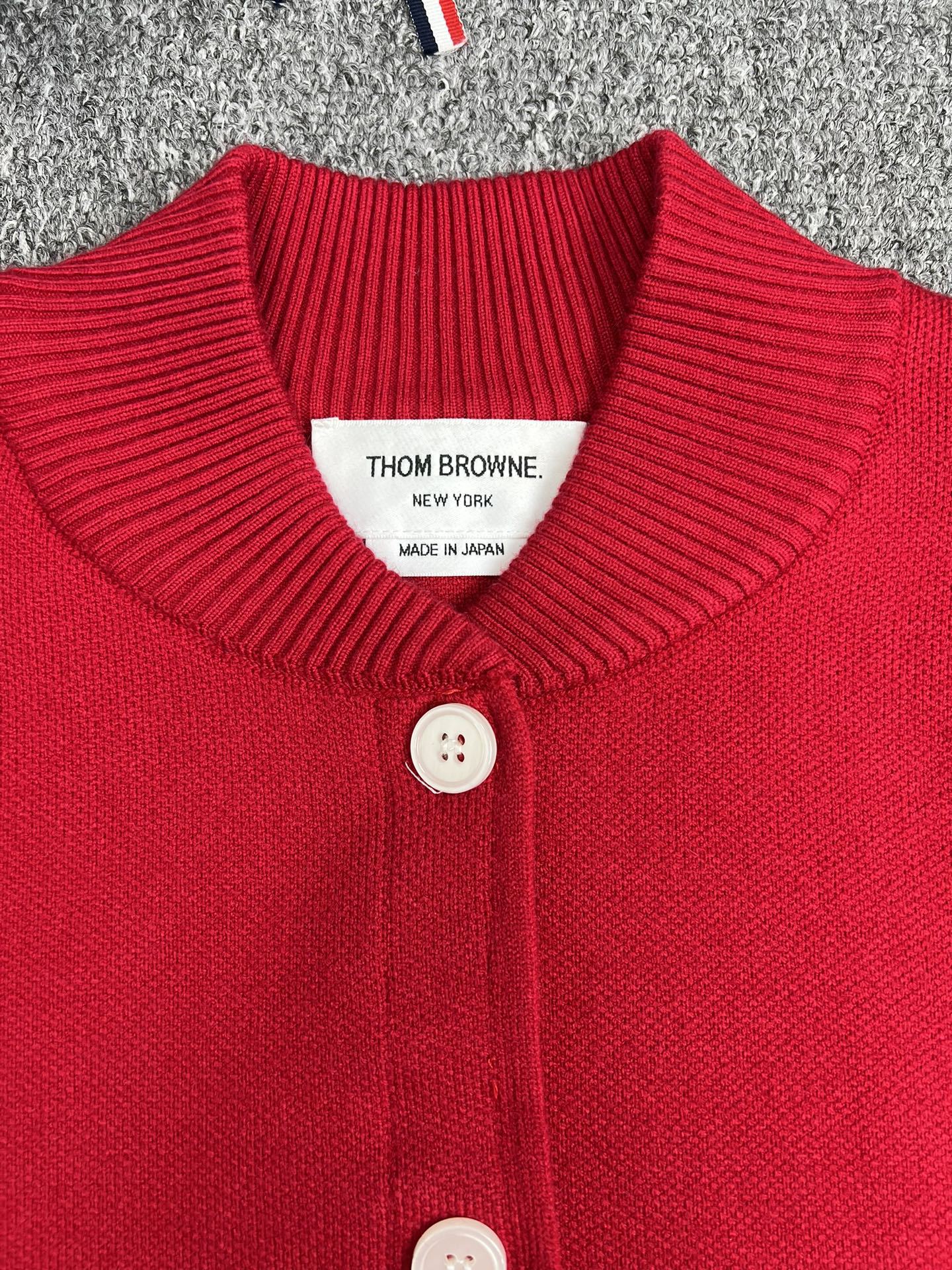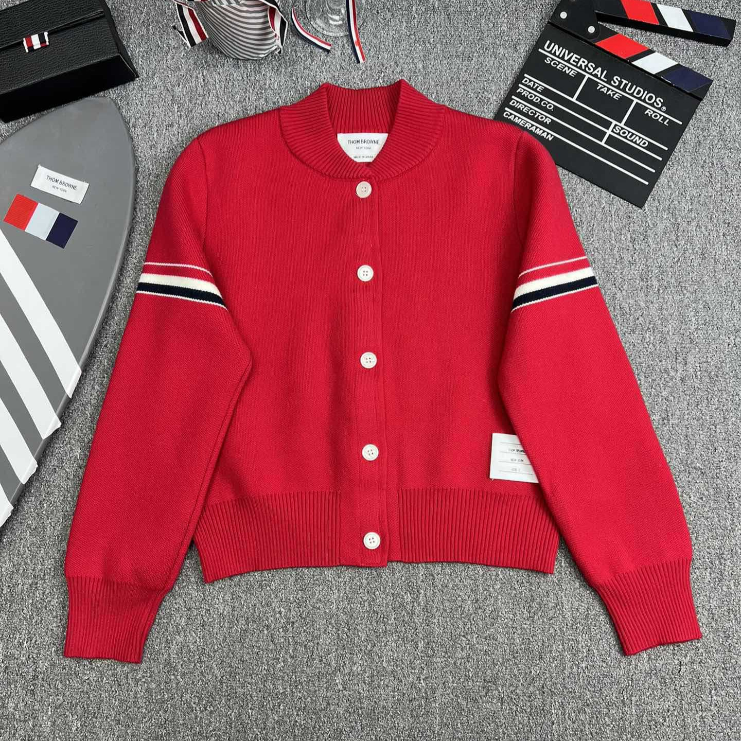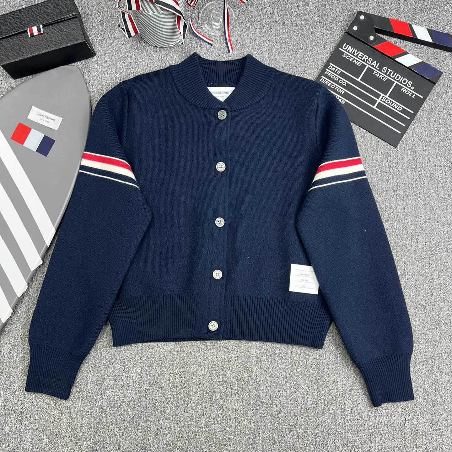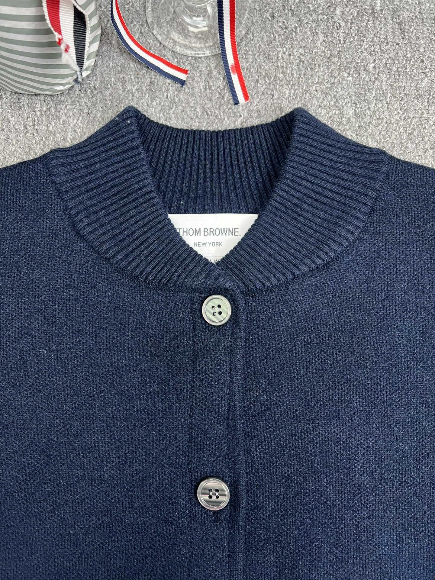 TB 공장 매장 하이 퀄리티 가을과 겨울 더블 소매 레드 화이트 블루 리본 스트라이프 긴 소매 칼라 여성 야구 세트 재킷스토어 가기