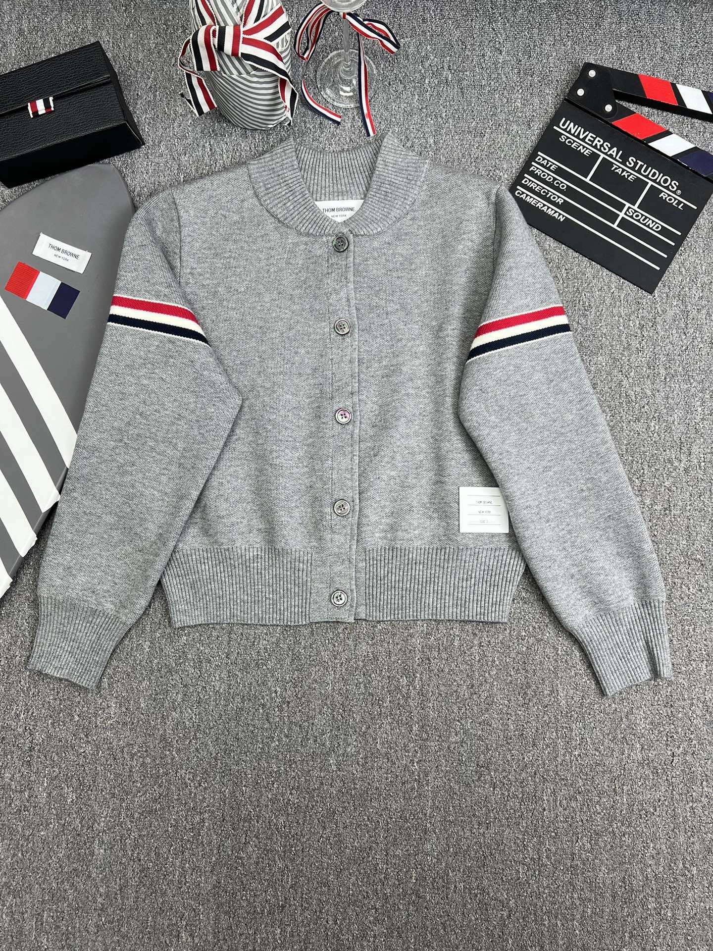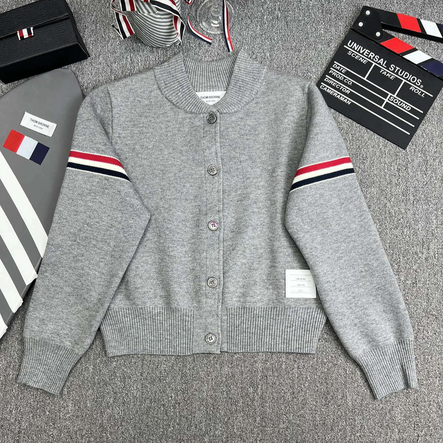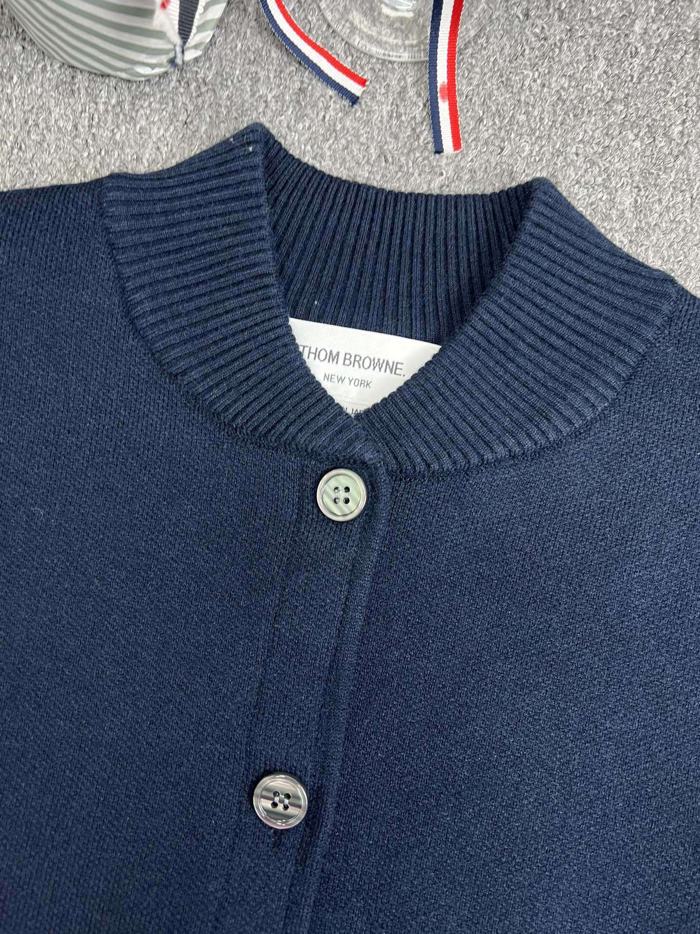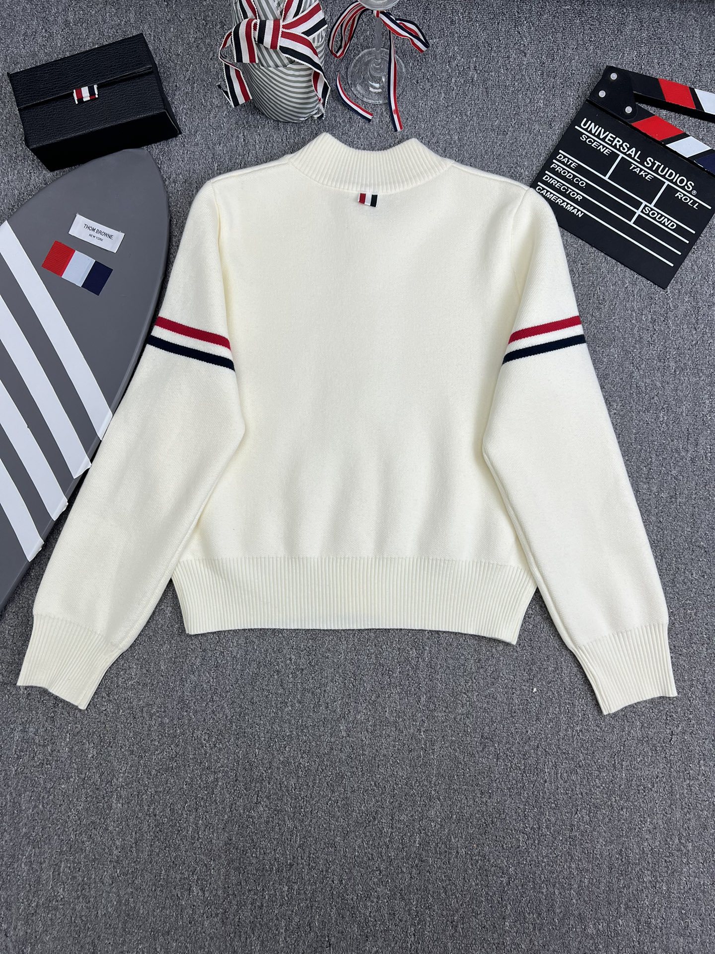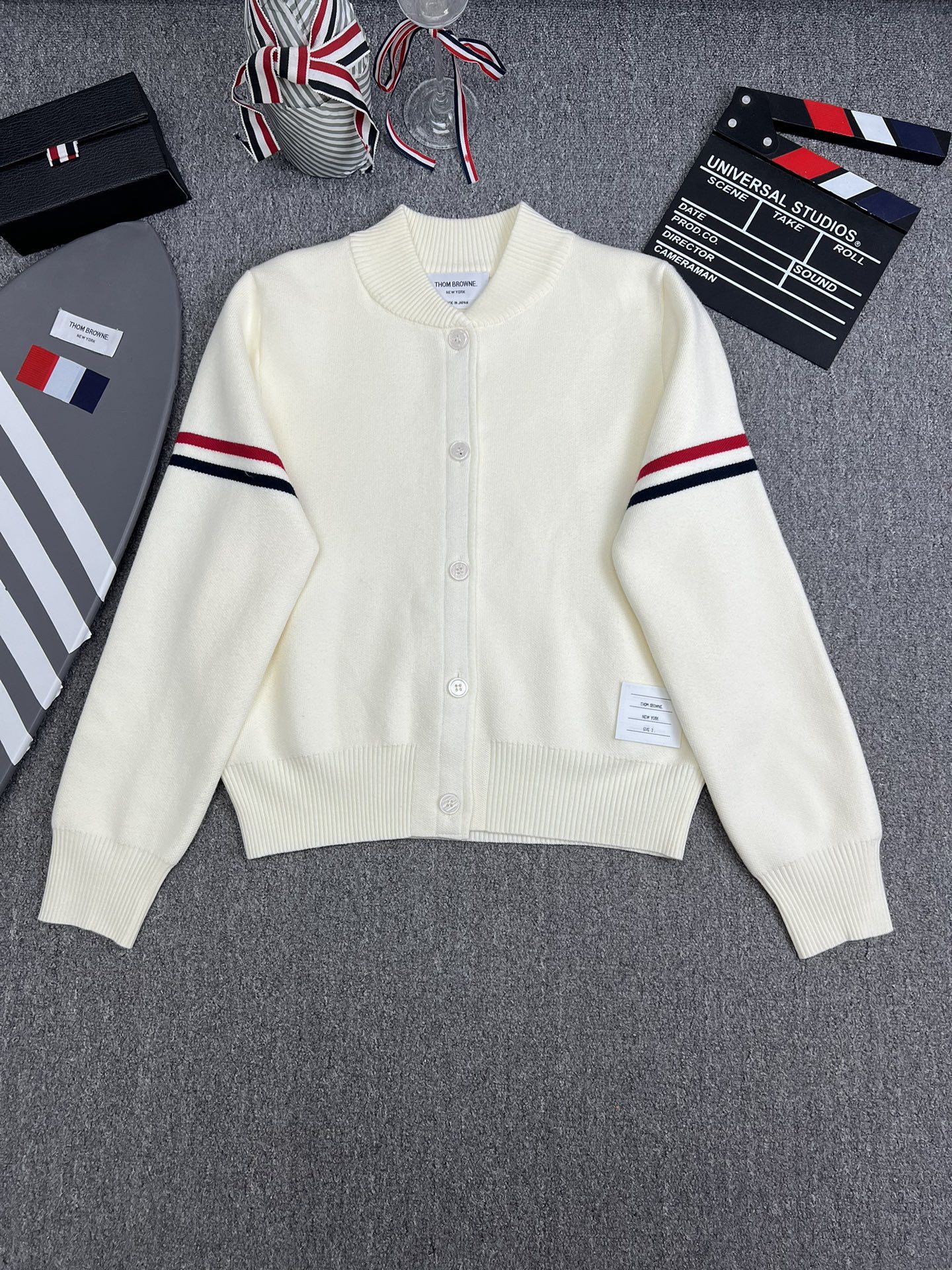 TB 공장 매장 하이 퀄리티 가을과 겨울 더블 소매 레드 화이트 블루 리본 스트라이프 긴 소매 칼라 여성 야구 세트 재킷스토어 가기