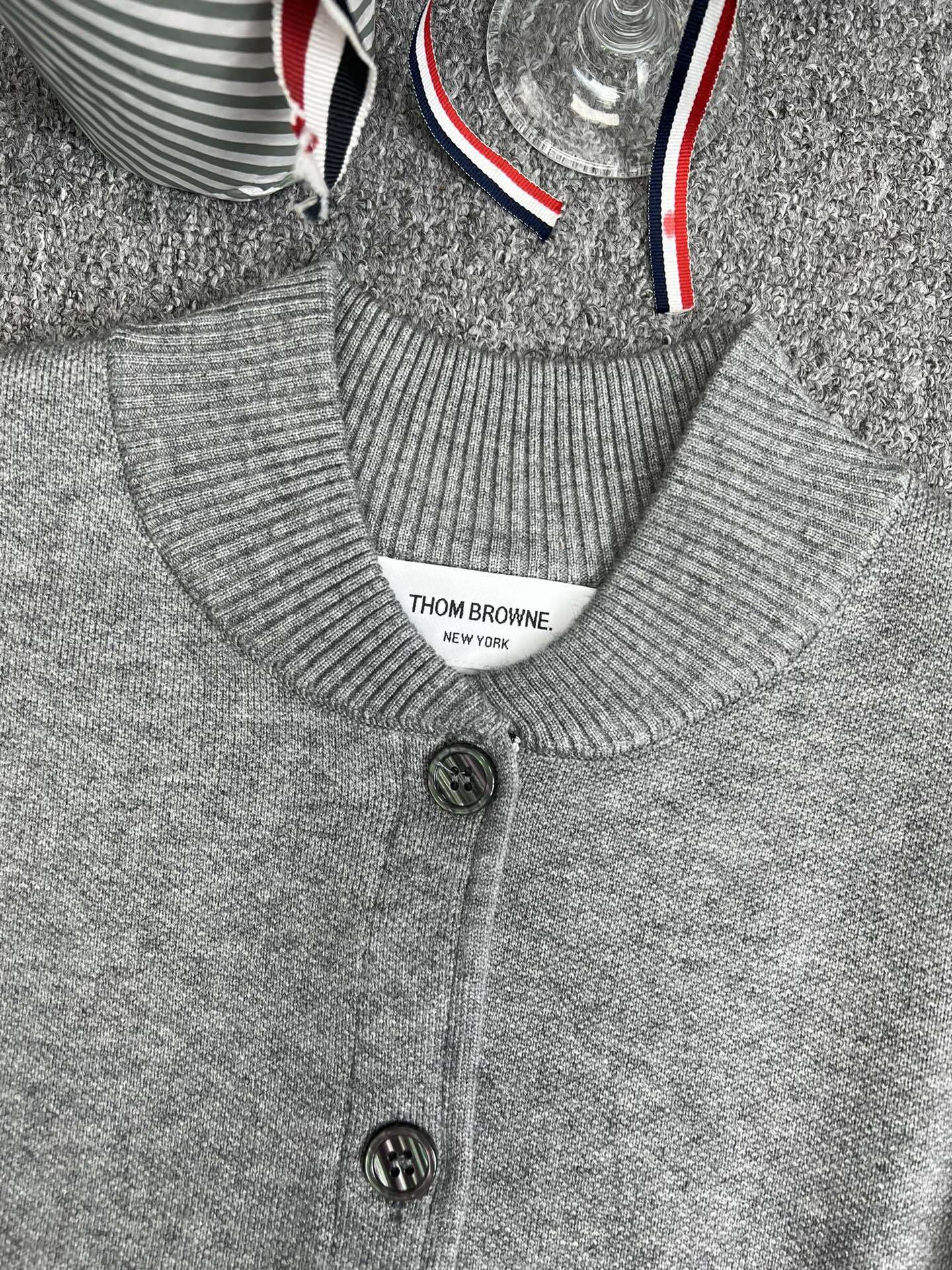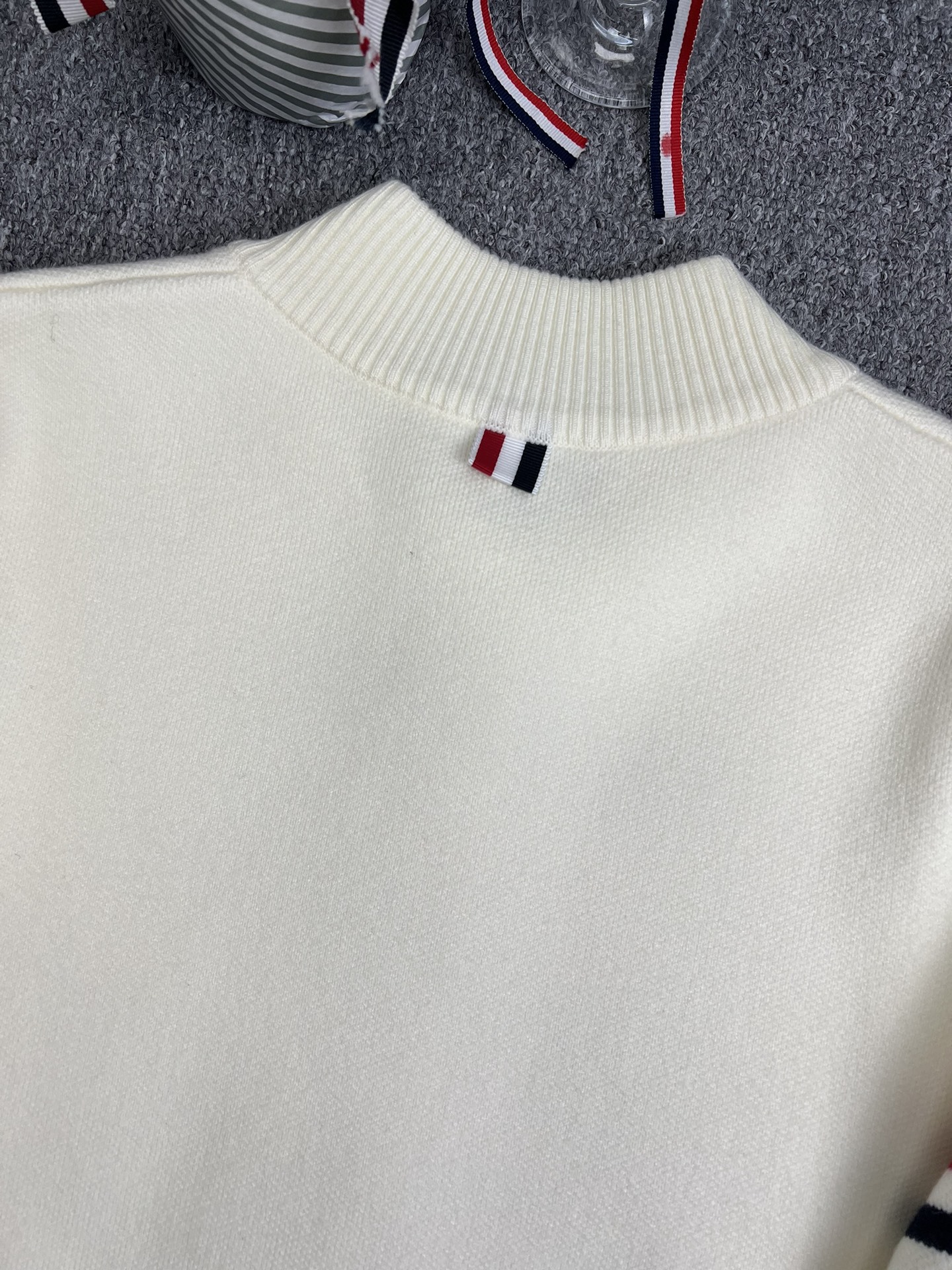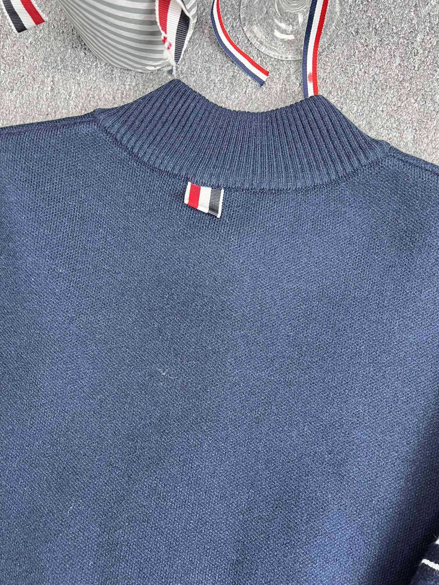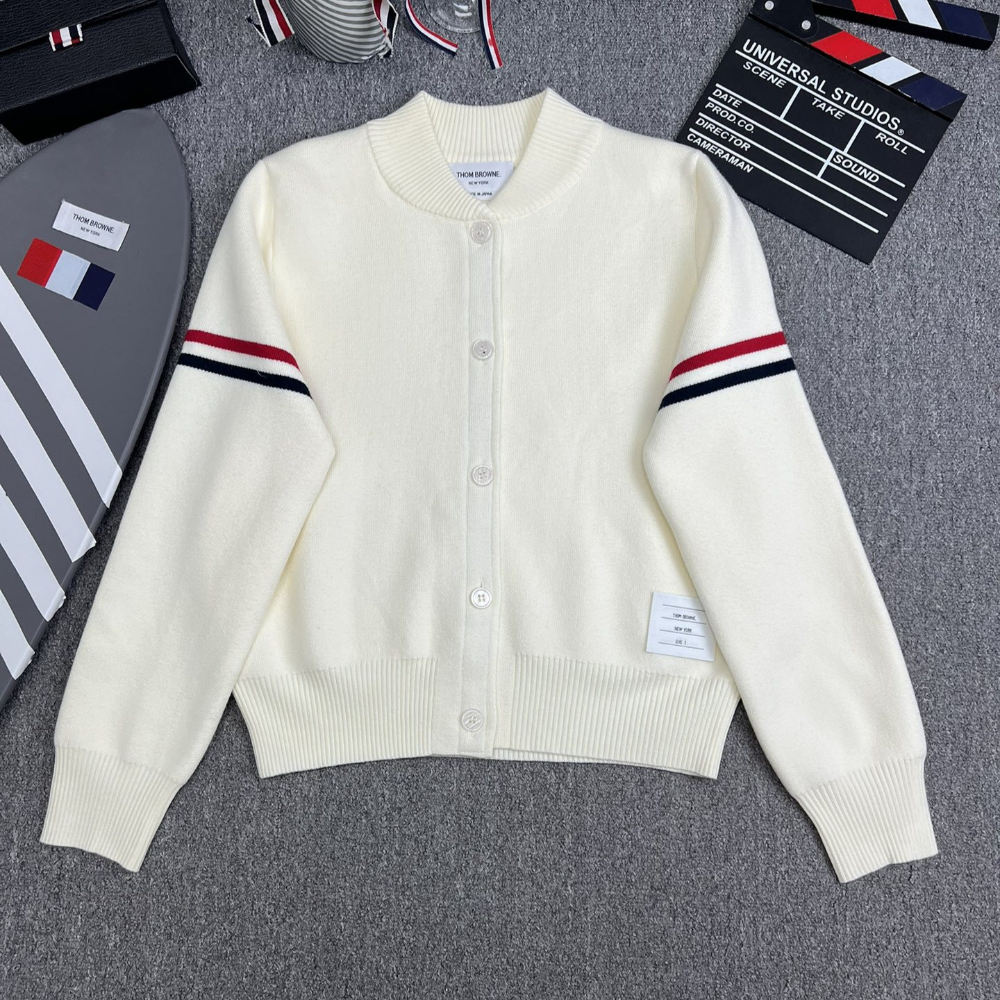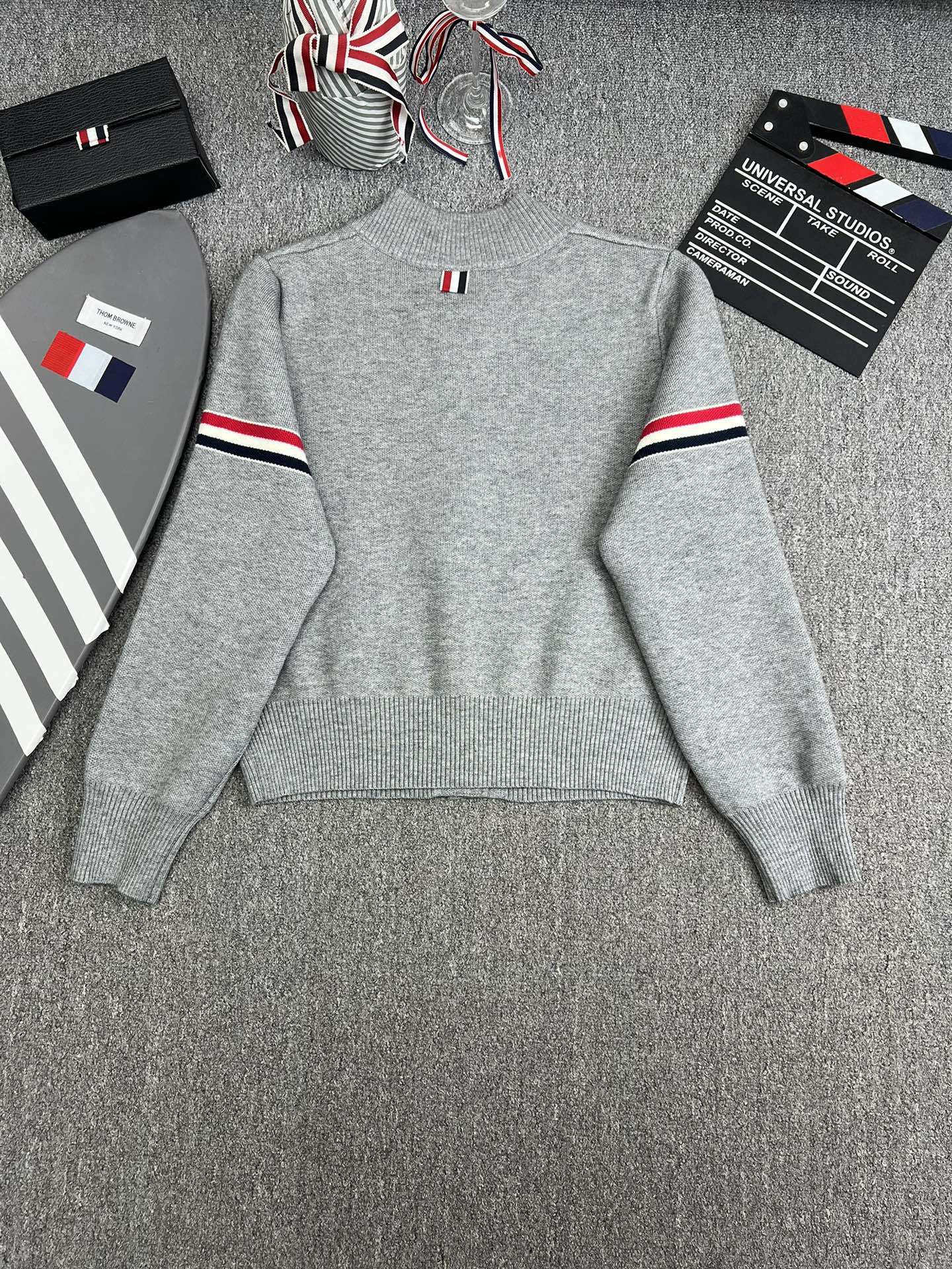 TB 공장 매장 하이 퀄리티 가을과 겨울 더블 소매 레드 화이트 블루 리본 스트라이프 긴 소매 칼라 여성 야구 세트 재킷스토어 가기