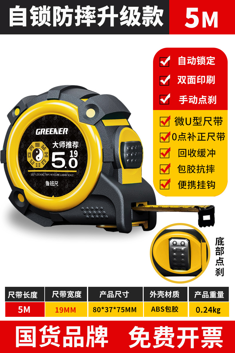 • 정품 Luban 자 5m*19mm [고무 코팅 자동 잠금] - 국가 표준 정확도, 공식 정품