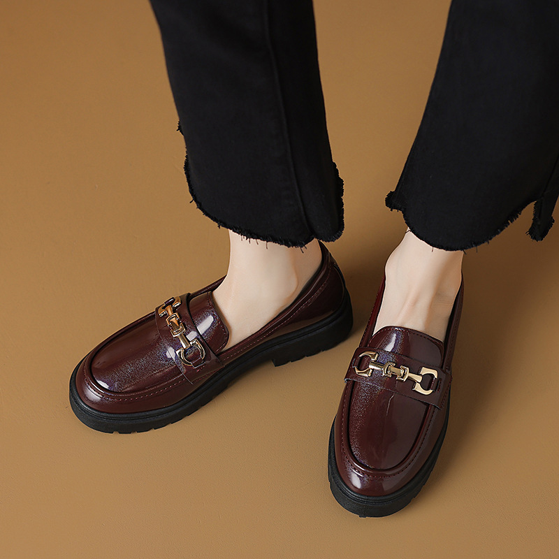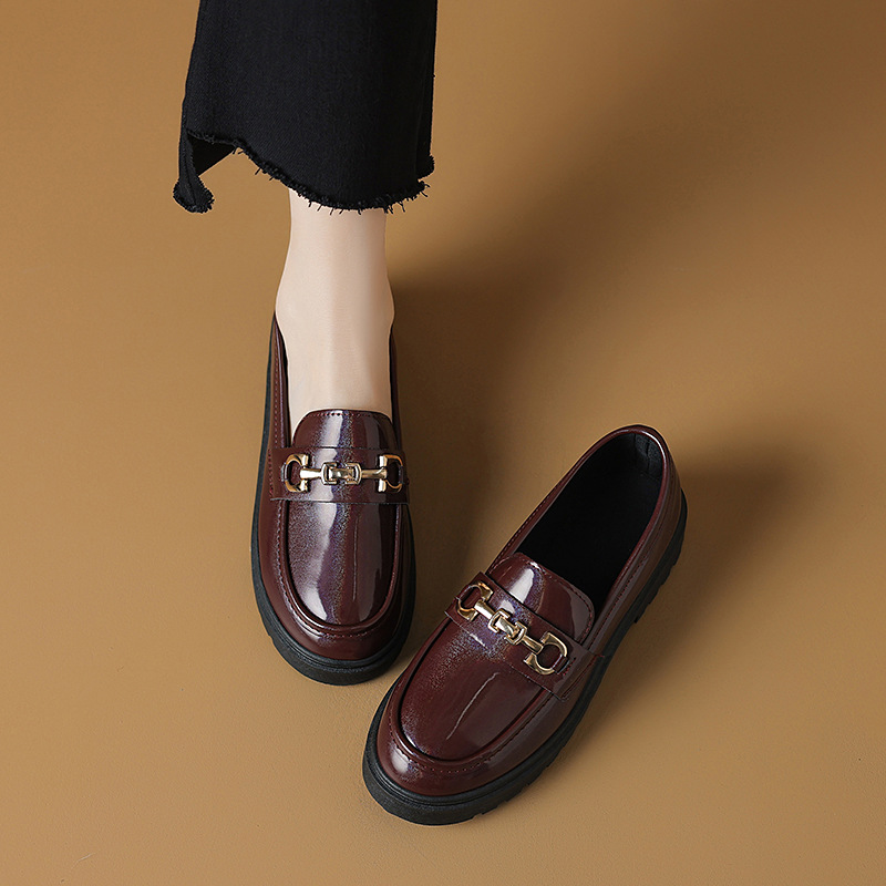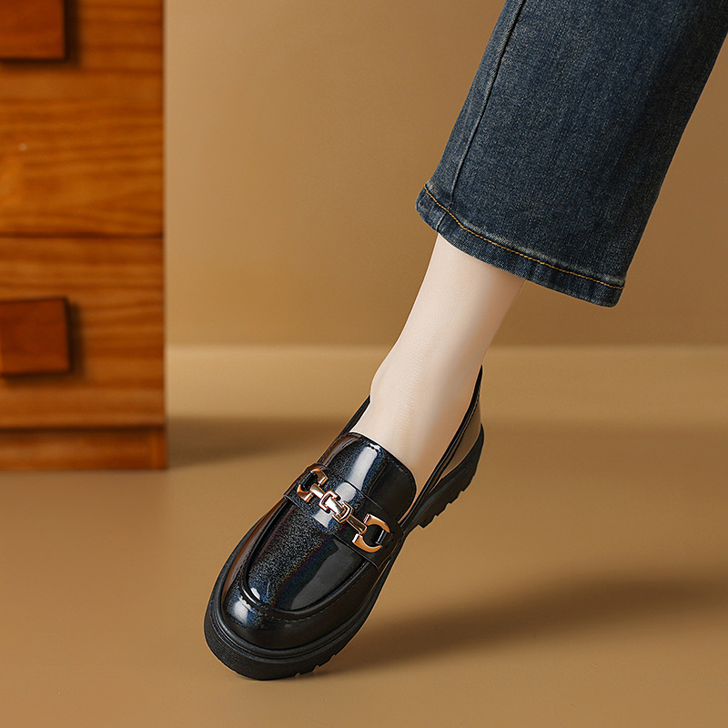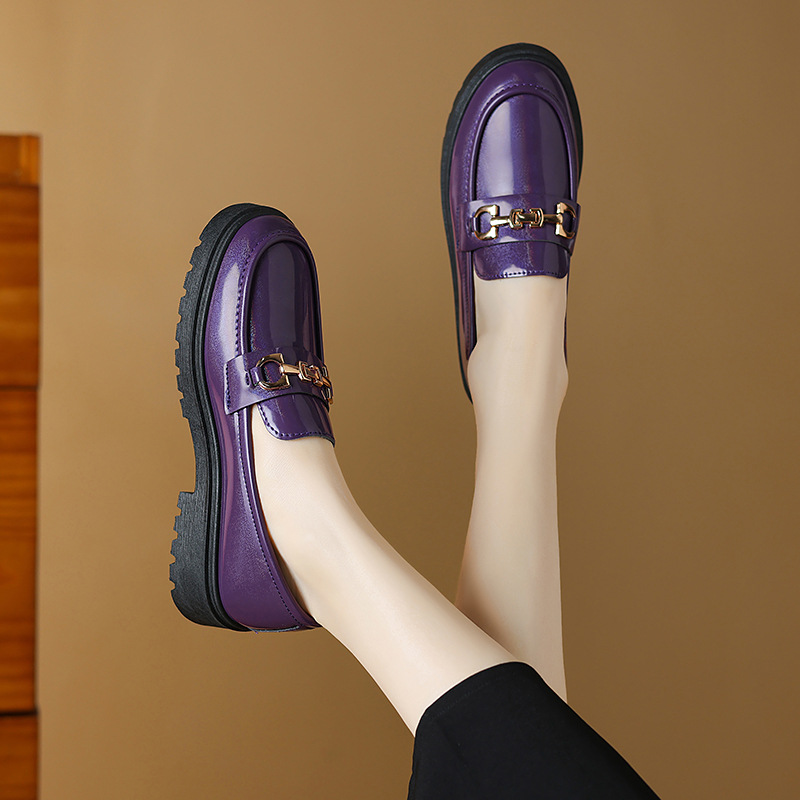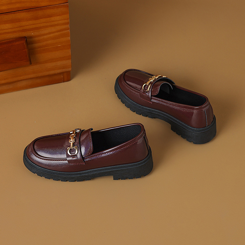 두꺼운 밑창 작은 가죽 신발 여성 영국 스타일 2024 봄과 가을 새로운 체인 복고풍 단일 레이어 신발 여성용 1 단계 로퍼