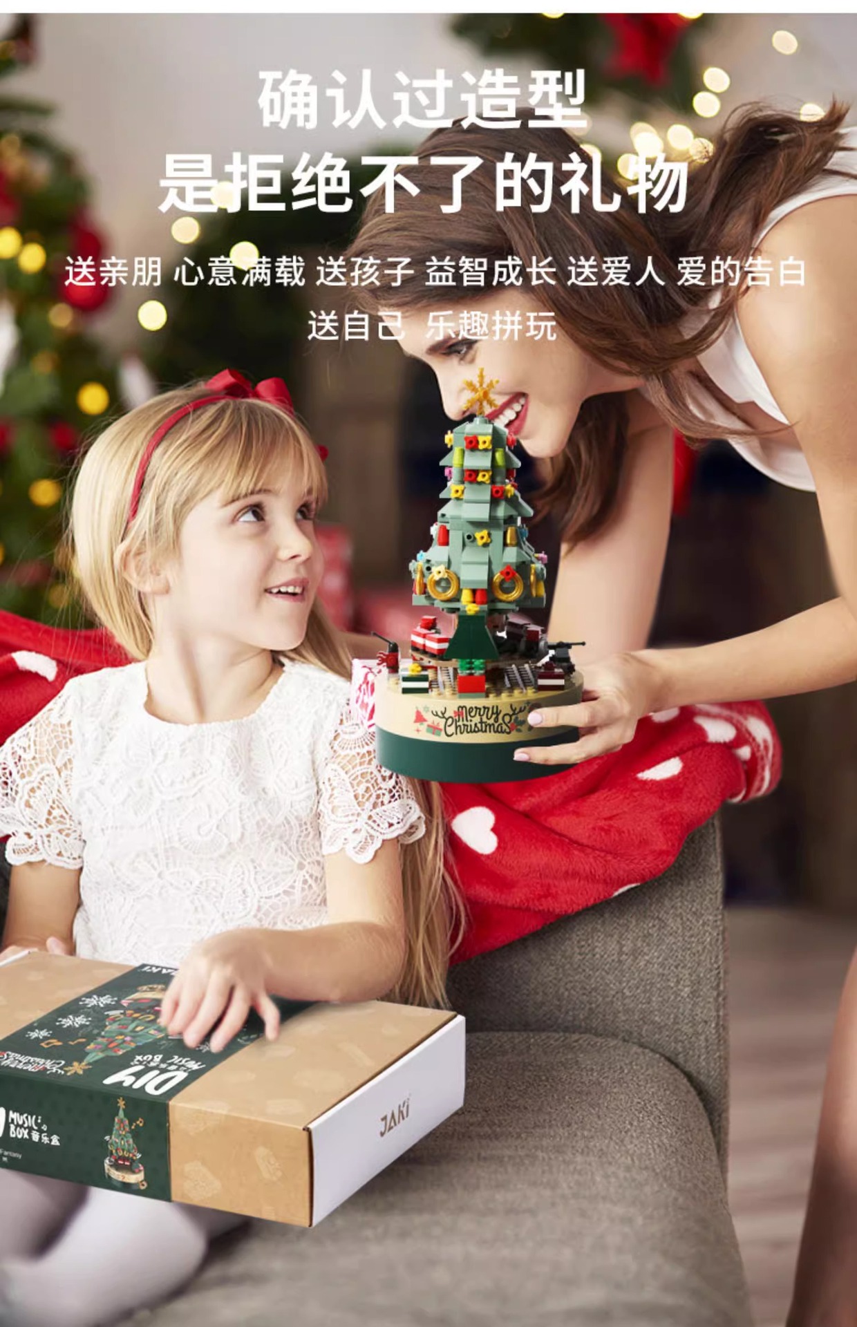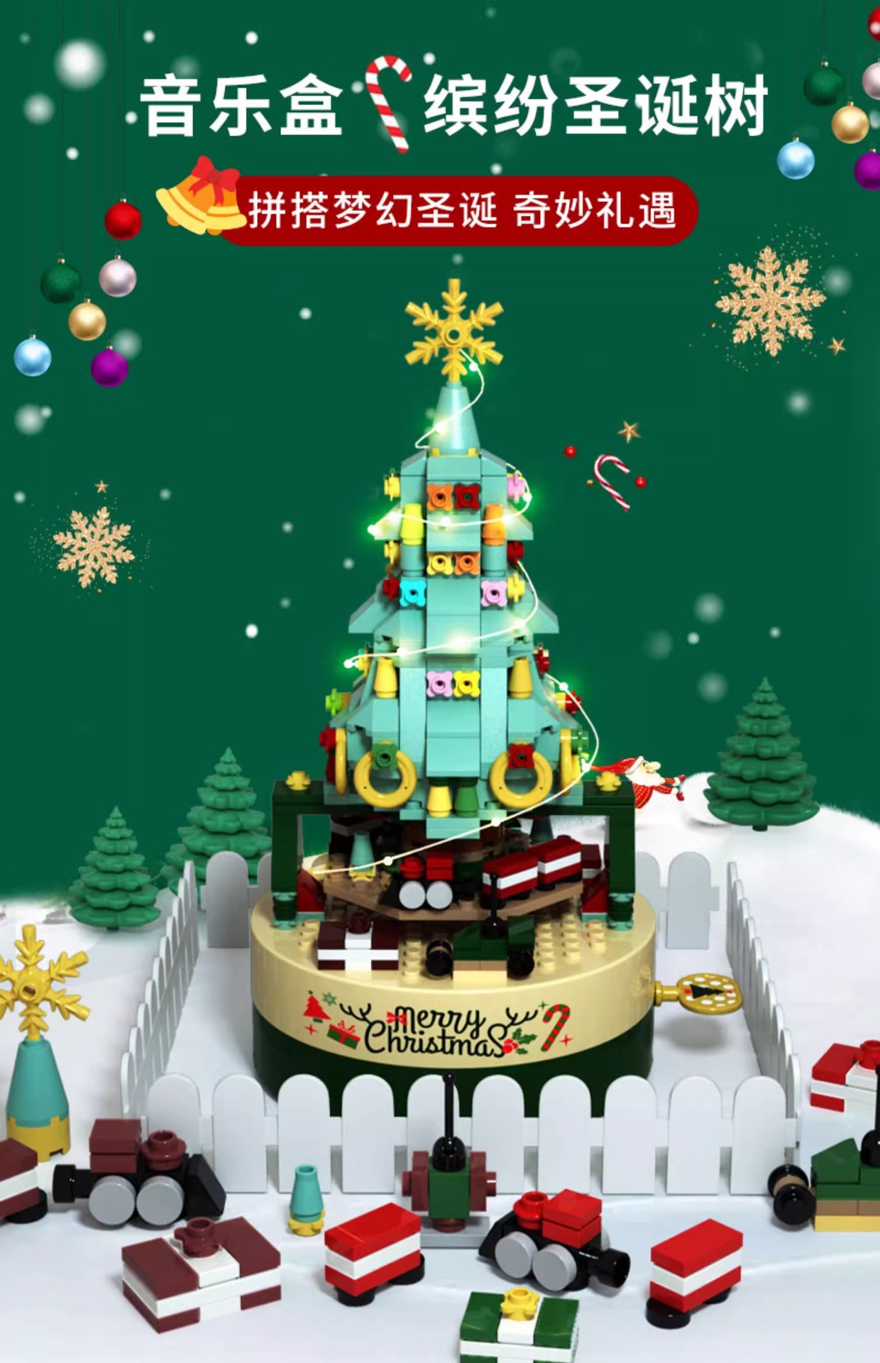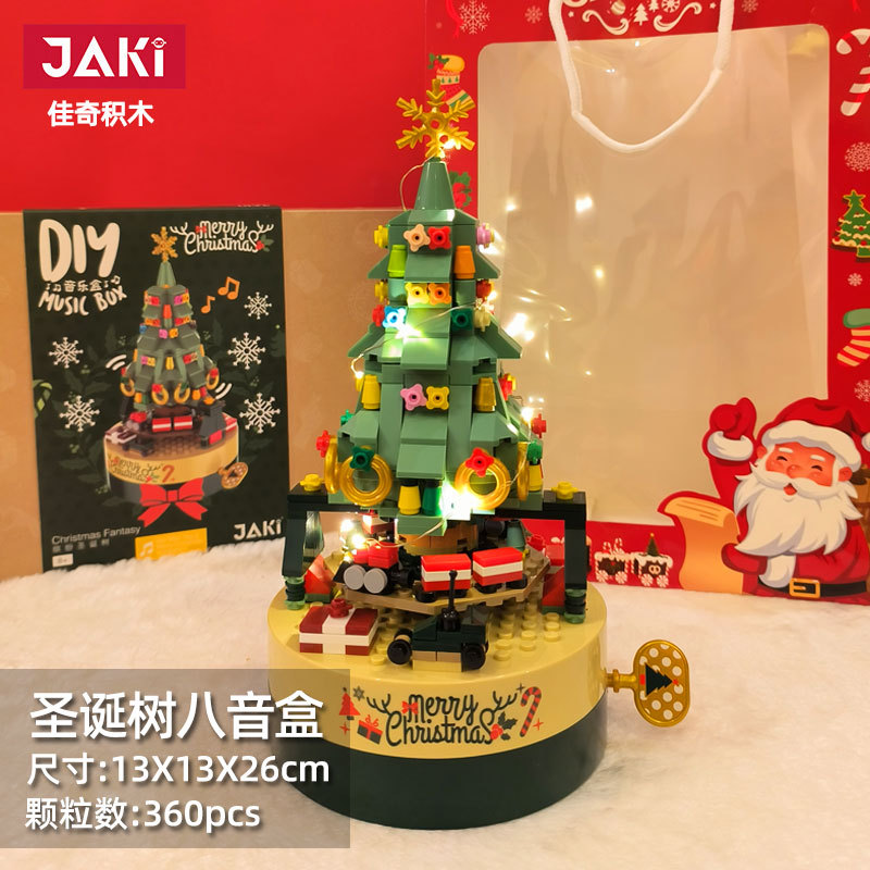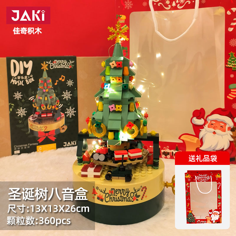 Jiaqi 크리스마스 트리 빌딩 블록 레고 크리스마스 빌딩 블록과 호환되는 크리스마스 뮤직 박스 조립 빌딩 블록 장난감 선물 장식품스토어 가기