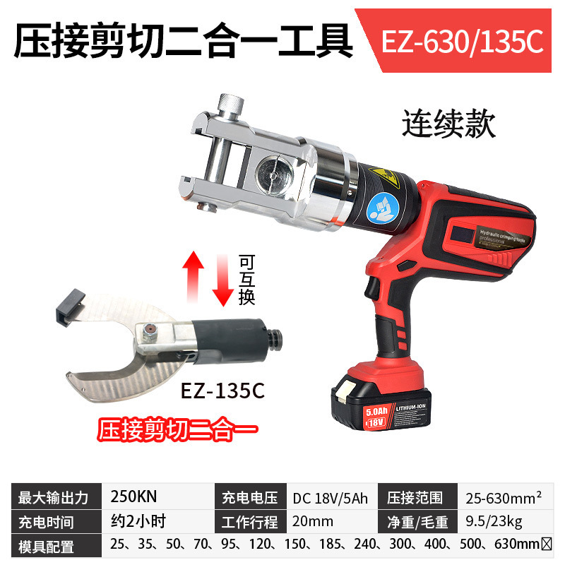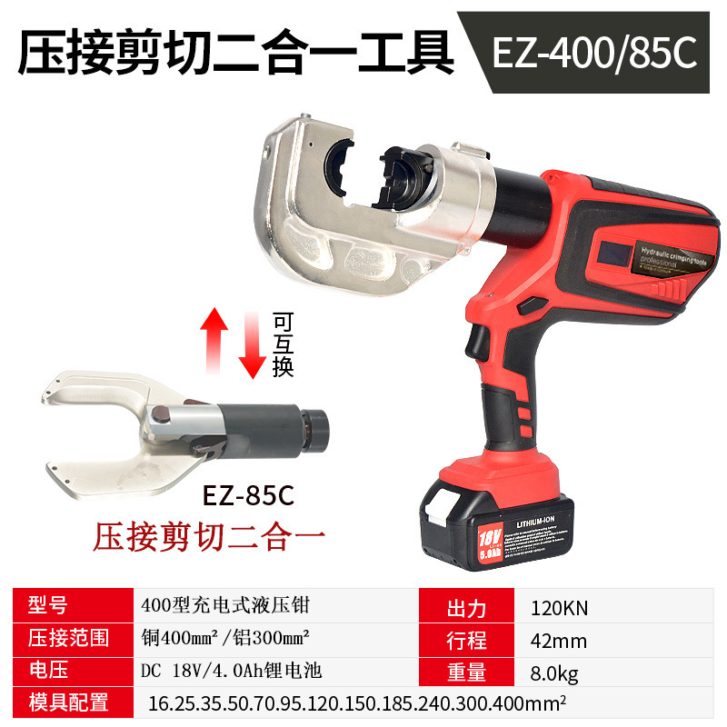 전기 유압 펜치 충전식 유압 라인 펜치 압착 펜치 다기능 2 대 1 구리 및 알루미늄 단자 절단 케이블 펜치