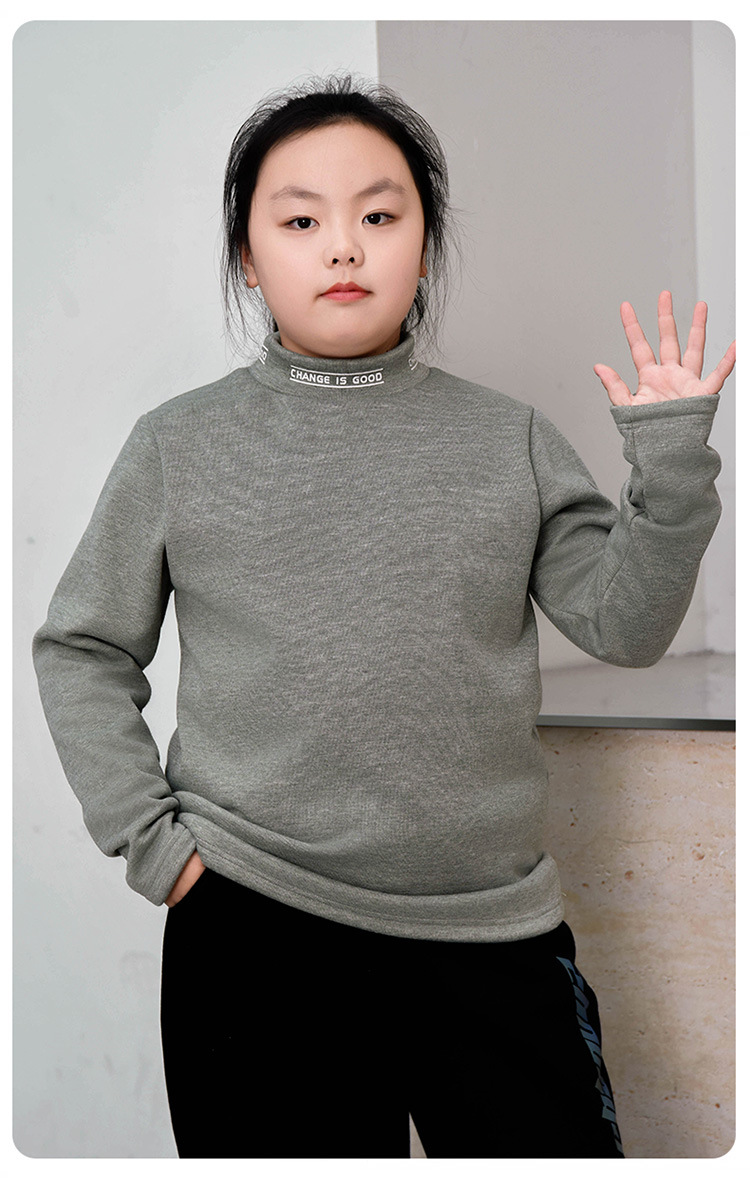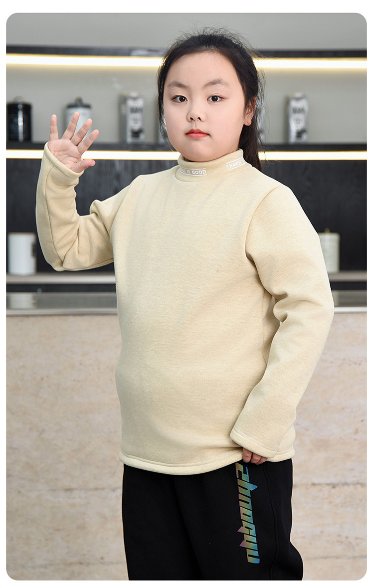 통통한 어린이 기모 기지 셔츠 가을과 겨울 소녀 반 터틀넥 내탑 큰 어린이와 소녀를위한 긴팔 따뜻한 옷