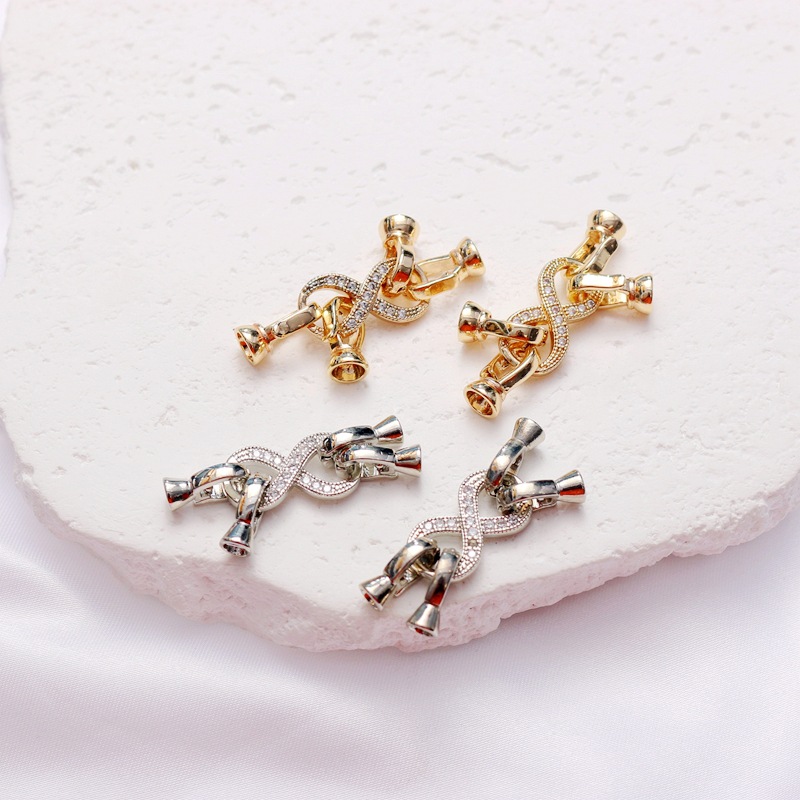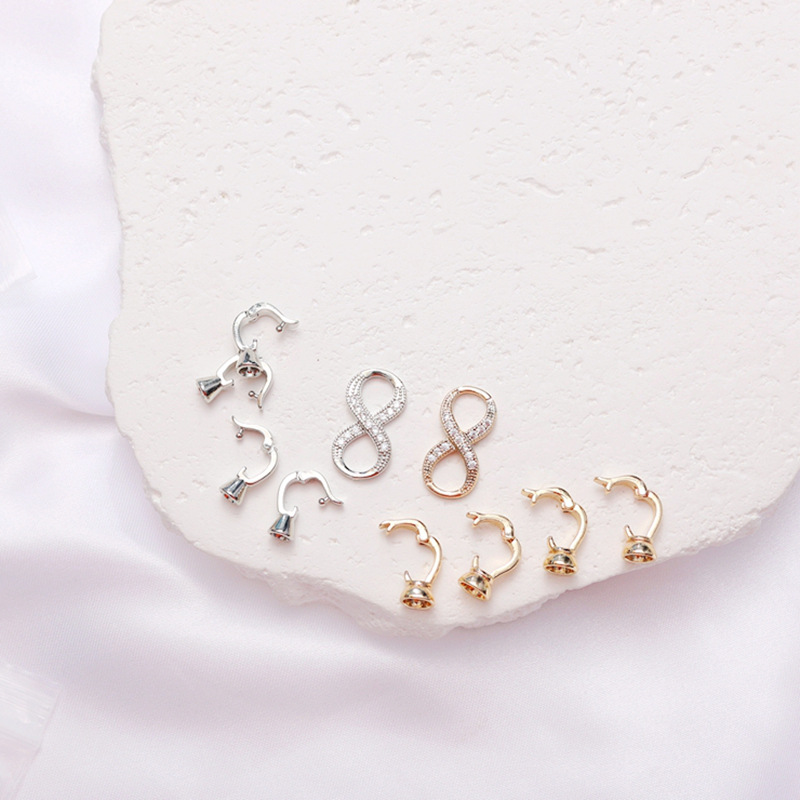 14K 컬러 가방 골드 상감 지르콘 8 단어 목걸이 팔찌 진주 4 버클 헤드 링크 버클 헤드 DIY 쥬얼리 액세서리