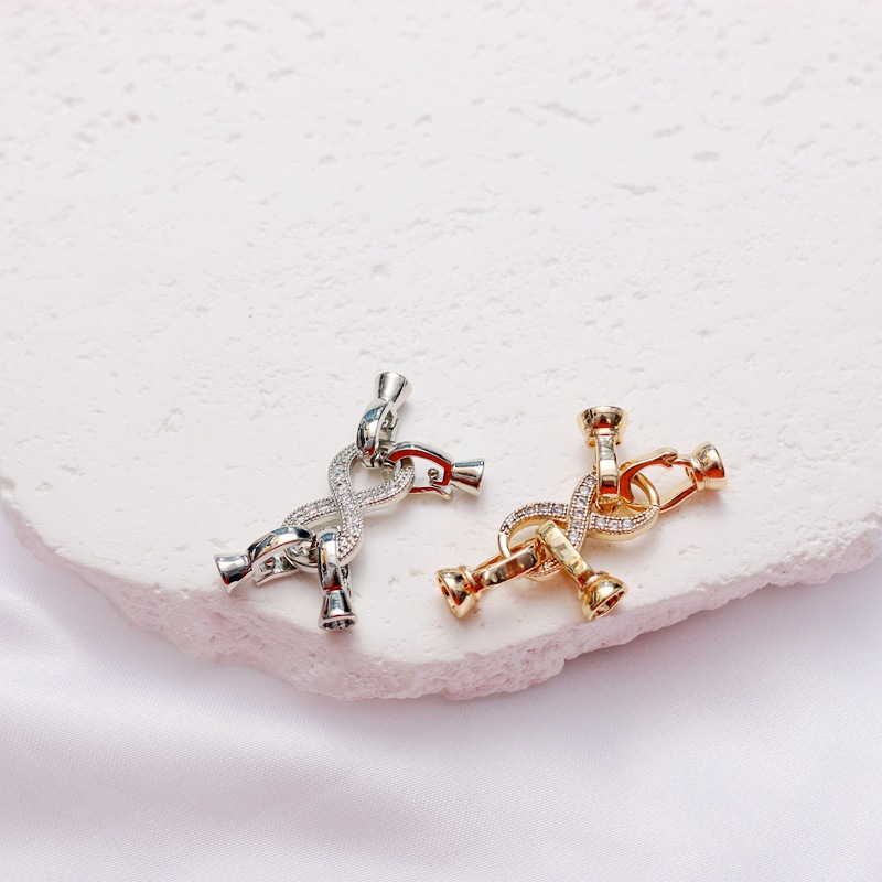 14K镶嵌锆石8字项链手链珍珠链接扣diy饰品配件