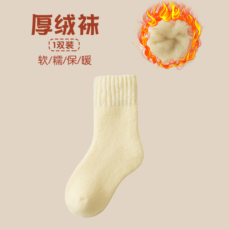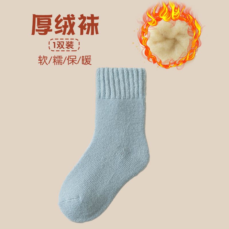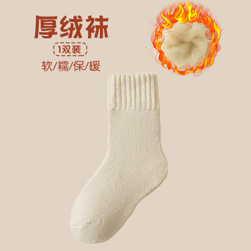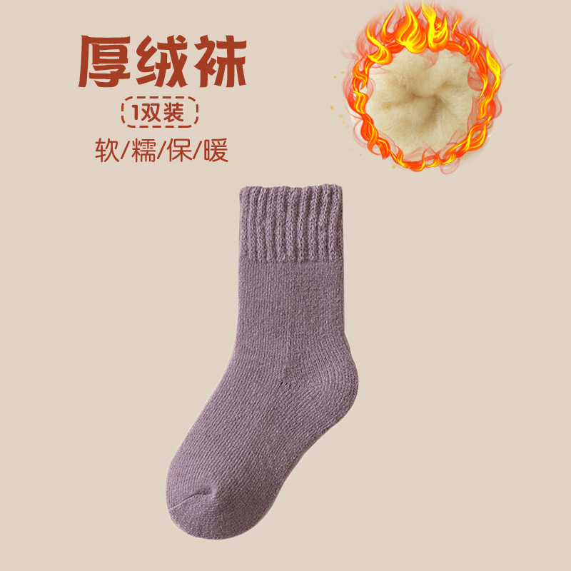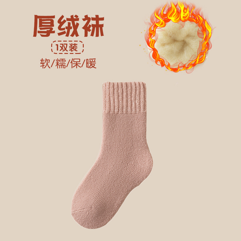 소녀 양말 겨울 기모 두꺼운 어린이 따뜻한 벨벳 바닥 양말 겨울 솔리드 컬러 따뜻한 서양식 소녀 미드 튜브 양말