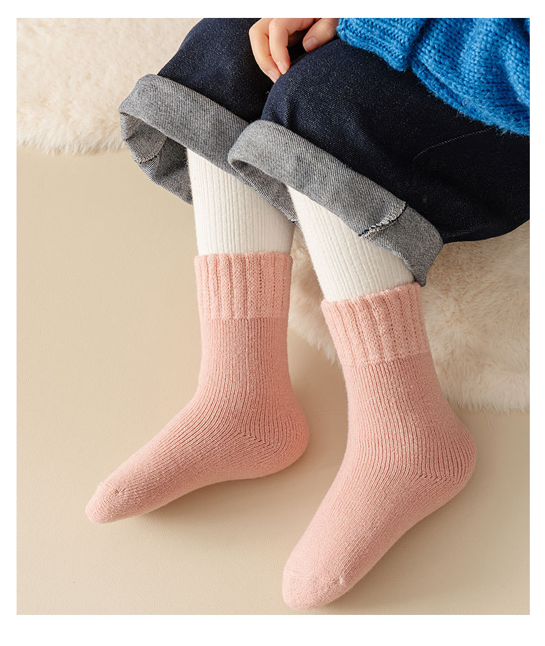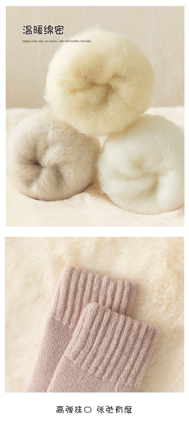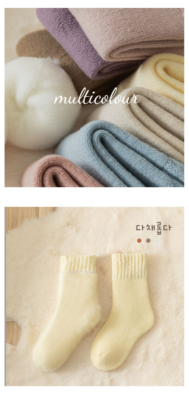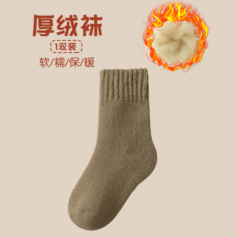소녀 양말 겨울 기모 두꺼운 어린이 따뜻한 벨벳 바닥 양말 겨울 솔리드 컬러 따뜻한 서양식 소녀 미드 튜브 양말