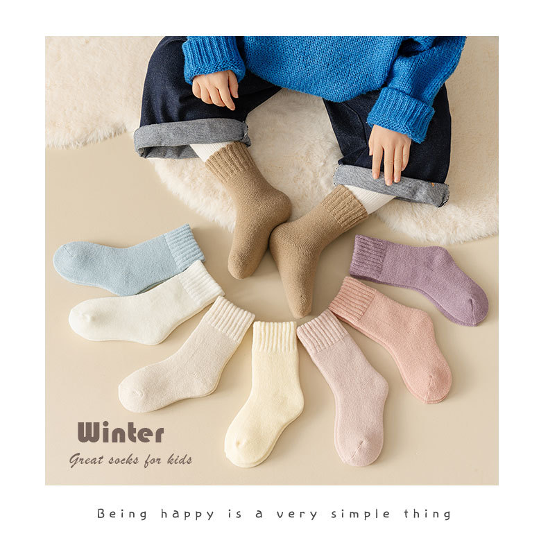 소녀 양말 겨울 기모 두꺼운 어린이 따뜻한 벨벳 바닥 양말 겨울 솔리드 컬러 따뜻한 서양식 소녀 미드 튜브 양말스토어 가기