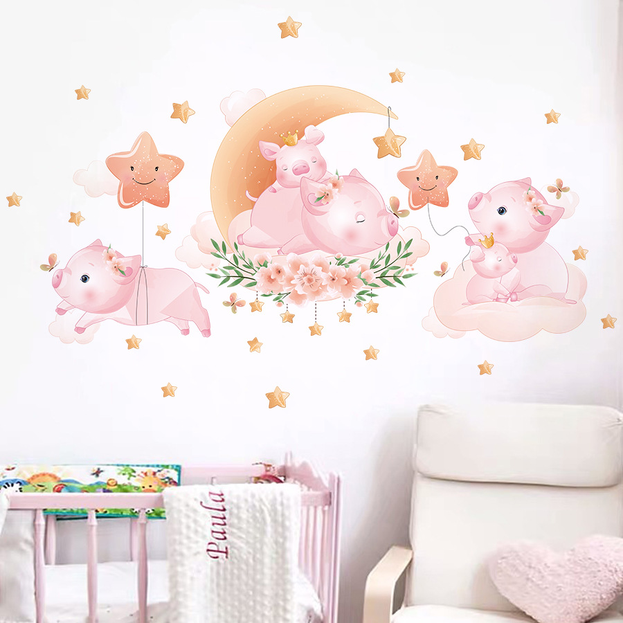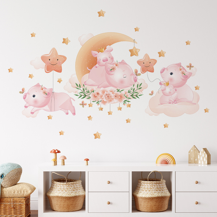 만화 핑크 귀여운 돼지 자기 접착 벽 스티커 소녀 스타일 어린이 방 배경 벽 장식 스티커 BR3258E스토어 가기