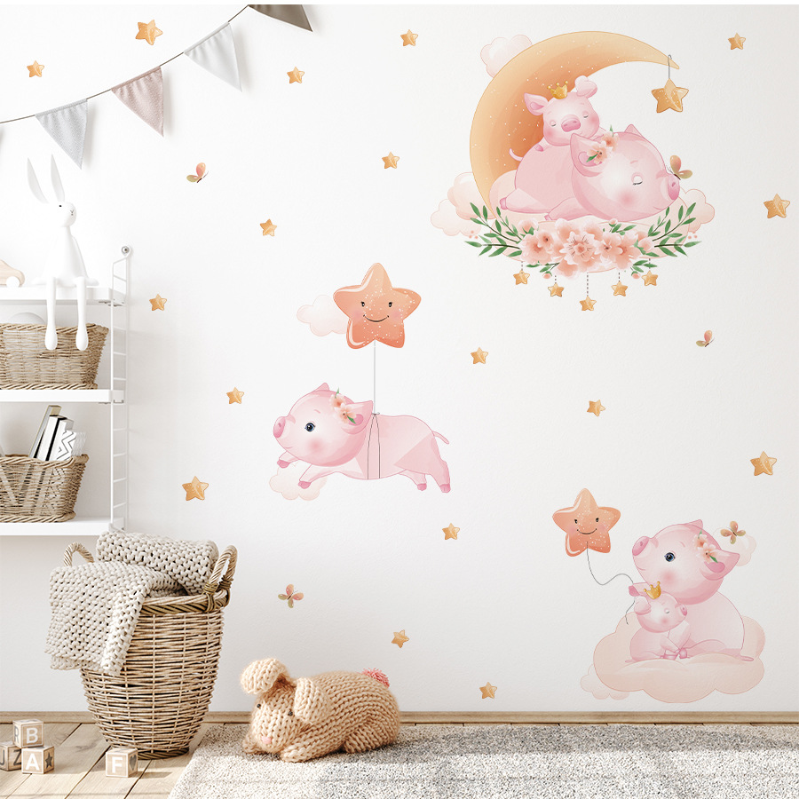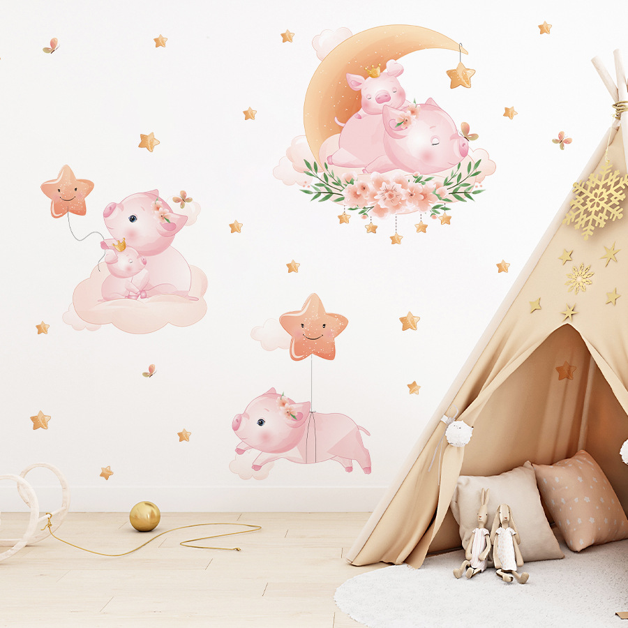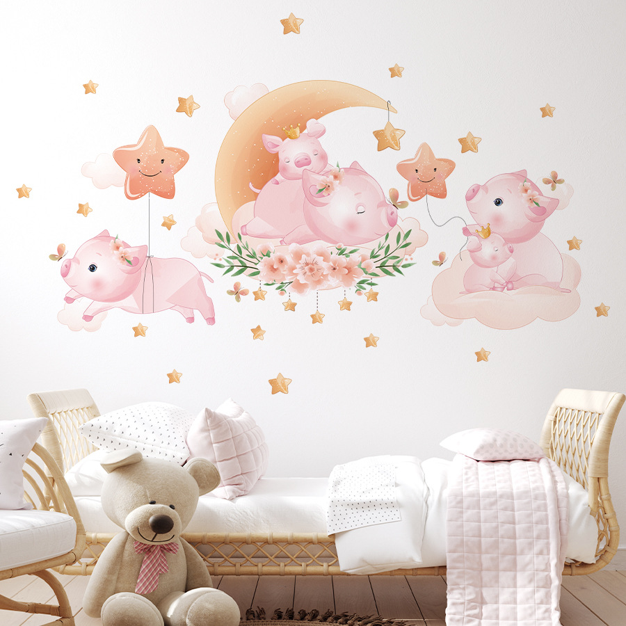만화 핑크 귀여운 돼지 자기 접착 벽 스티커 소녀 스타일 어린이 방 배경 벽 장식 스티커 BR3258E
