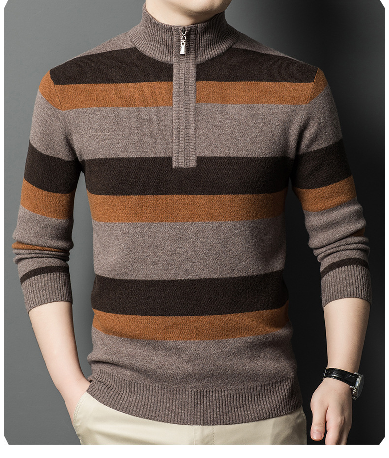 양모 스웨터 남자 가을과 겨울 새로운 도착 중년 패셔너블 하프 터틀넥 자카드 니트 울 두꺼운 남성용 올 매치 스웨터