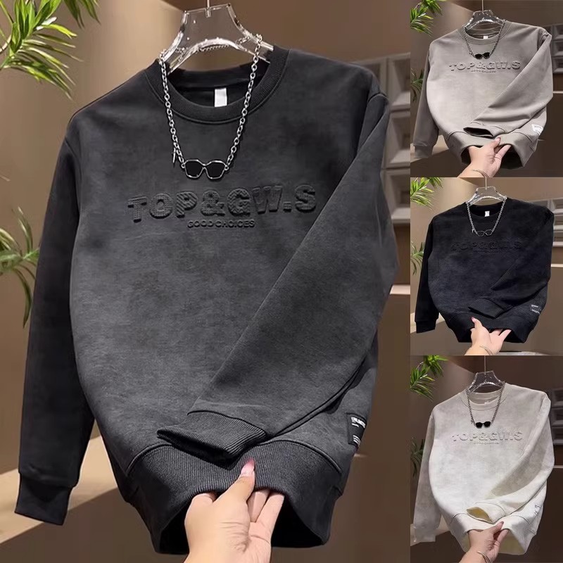 넥타이 염색 스웨터 남자 가을과 겨울 패셔너블 라운드 넥 내베이스 셔츠 남자의 가벼운 럭셔리 하이 엔드 기모 탑스토어 가기