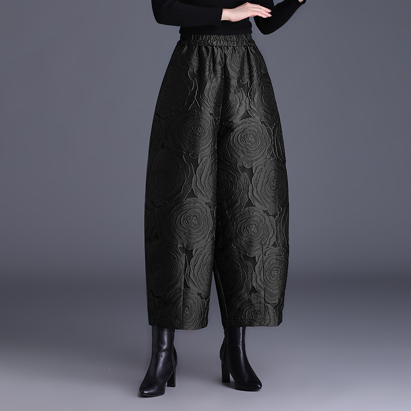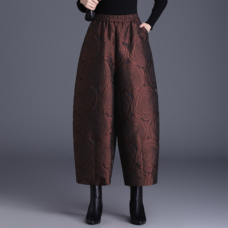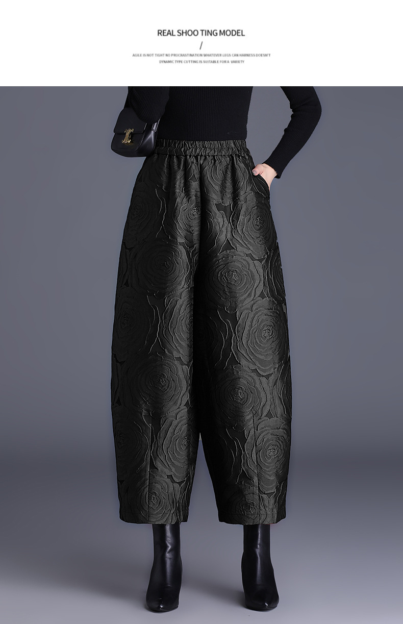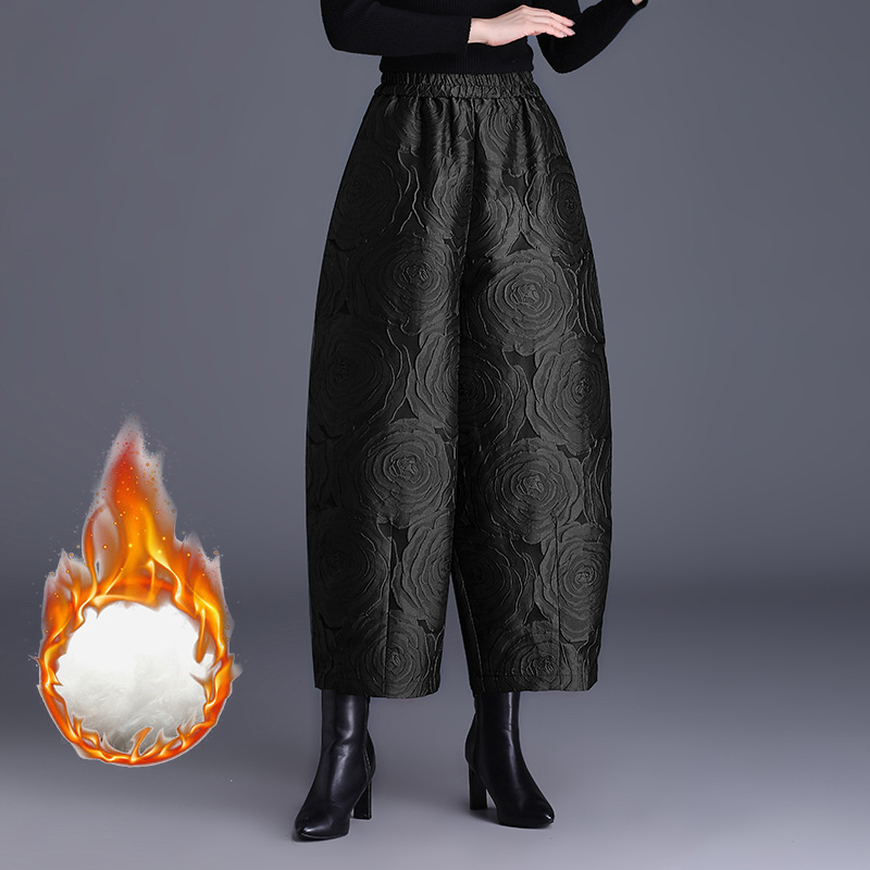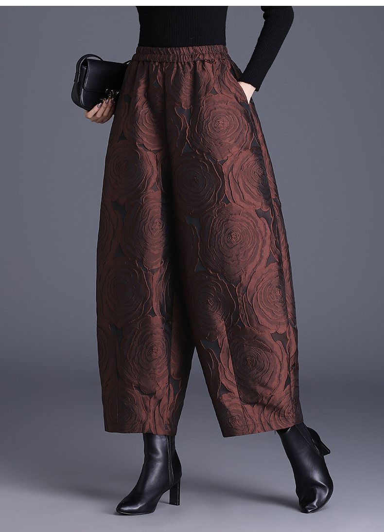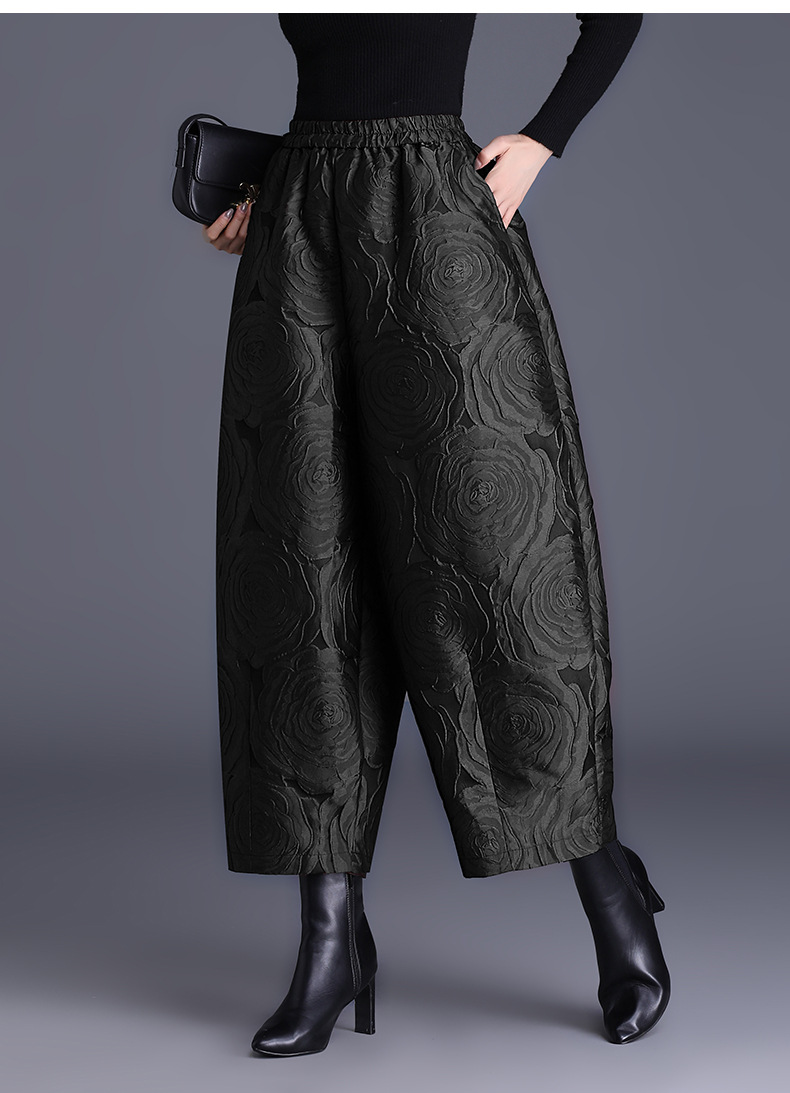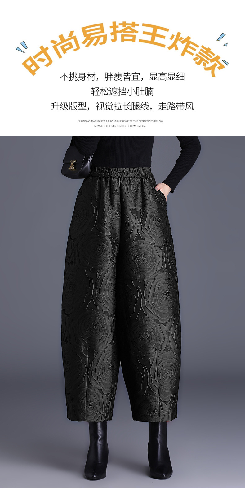 2024 새로운 중국 양각 Melaleuca 장미 슬림 무거운 자카드 면 바지 플러스 사이즈 느슨한 넓은 다리 바지