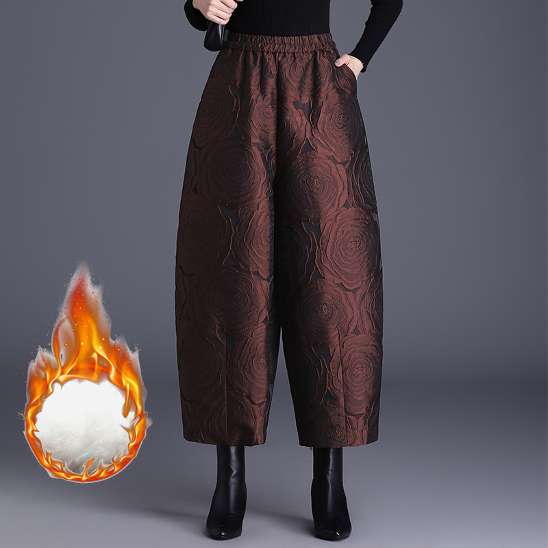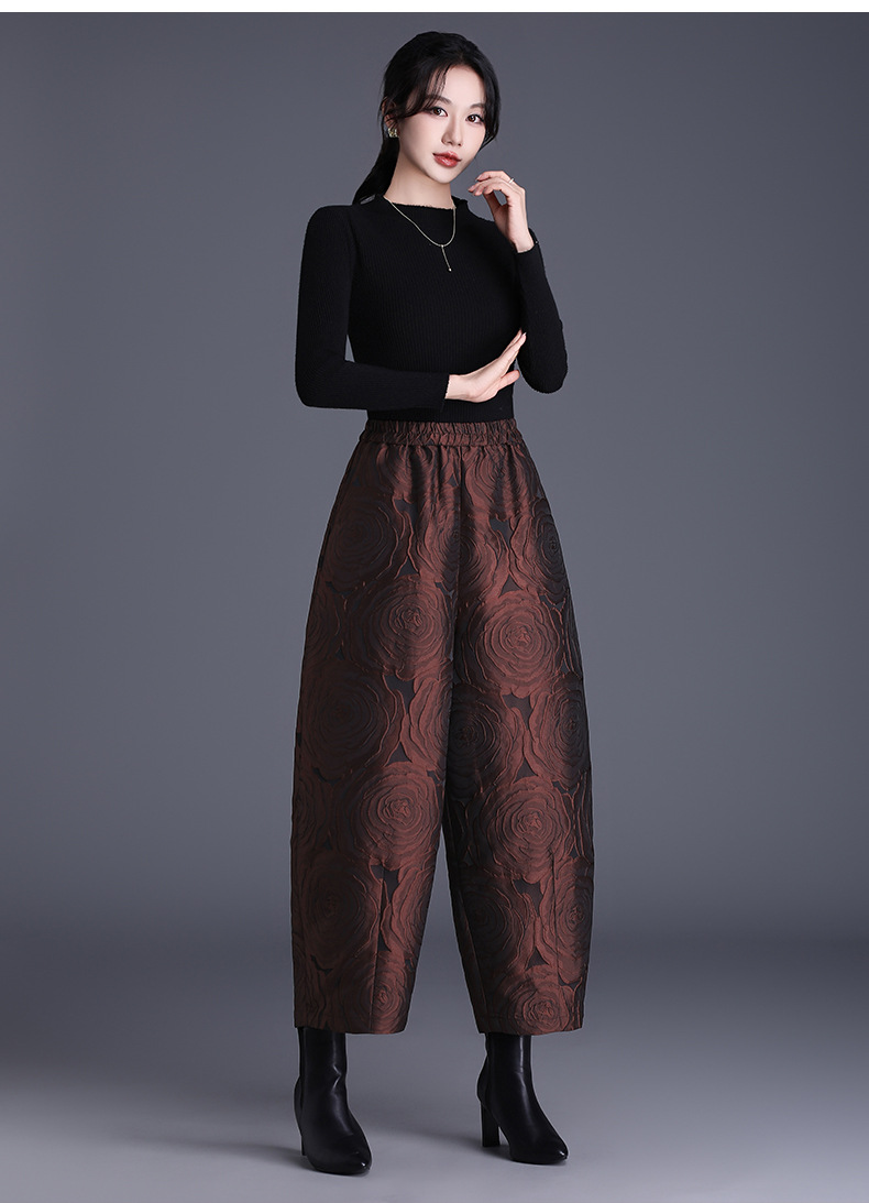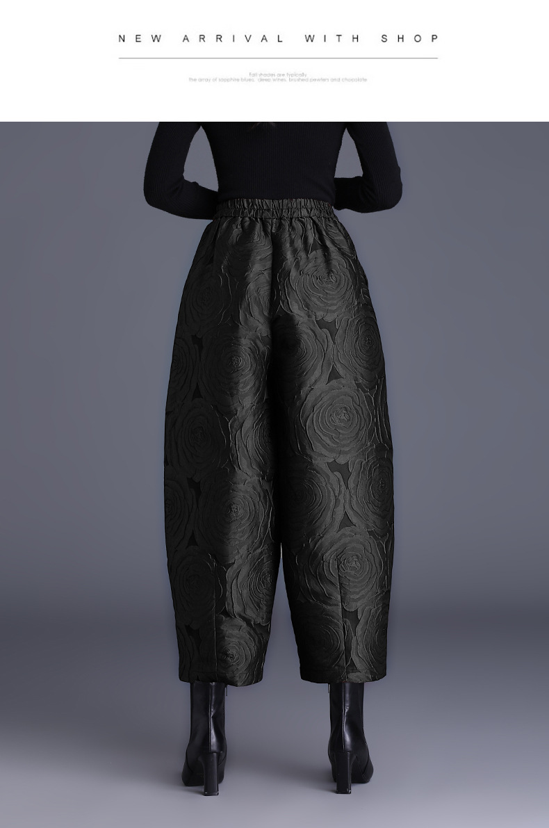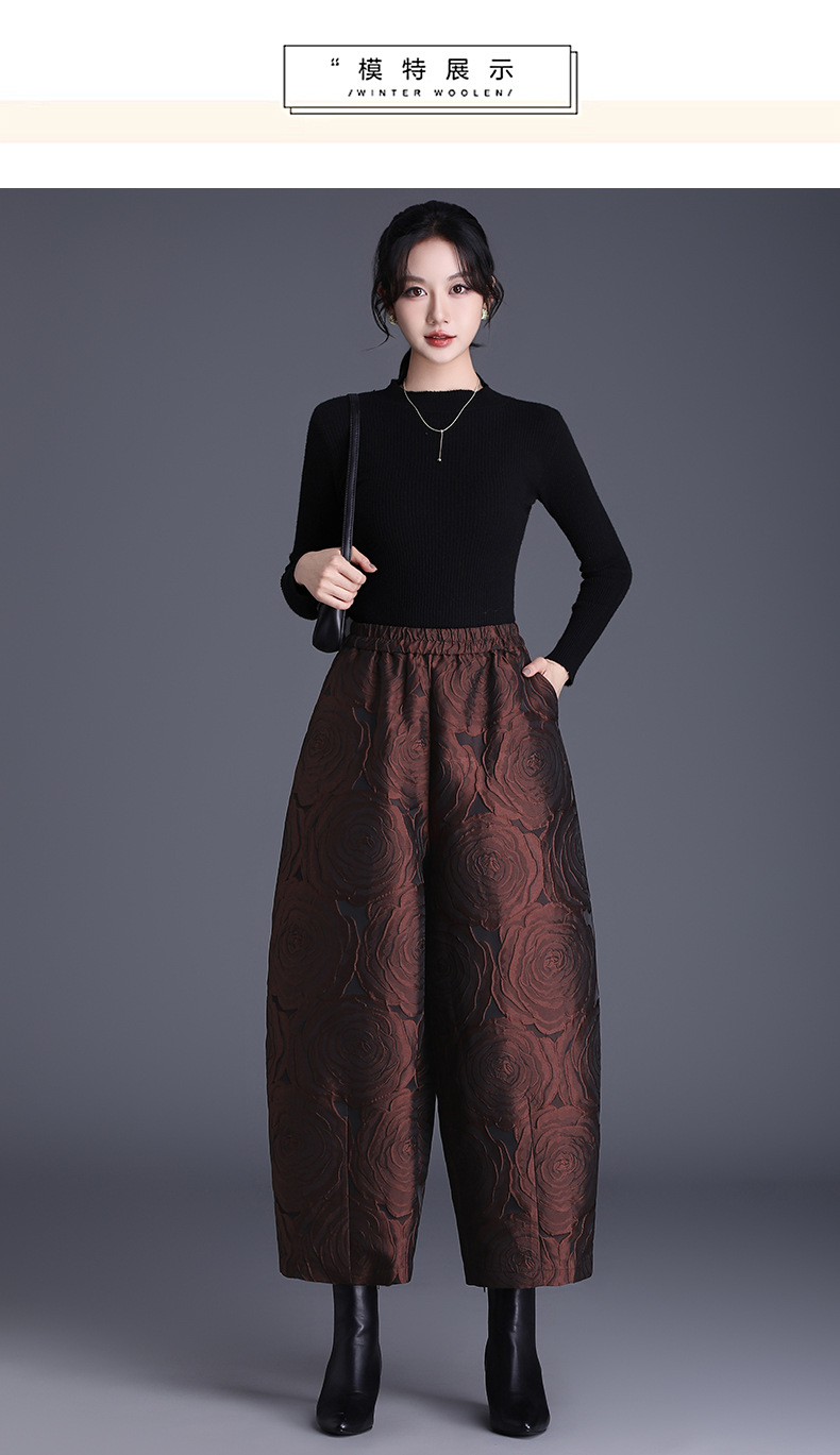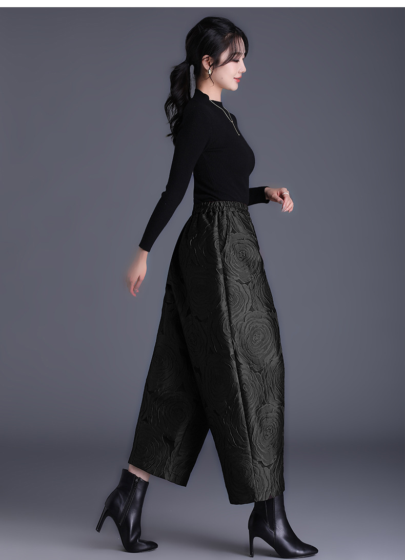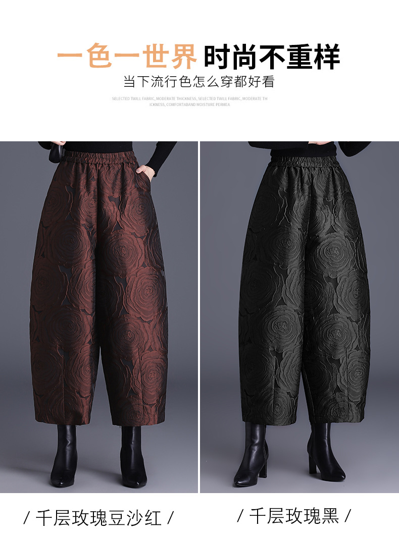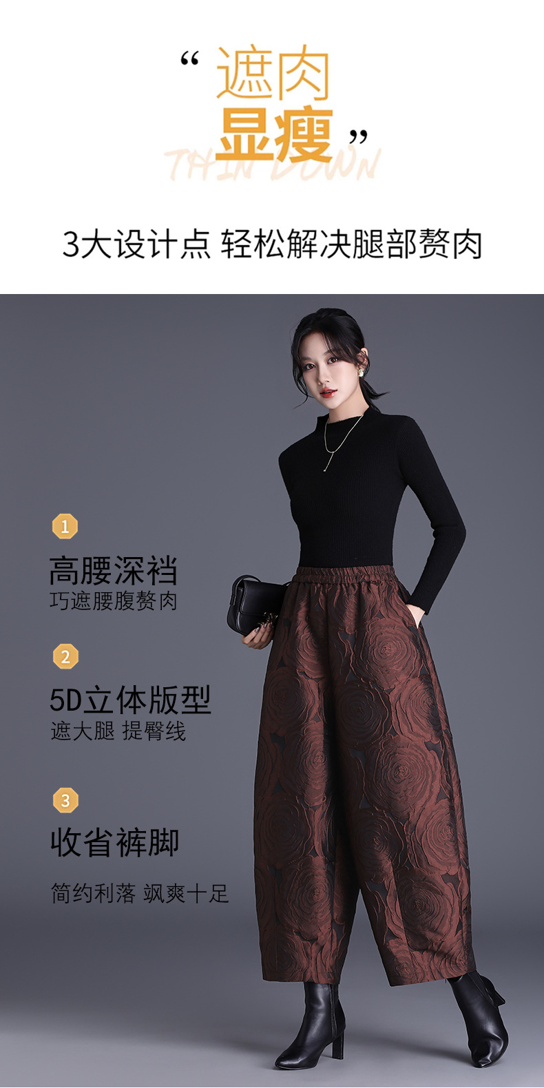 2024 새로운 중국 양각 Melaleuca 장미 슬림 무거운 자카드 면 바지 플러스 사이즈 느슨한 넓은 다리 바지