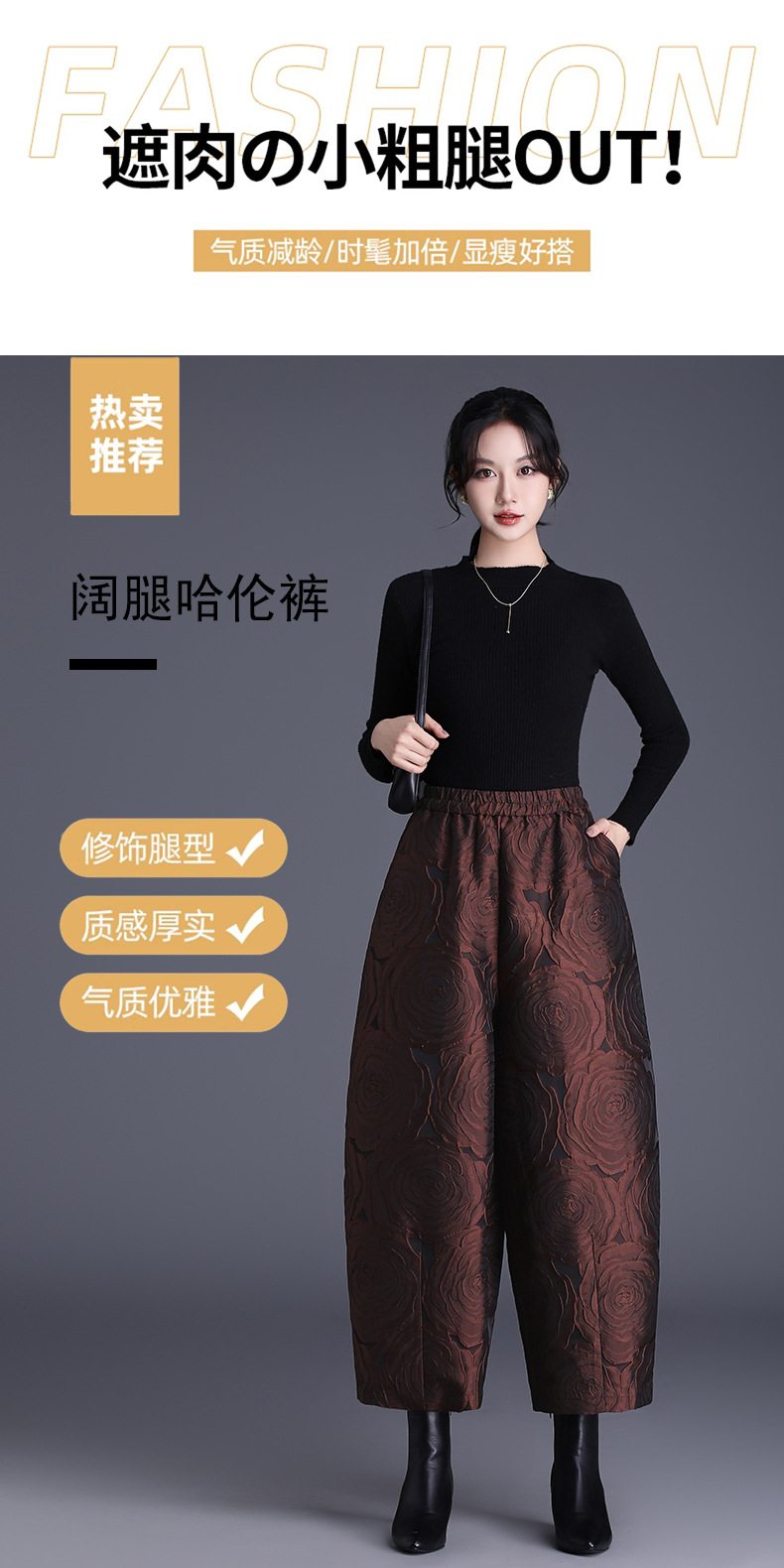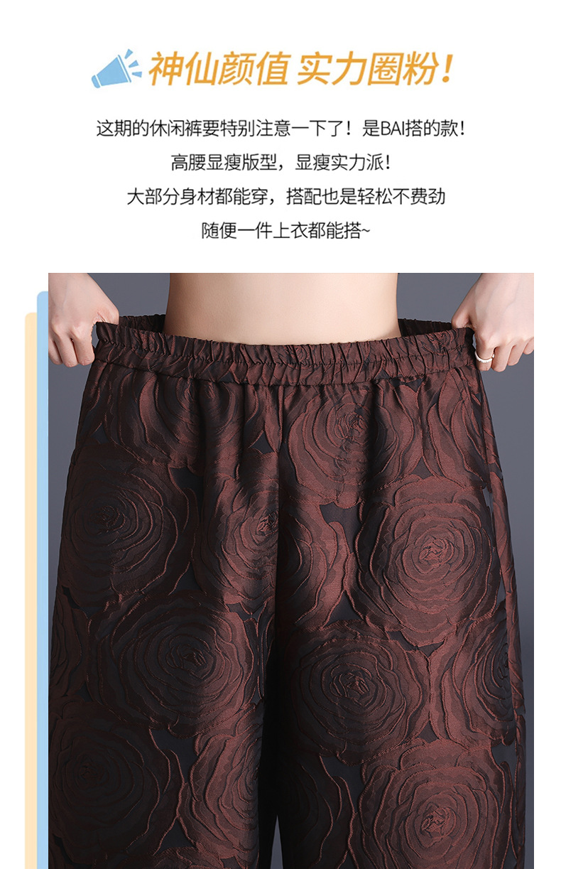 2024 새로운 중국 양각 Melaleuca 장미 슬림 무거운 자카드 면 바지 플러스 사이즈 느슨한 넓은 다리 바지스토어 가기