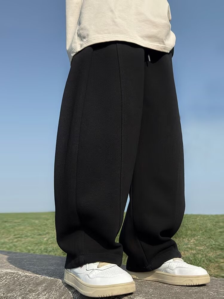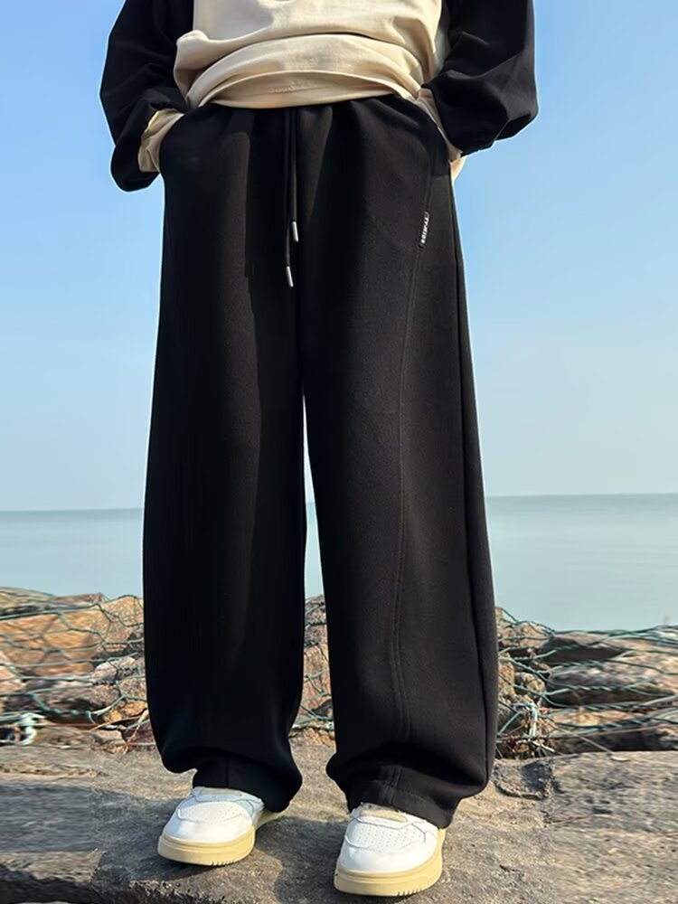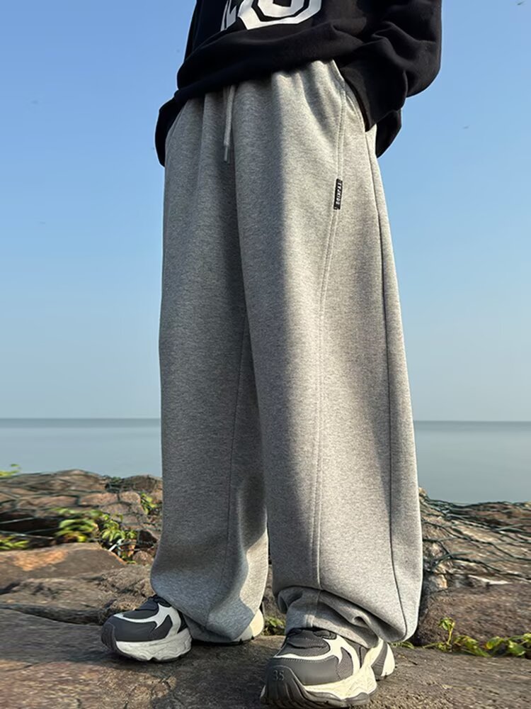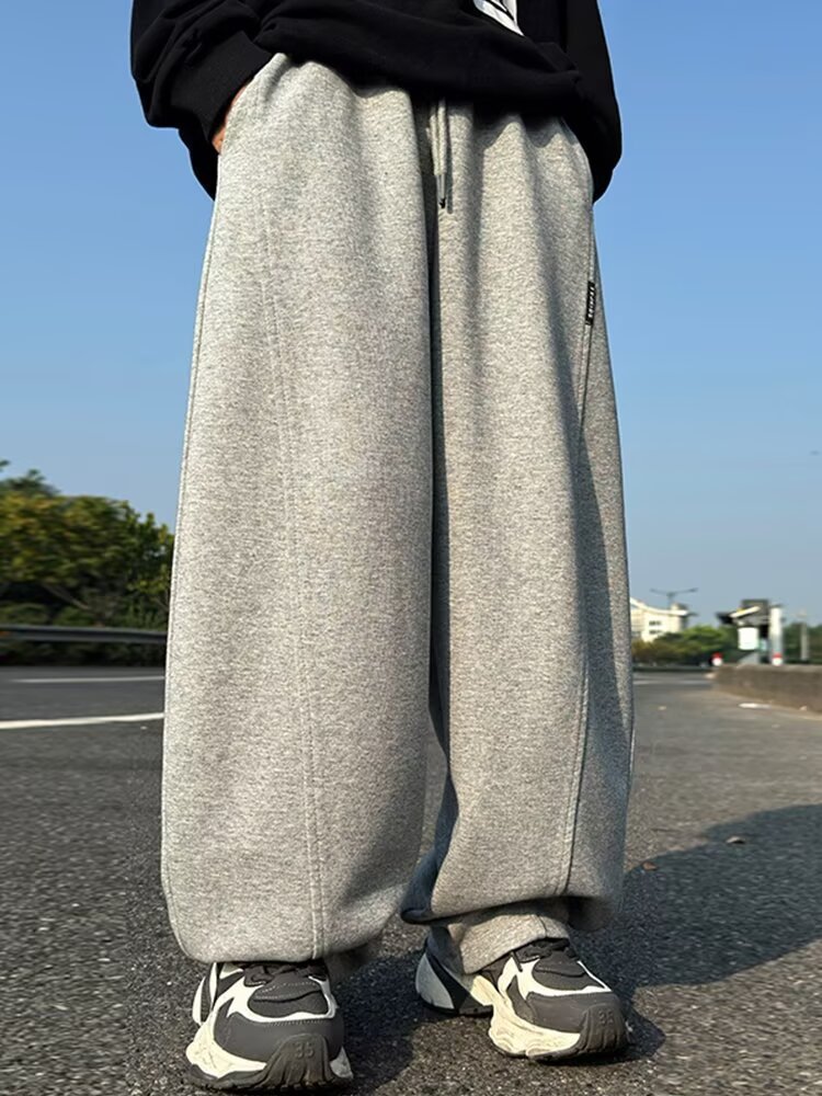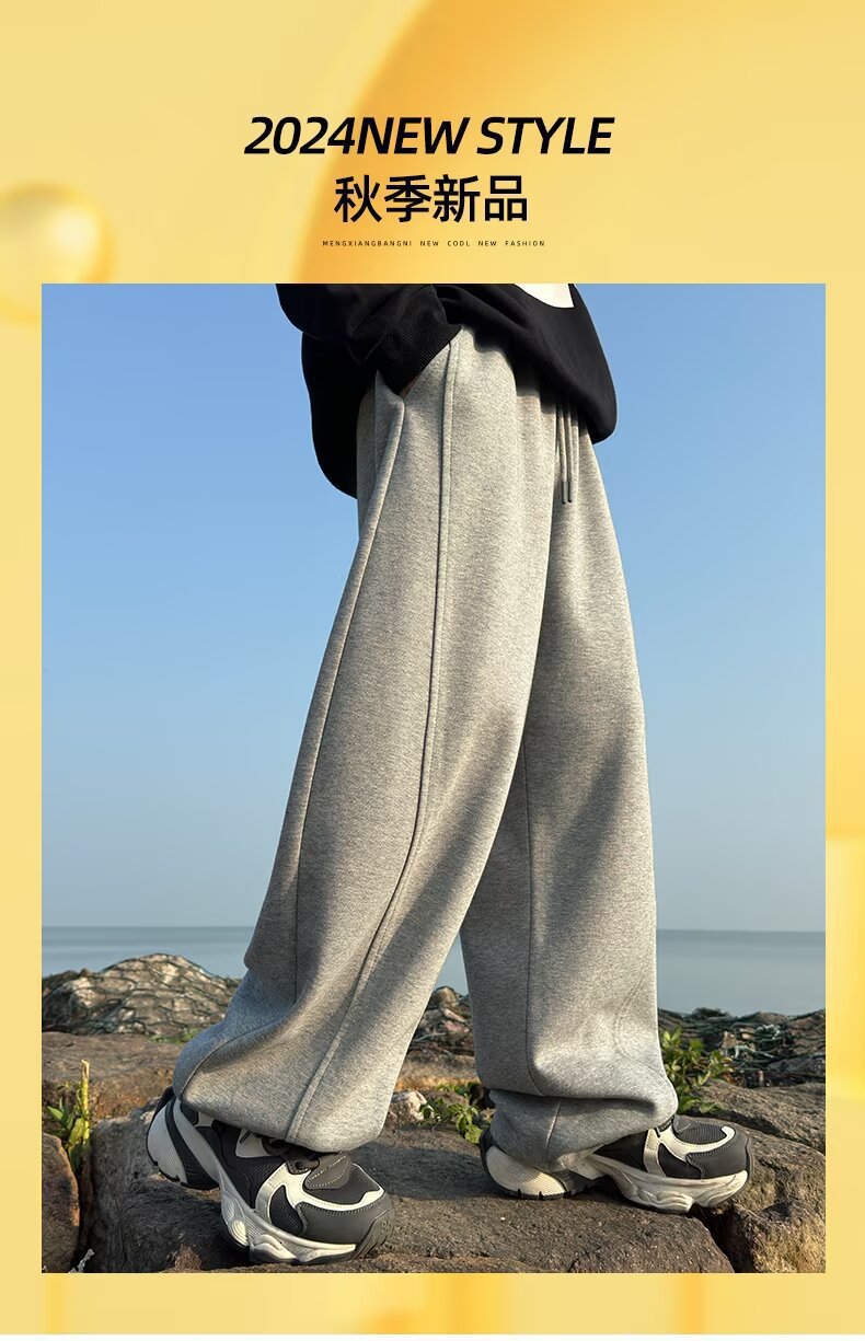소년 바지 기모 2024 가을 겨울 새로운 어린이 스포츠 바지 큰 소년 느슨한 넓은 다리 유행 바지