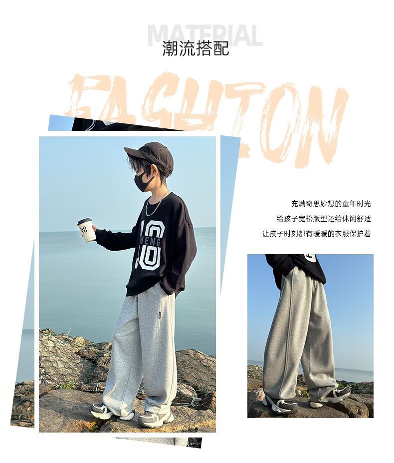 소년 바지 기모 2024 가을 겨울 새로운 어린이 스포츠 바지 큰 소년 느슨한 넓은 다리 유행 바지스토어 가기