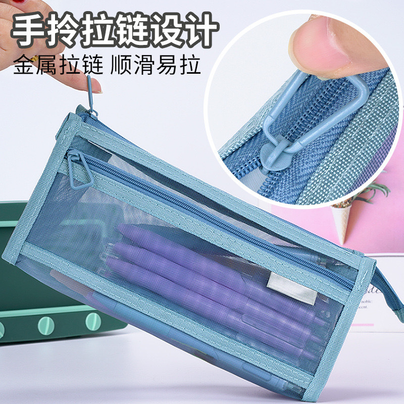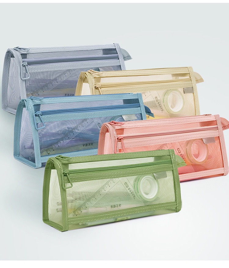 투명 메쉬 더블 레이어 연필 가방 어린이 남녀 2024 새로운 초등 학생 대용량 높은 색상 가치 간단한 문구 가방스토어 가기