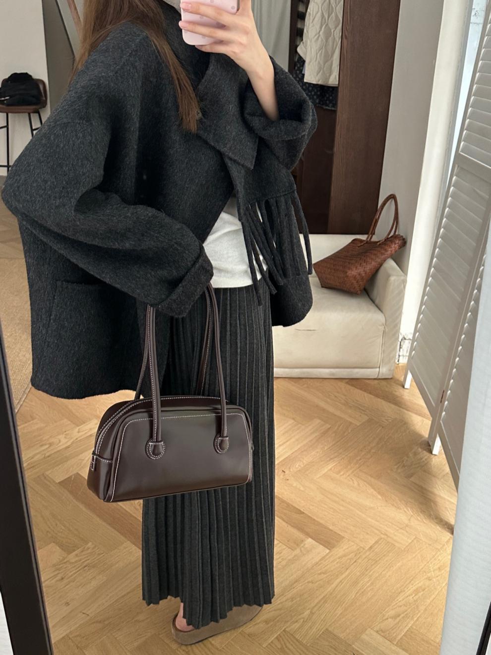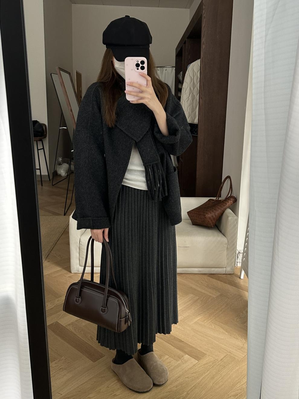 핏이 매우 완벽합니다! 두꺼운 니트 플리츠 스커트 여성용 2025 가을 겨울 신상 한국 스타일 다용도 슬림핏 스커트 트렌디스토어 가기