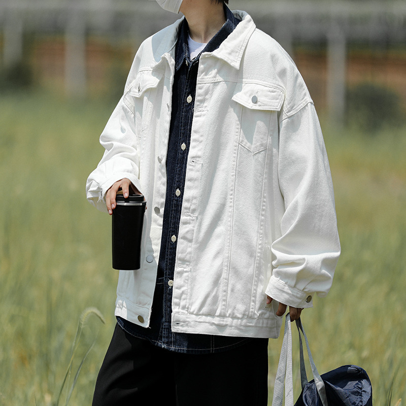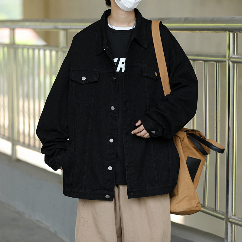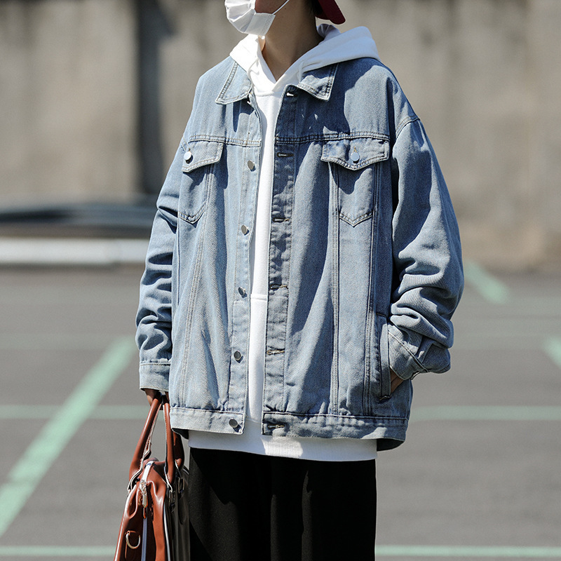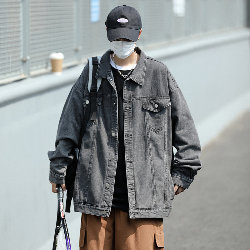 2022 봄 가을 데님 재킷 남자 홍콩 스타일 Ins 유행 학생 느슨한 한국 스타일 유행 브랜드 툴링 재킷