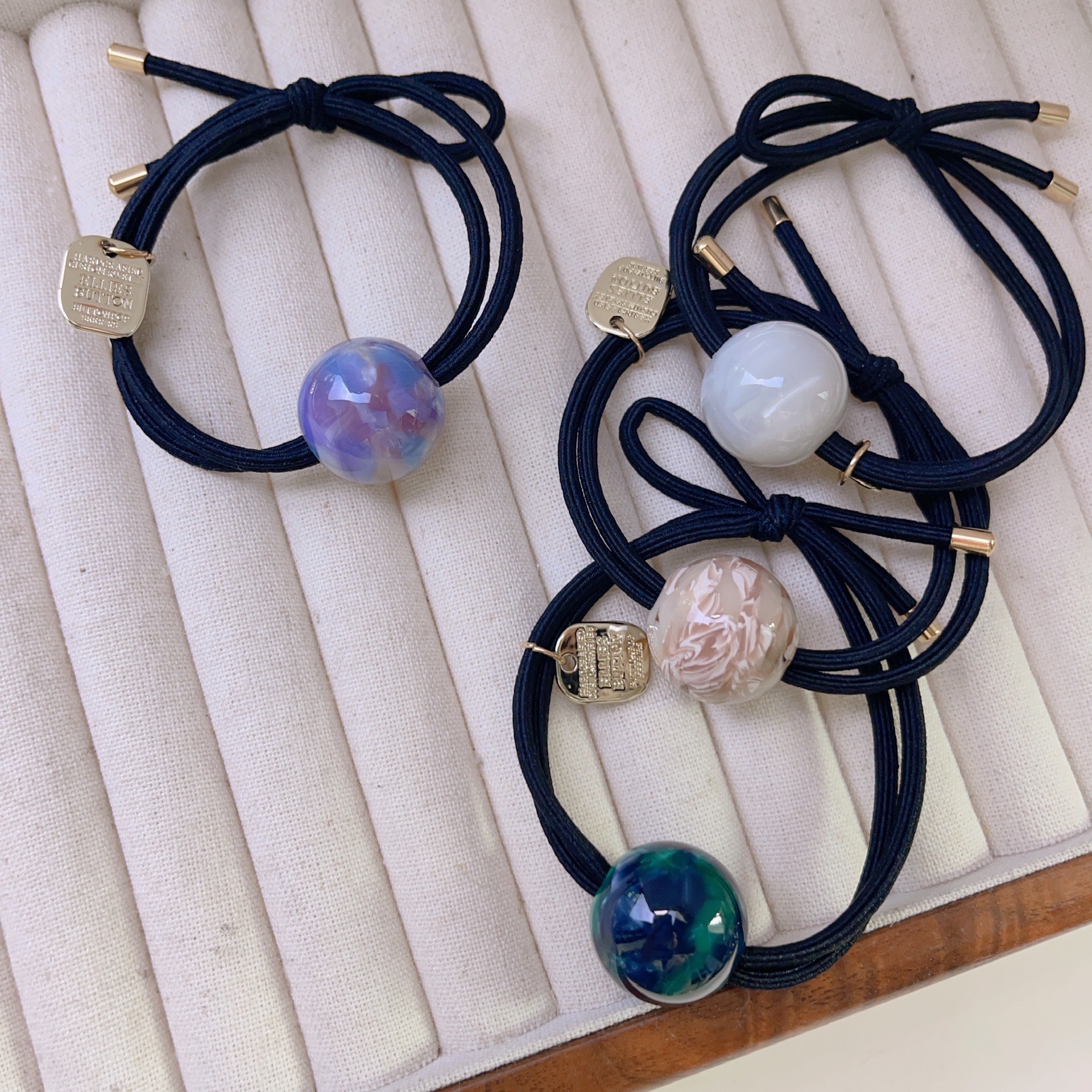 한국 스타일 우아한 라운드 볼 헤어 로프 높은 탄성 더블 스트랜드 콧물 Acetic 헤어 로프 작은 골드 볼 헤드 고무 텐더 여성용 헤드웨어