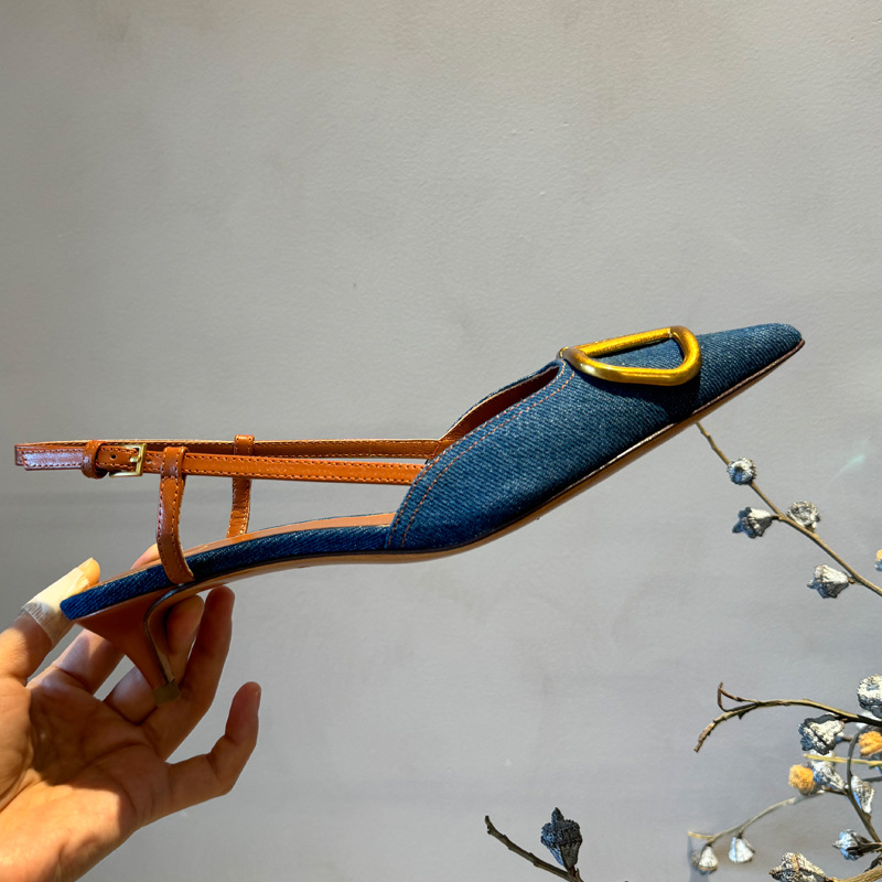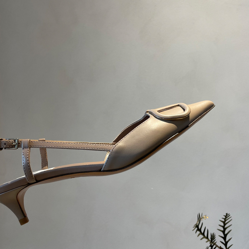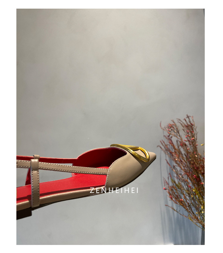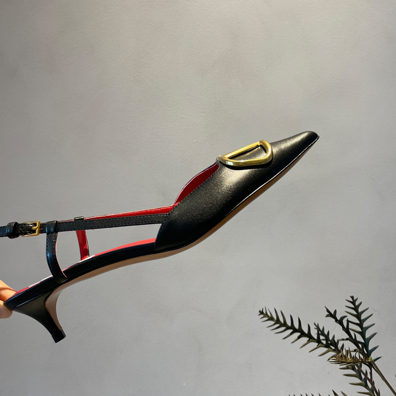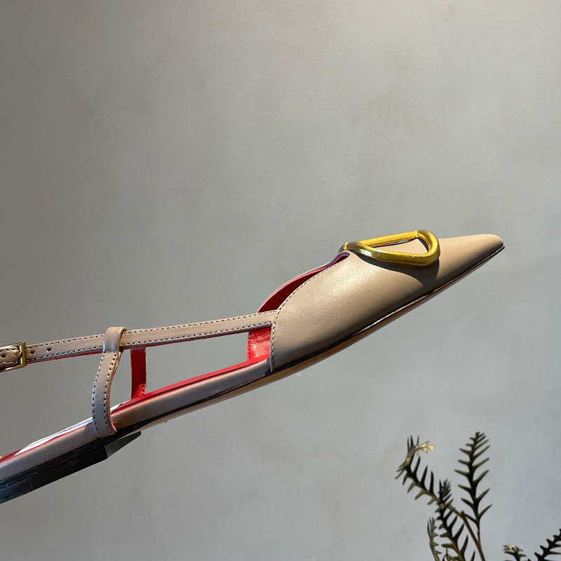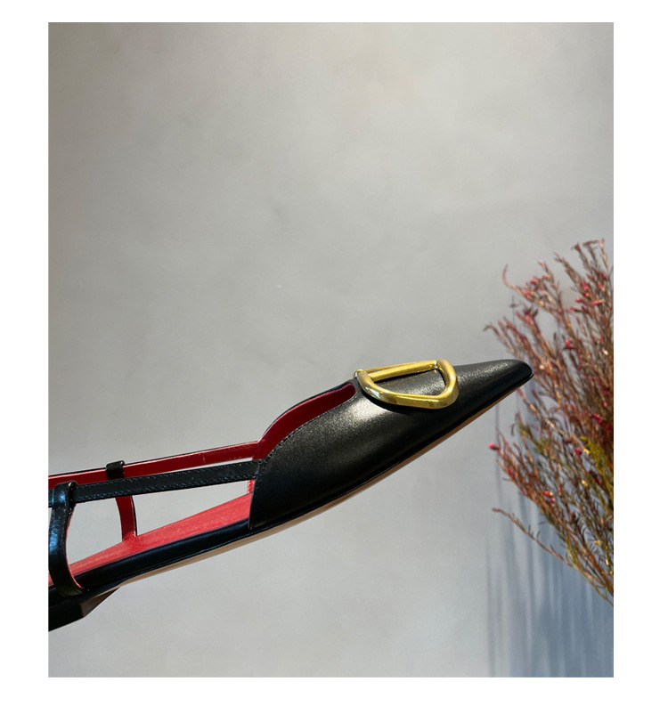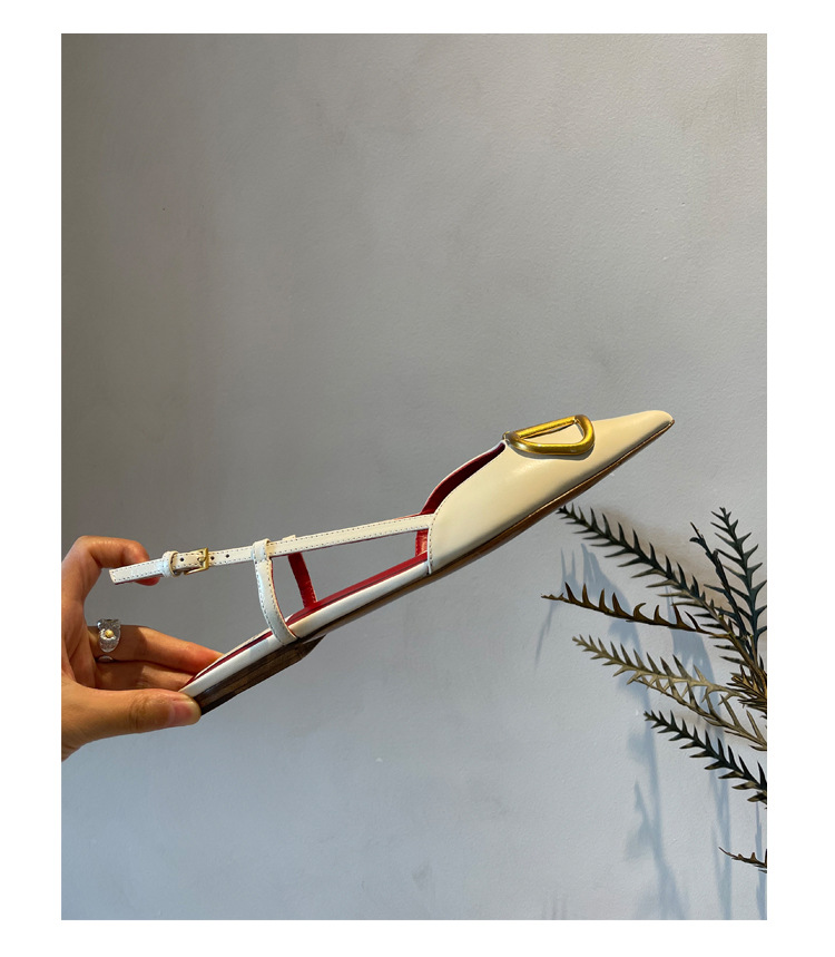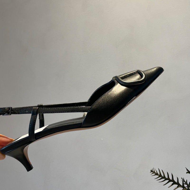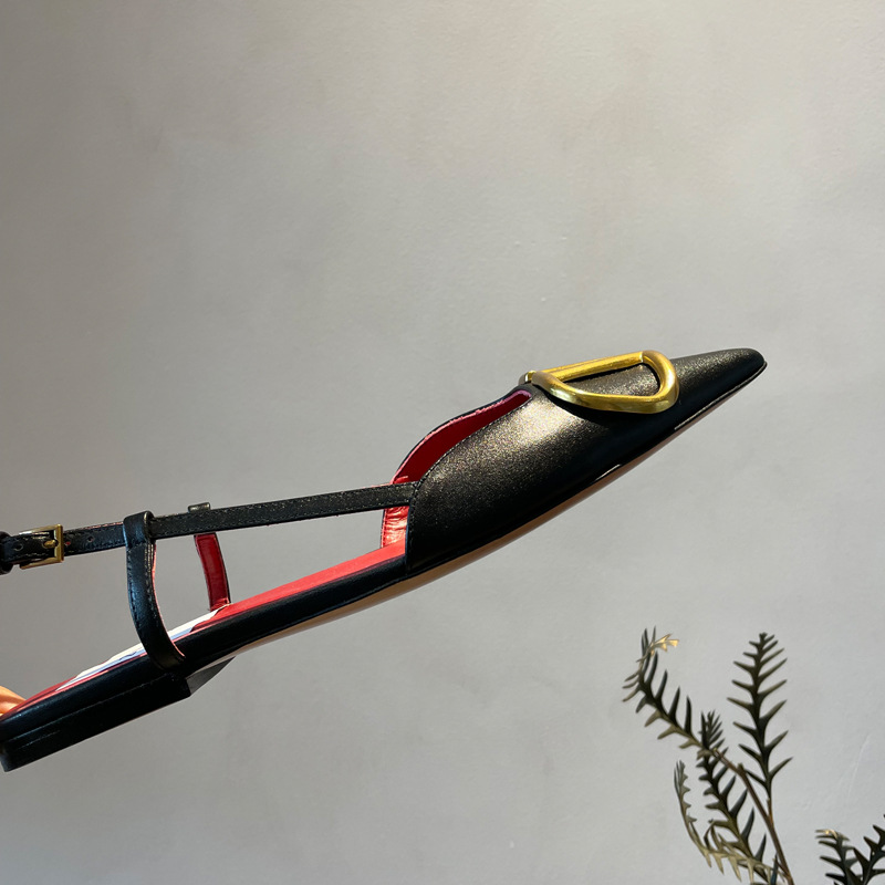 Cat Heel Metal V-버클 뾰족한 하이힐 2025 새로운 평면 후면 빈 발가락 전문 스틸레토 힐 여성용 샌들스토어 가기