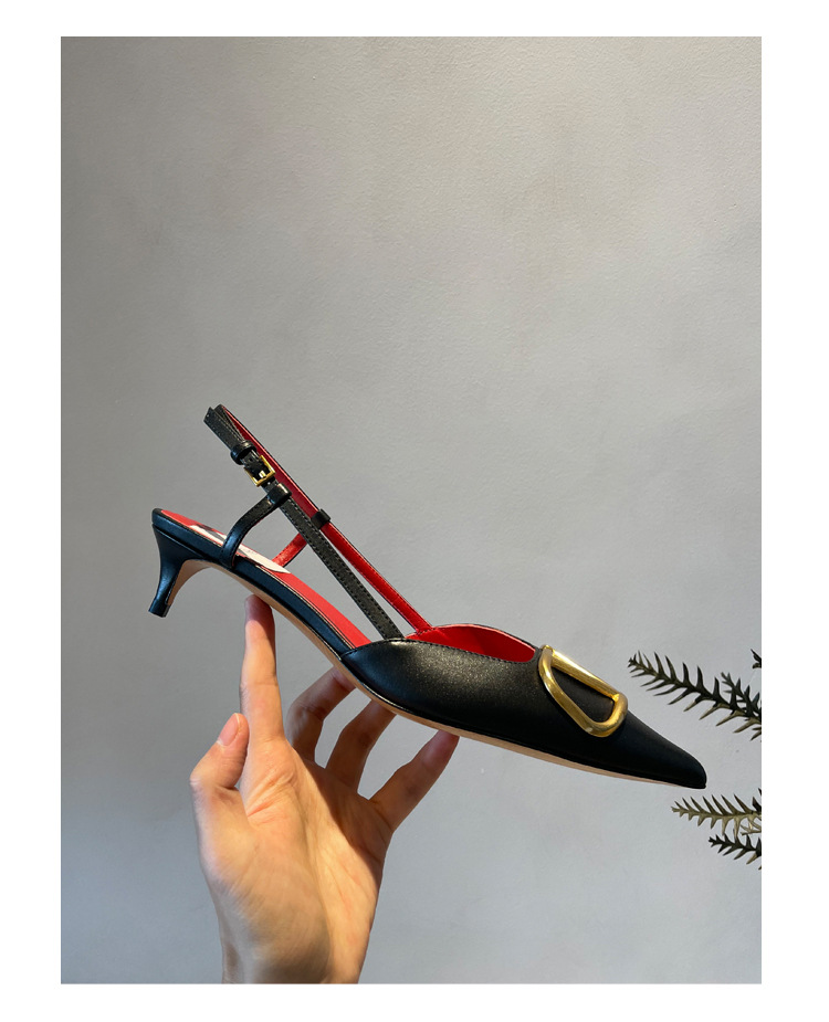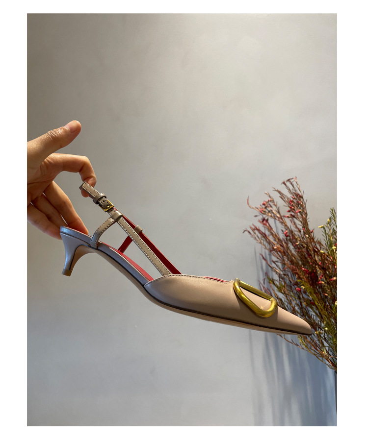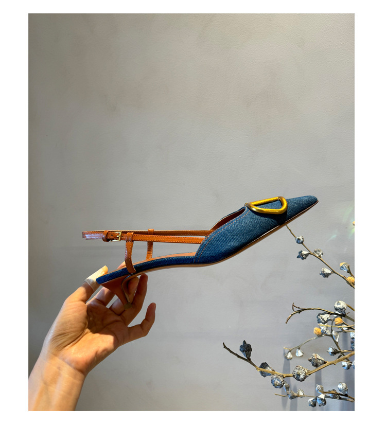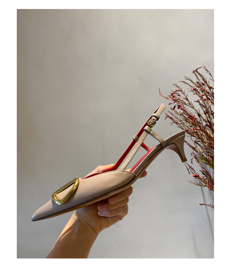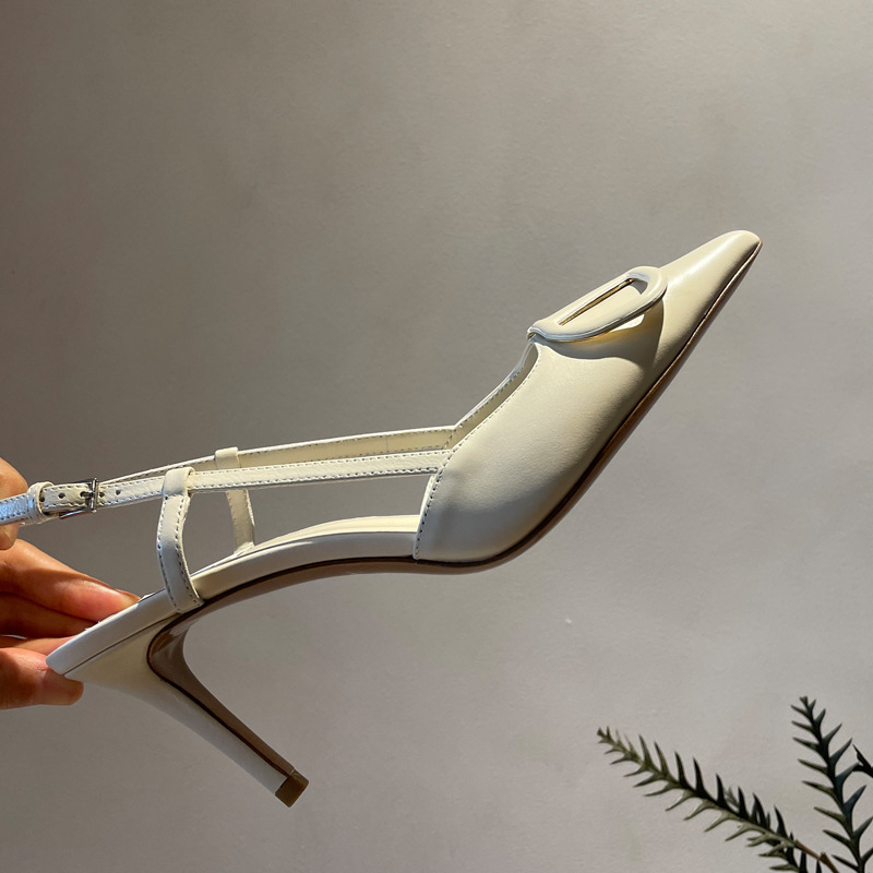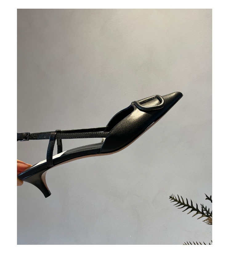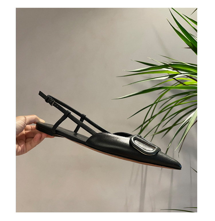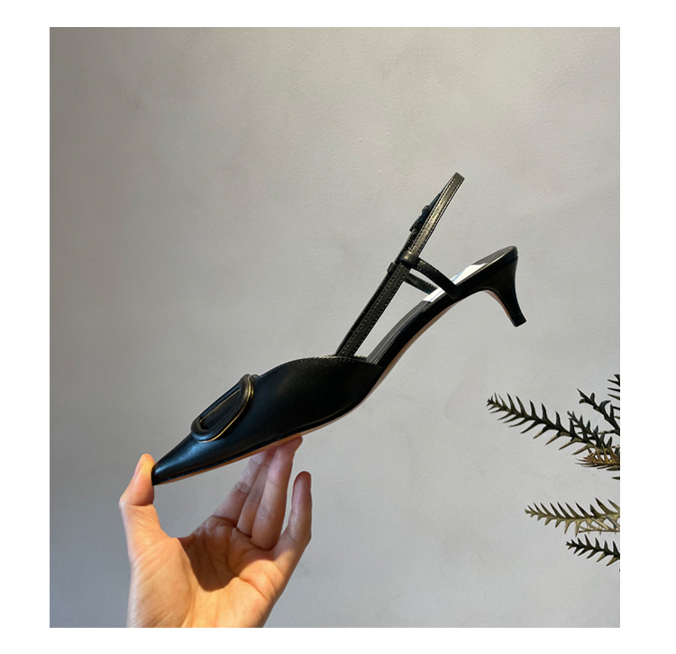 Cat Heel Metal V-버클 뾰족한 하이힐 2025 새로운 평면 후면 빈 발가락 전문 스틸레토 힐 여성용 샌들스토어 가기