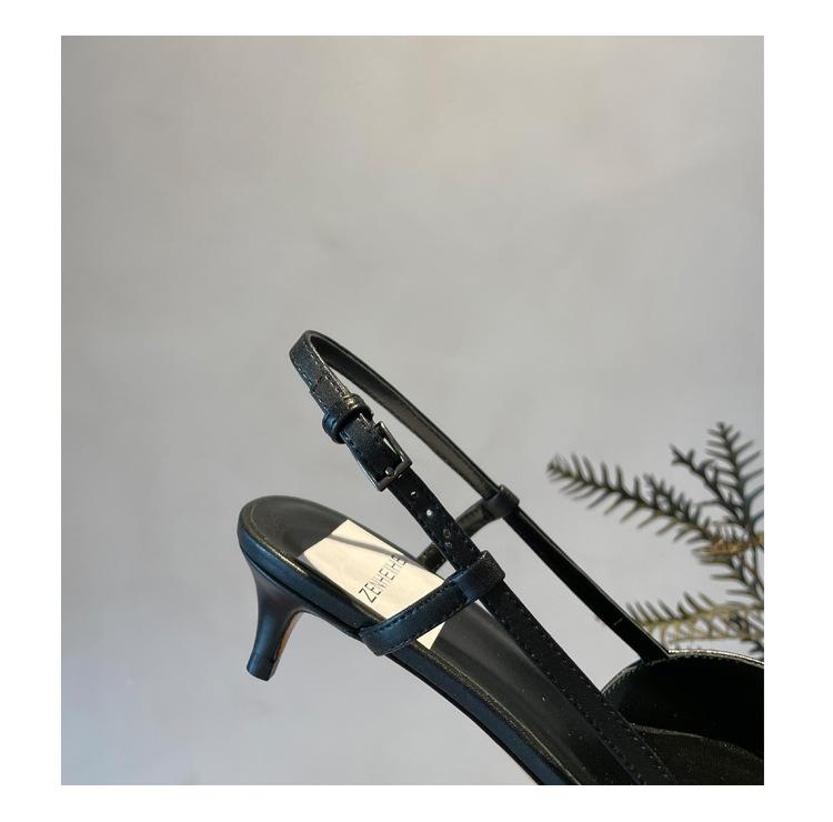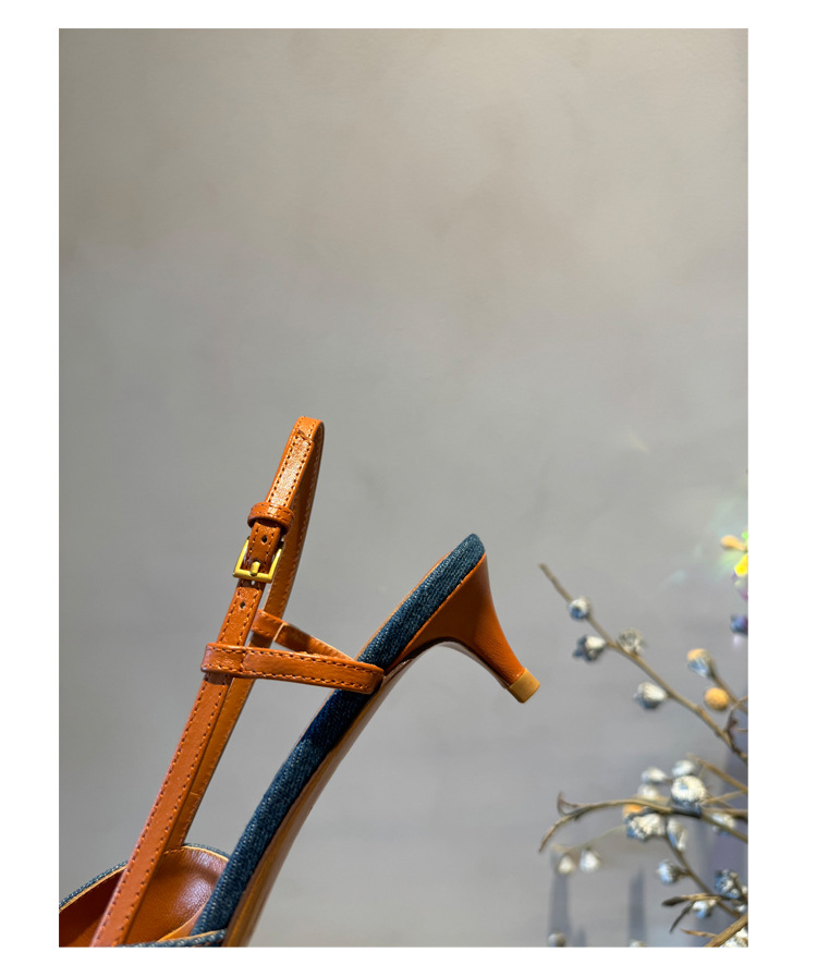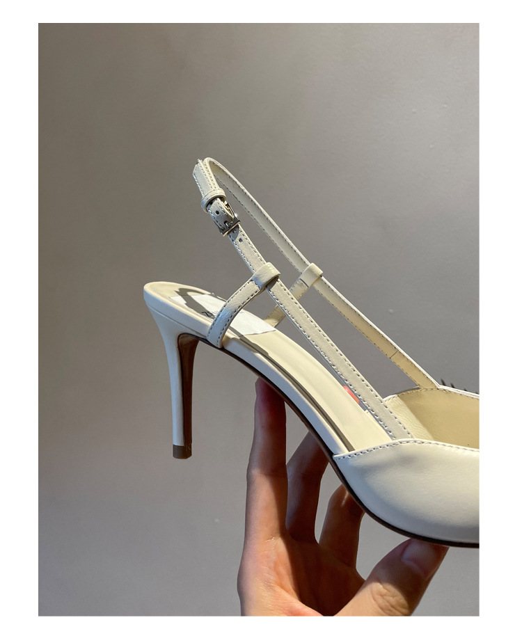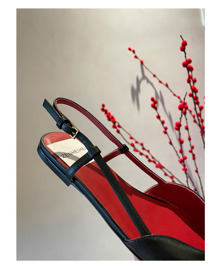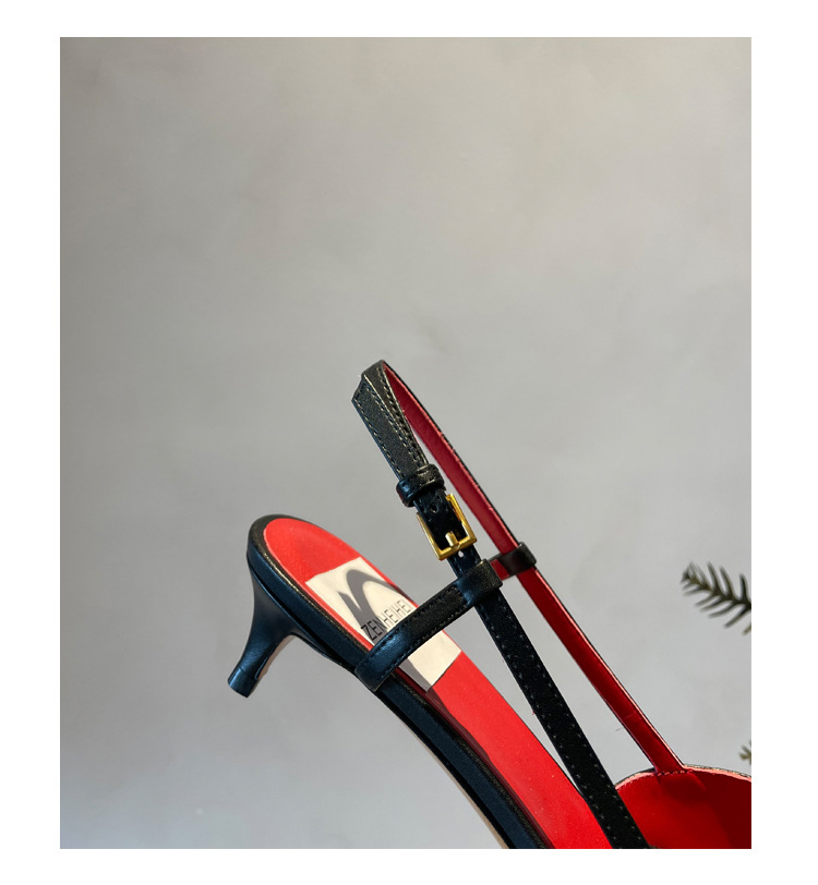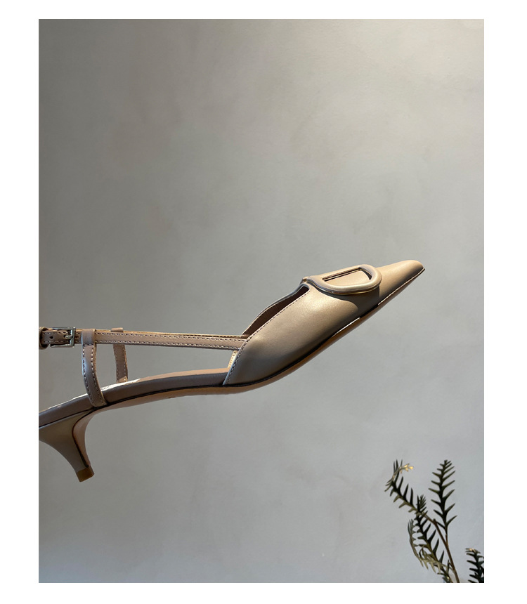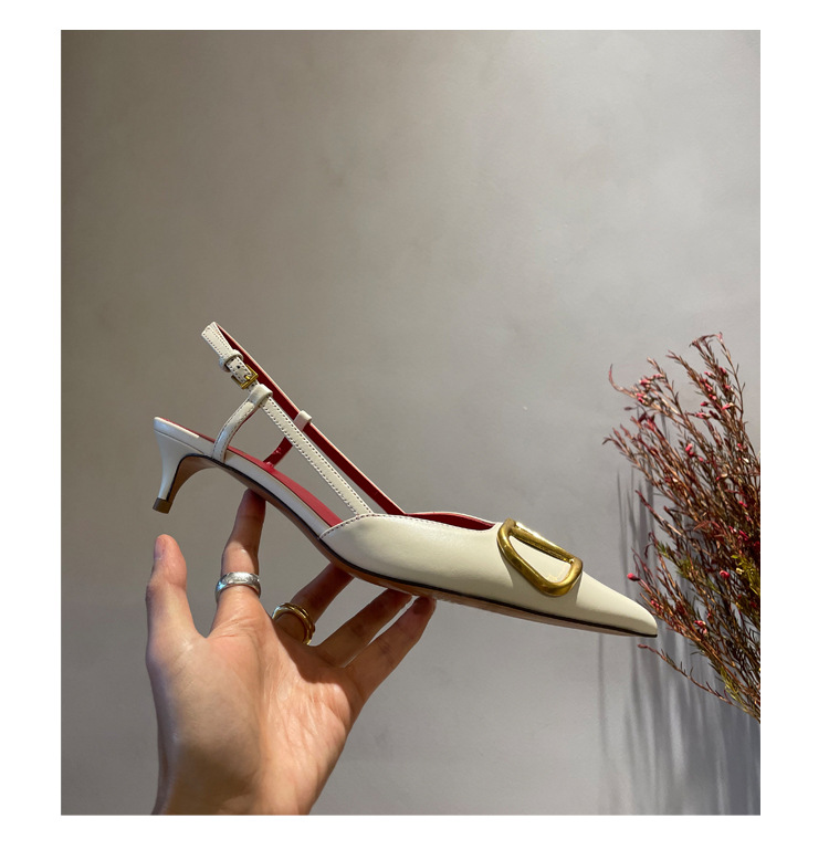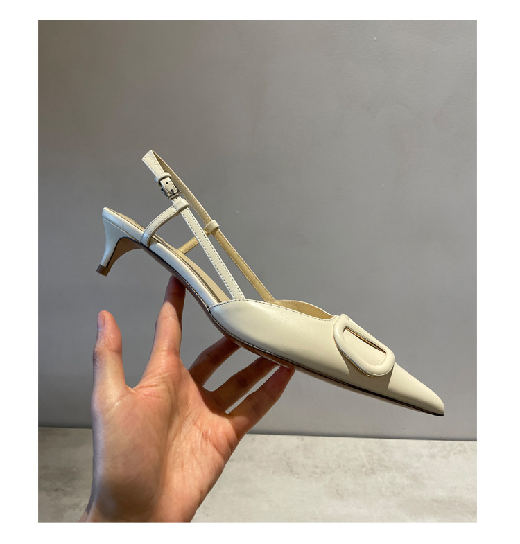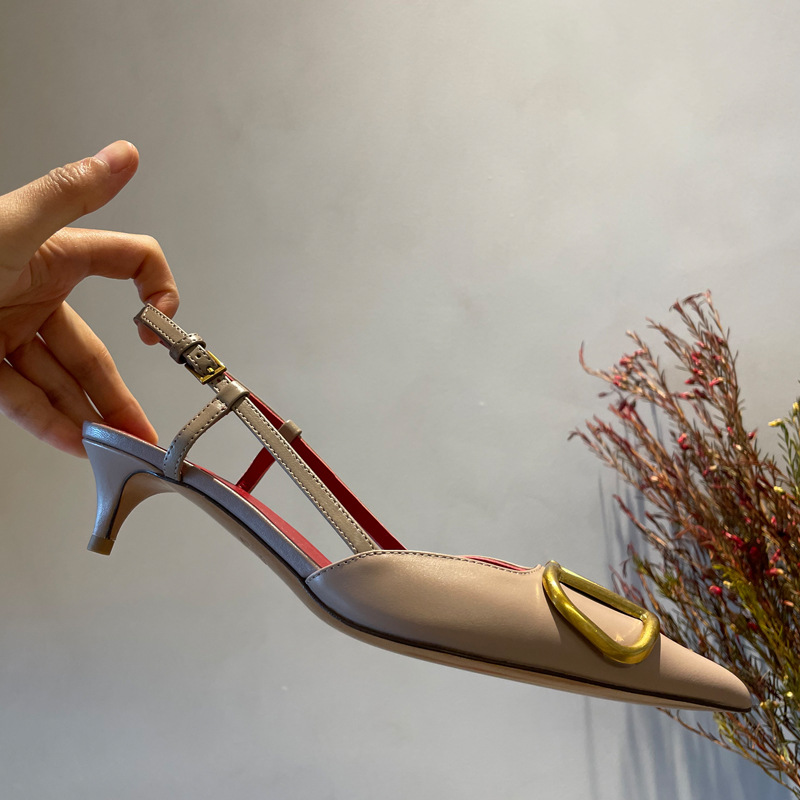 Cat Heel Metal V-버클 뾰족한 하이힐 2025 새로운 평면 후면 빈 발가락 전문 스틸레토 힐 여성용 샌들스토어 가기