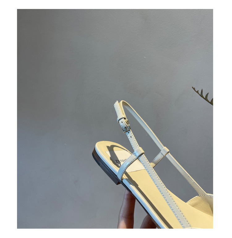 Cat Heel Metal V-버클 뾰족한 하이힐 2025 새로운 평면 후면 빈 발가락 전문 스틸레토 힐 여성용 샌들