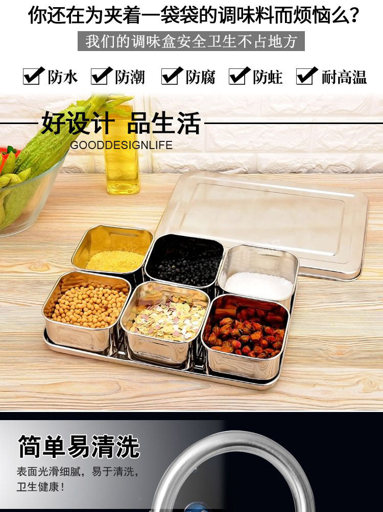 스테인레스 스틸 조미료 상자 8 스타일 소재 상자 6 그리드 메커니즘 맛 상자 8 헤드 매점 요리 샘플 상자 뚜껑 높이
