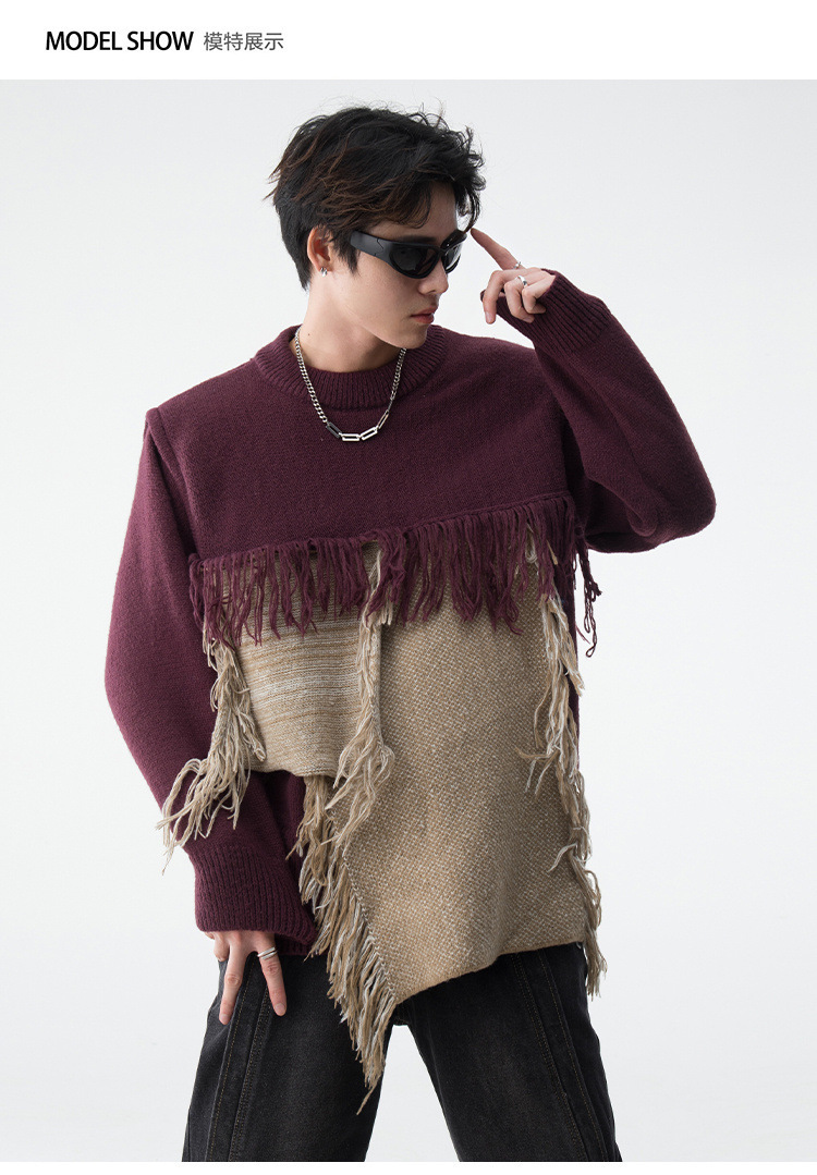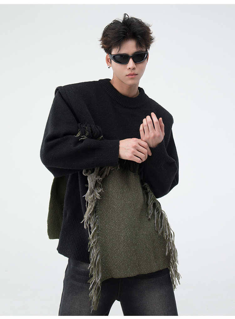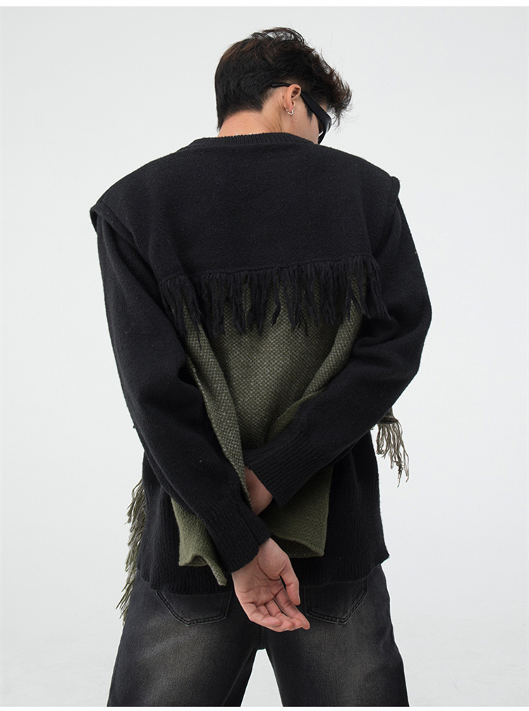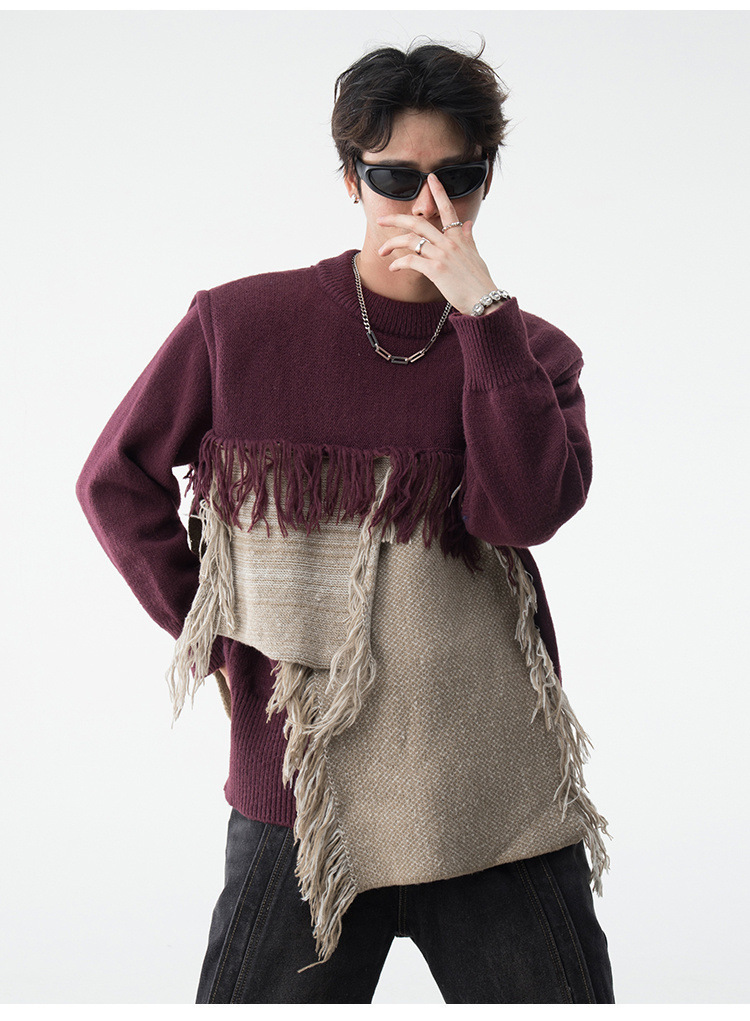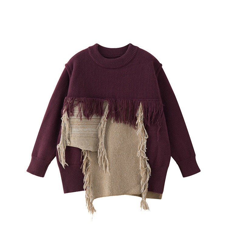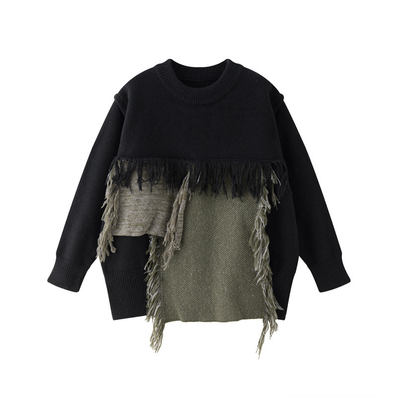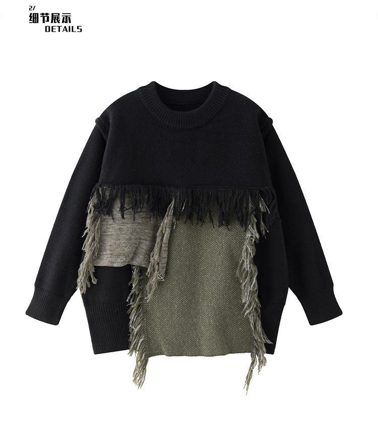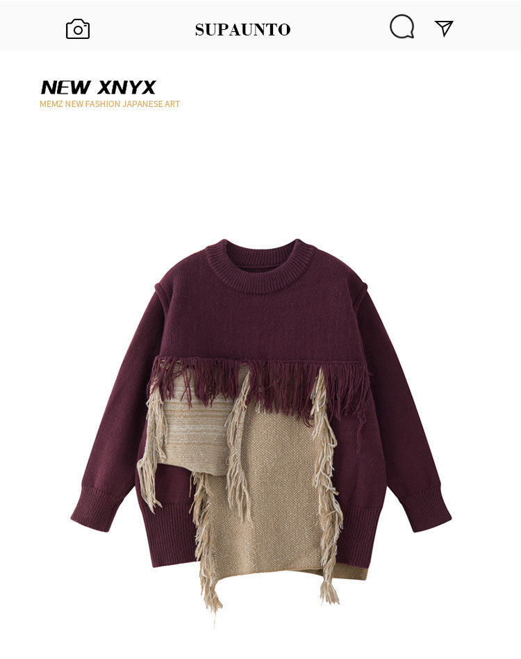 가을과 겨울 레트로 분위기 한국 스타일 유행 부드러운 느낌 스수 바느질 2 색 게으른 스타일 Bf 니트 스웨터 라인 스웨터스토어 가기