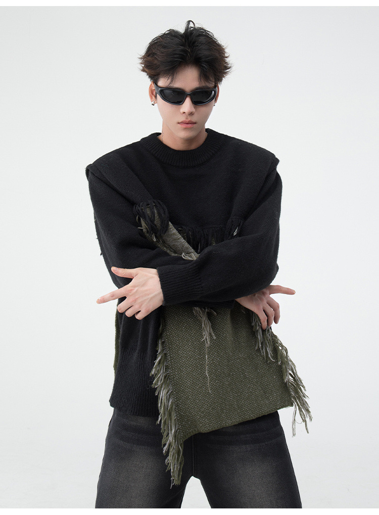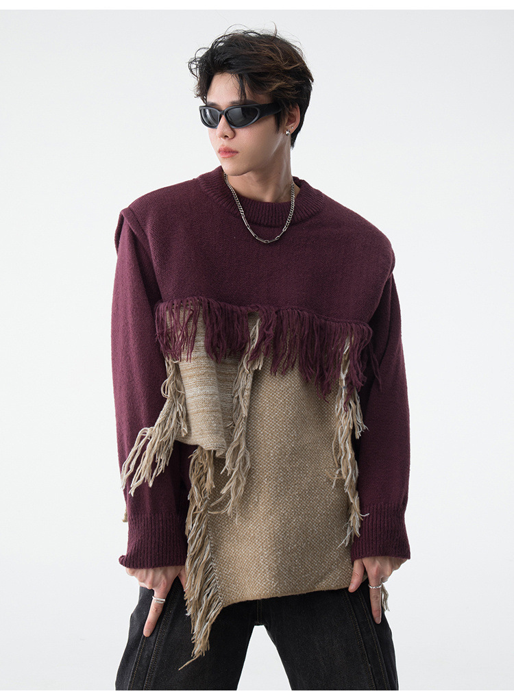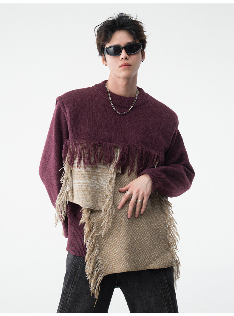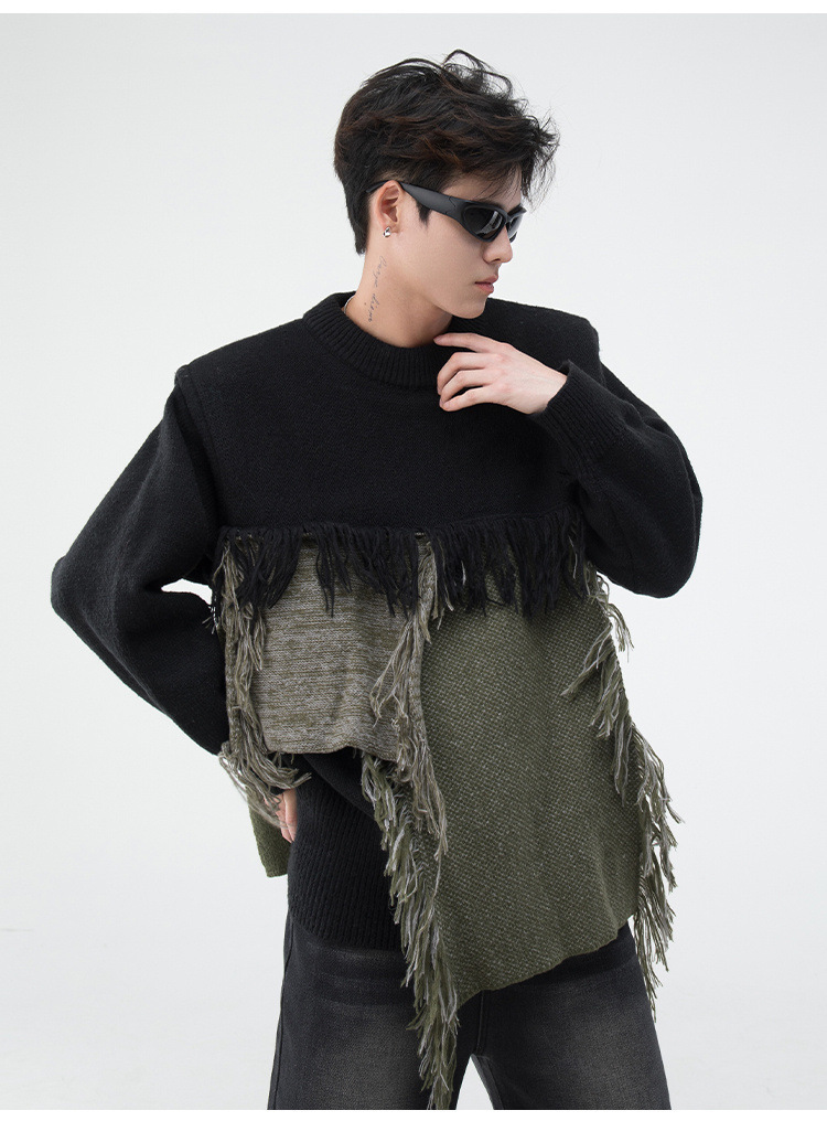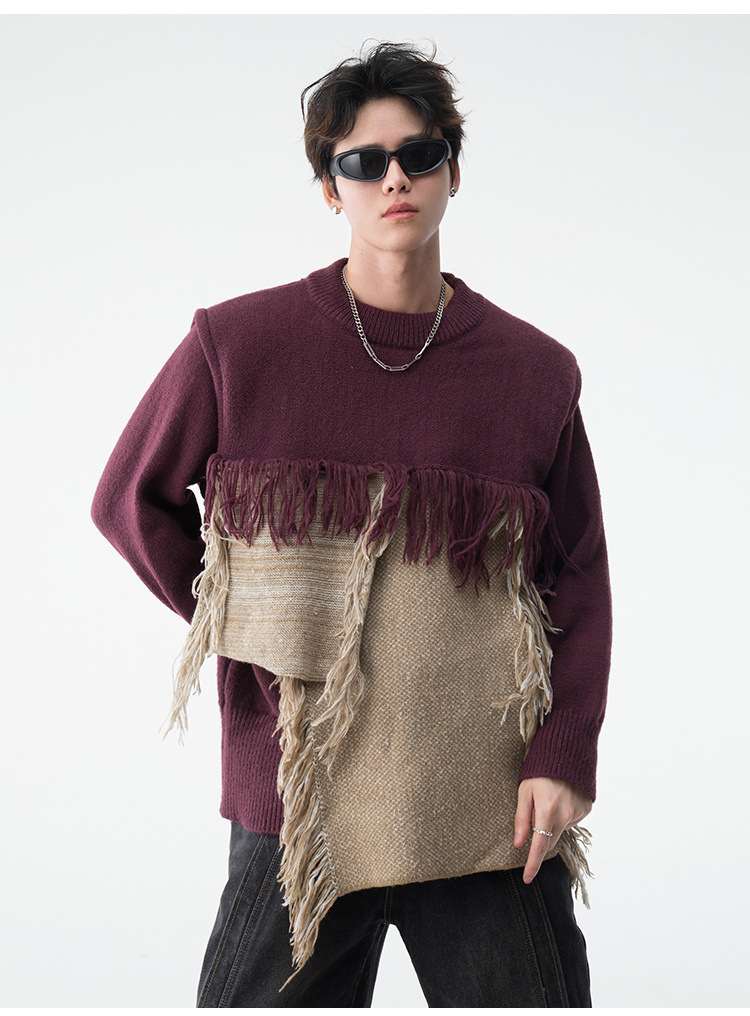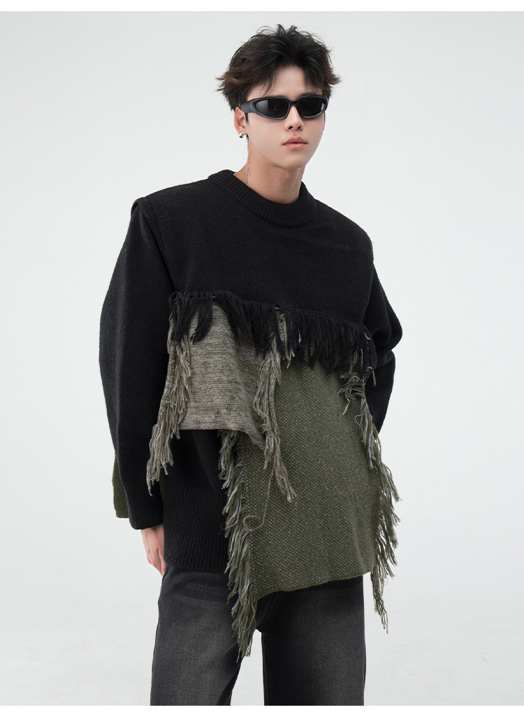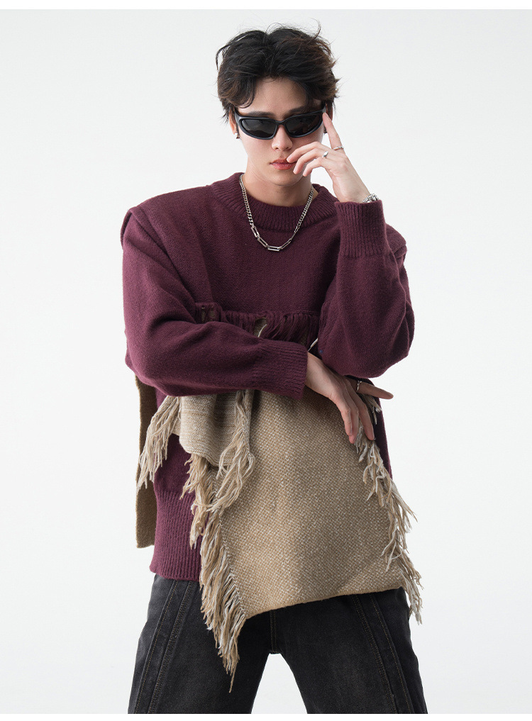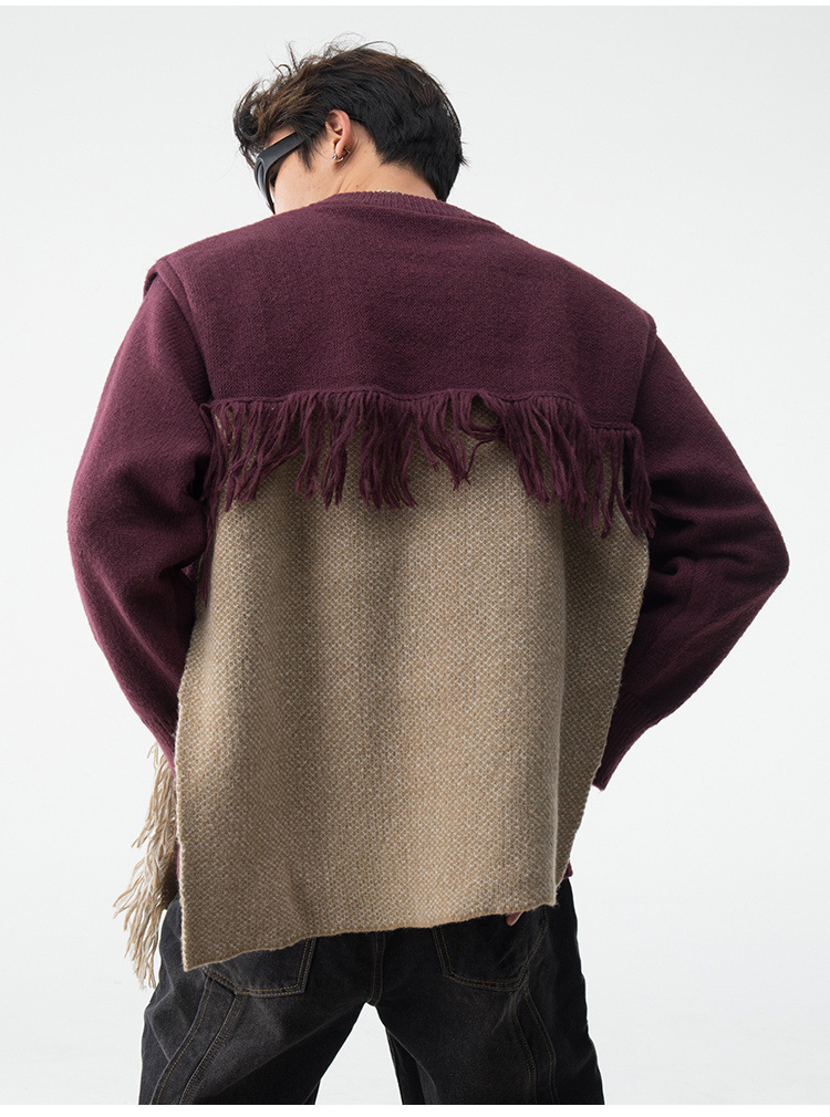 가을과 겨울 레트로 분위기 한국 스타일 유행 부드러운 느낌 스수 바느질 2 색 게으른 스타일 Bf 니트 스웨터 라인 스웨터스토어 가기
