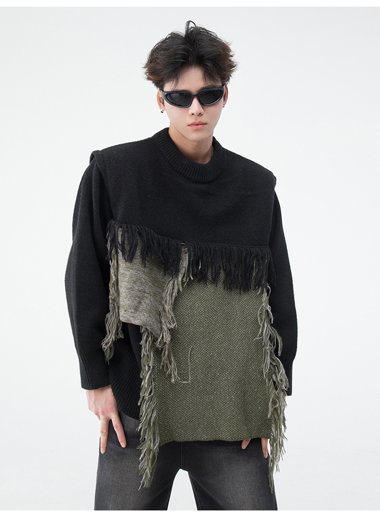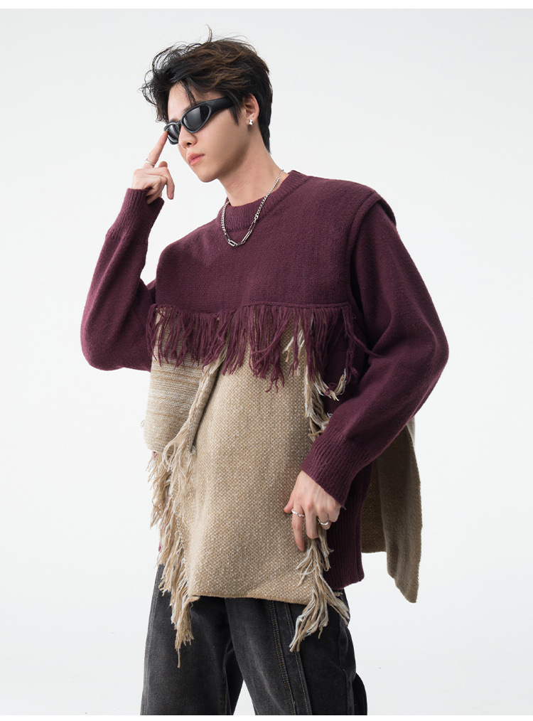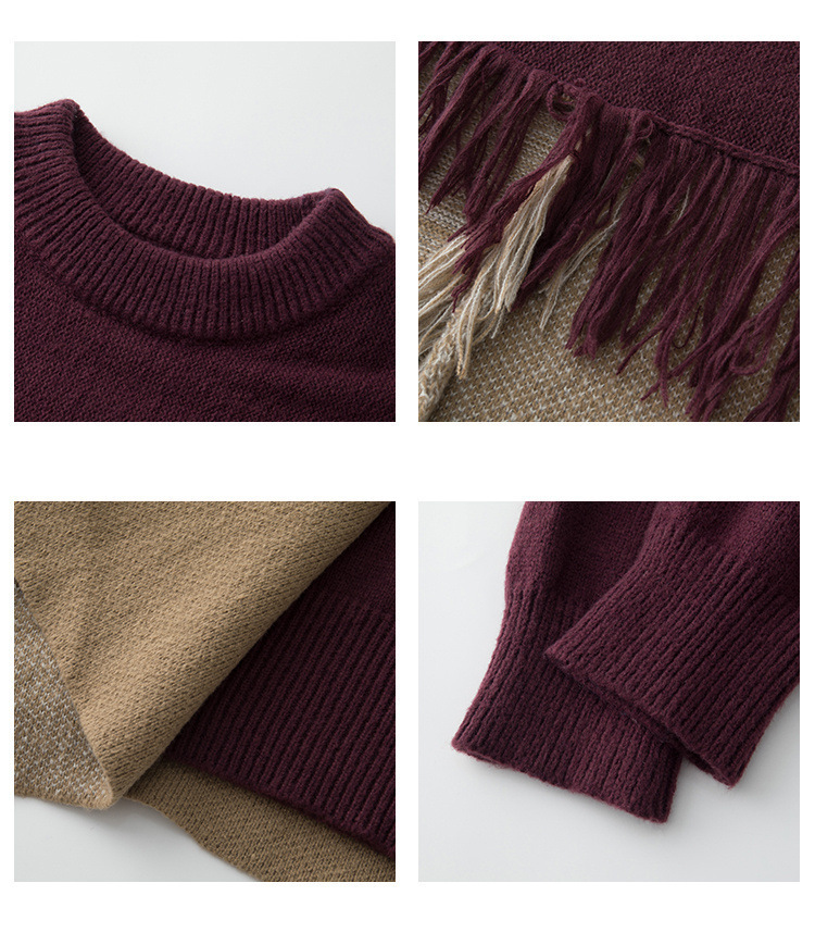 가을과 겨울 레트로 분위기 한국 스타일 유행 부드러운 느낌 스수 바느질 2 색 게으른 스타일 Bf 니트 스웨터 라인 스웨터