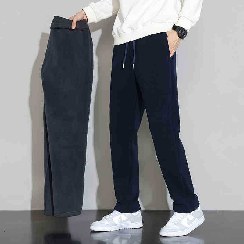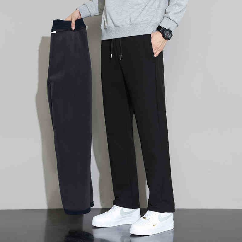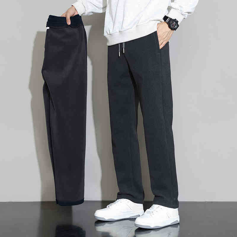NASA 블랙 캐주얼 바지 남자 겨울 2024 새로운 패션 브랜드 기모 두꺼운 긴 바지 느슨한 스트레이트 바지스토어 가기